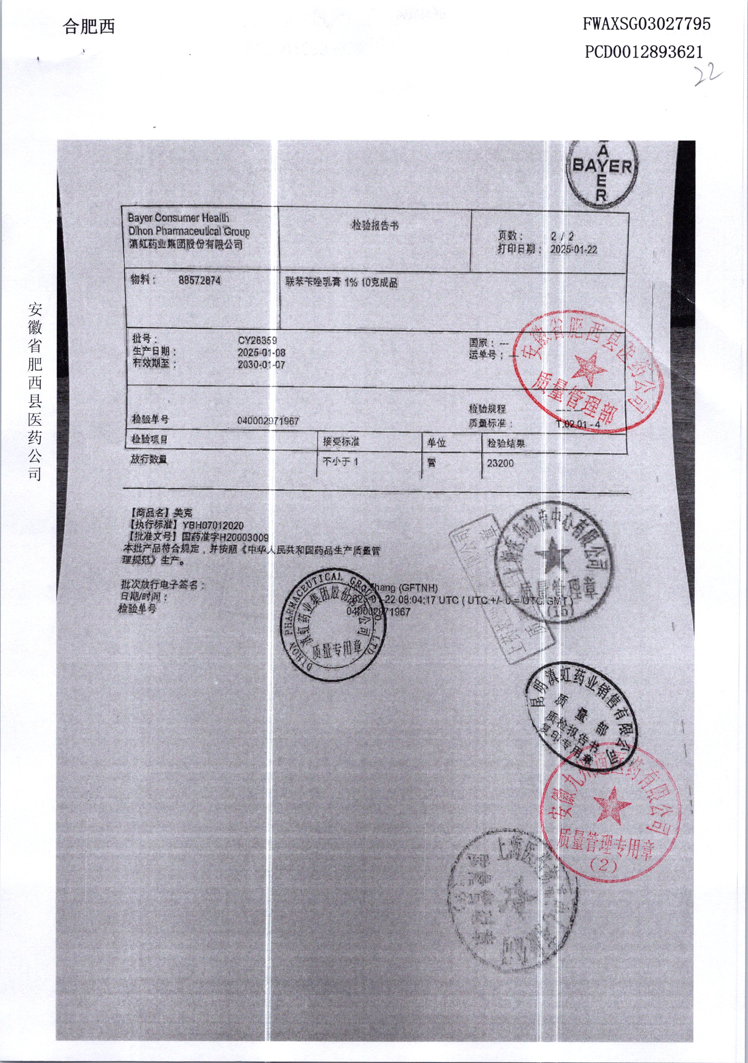 | 聯苯芐唑乳膏 | 1% | CY26359/1 | 查看詳情 |
