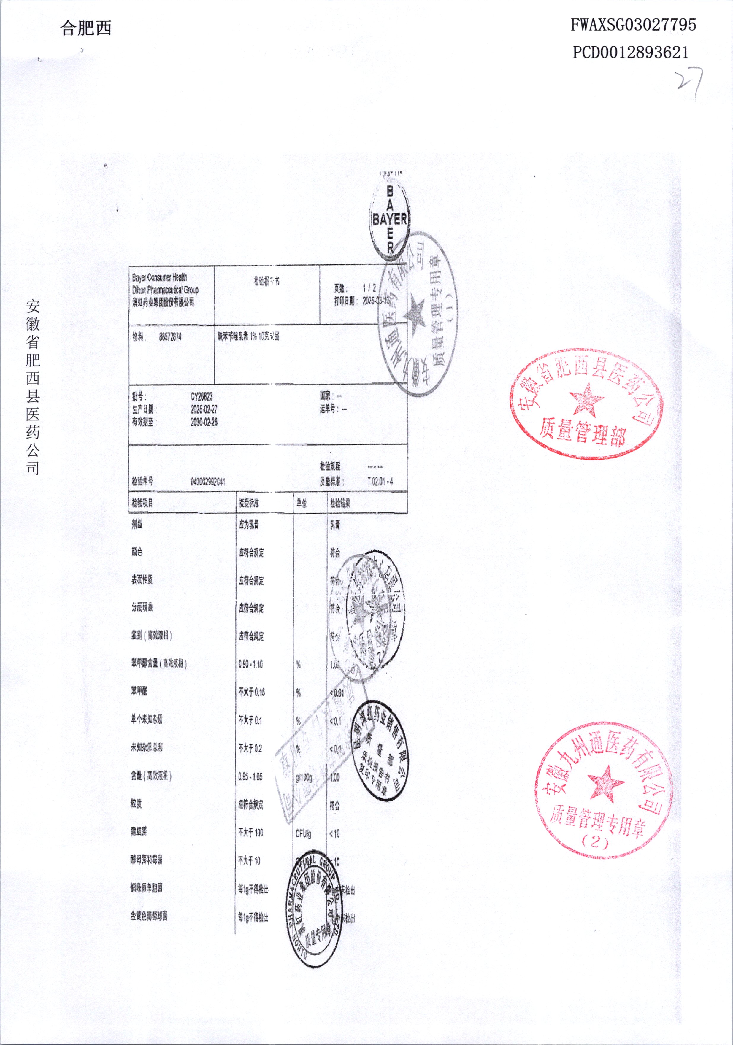 | 聯苯芐唑乳膏 | 1% | CY26979/2 | 查看詳情 |