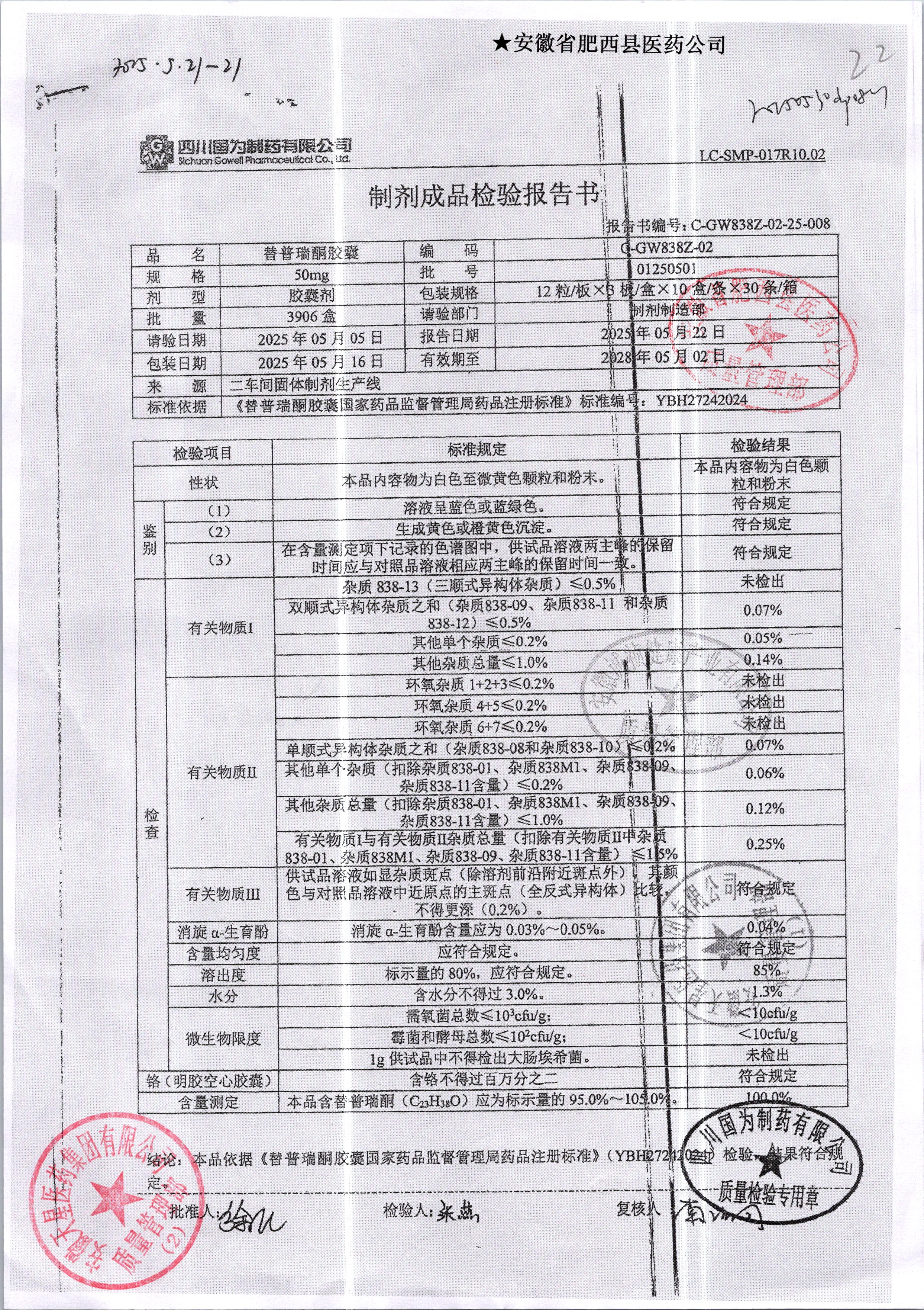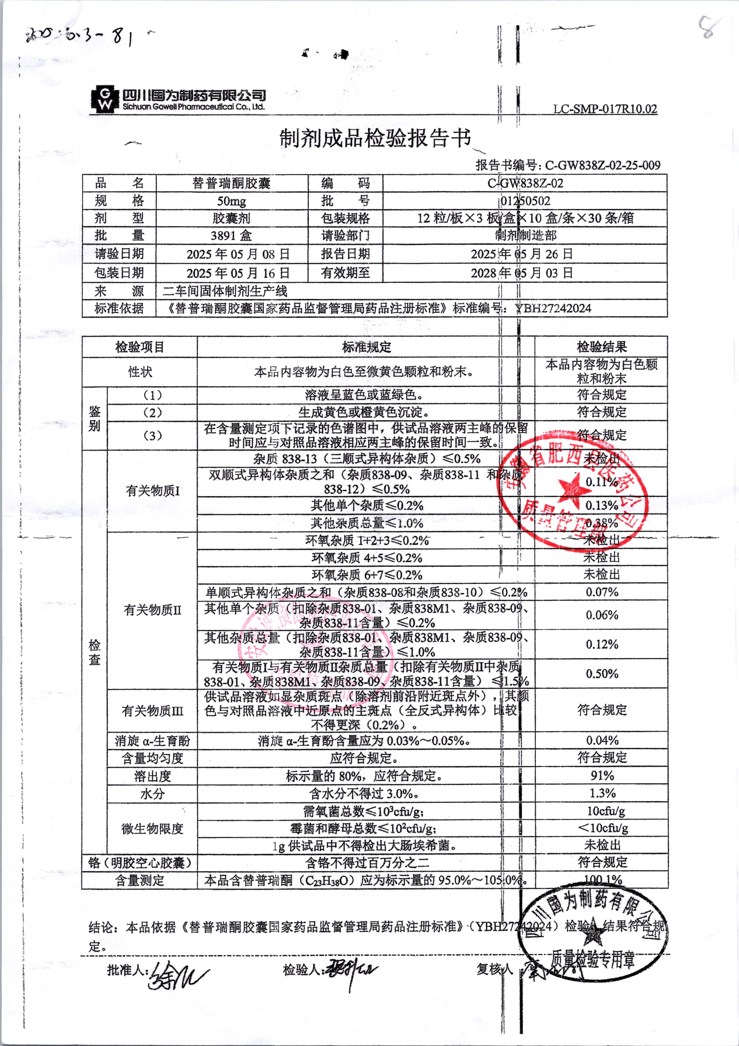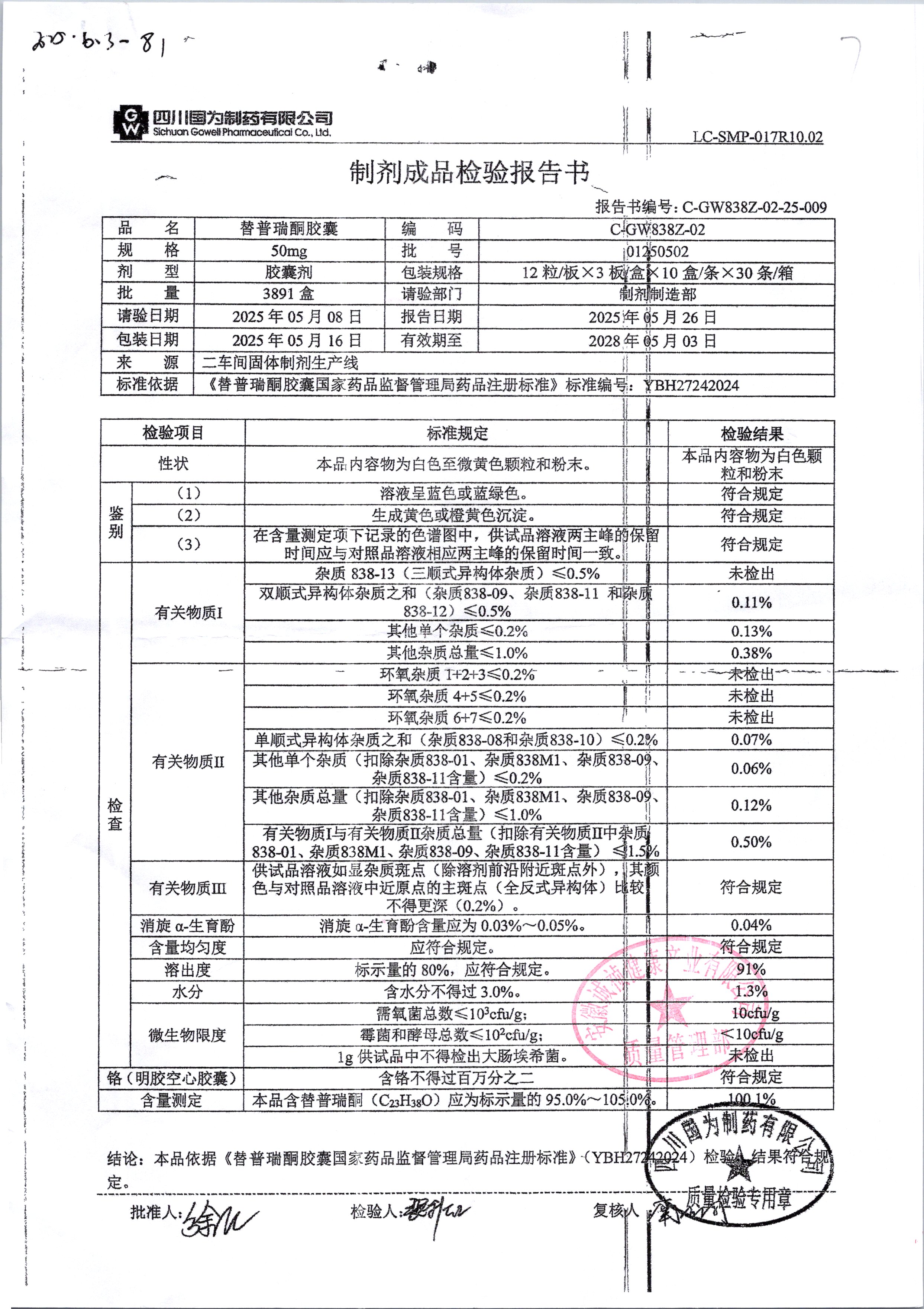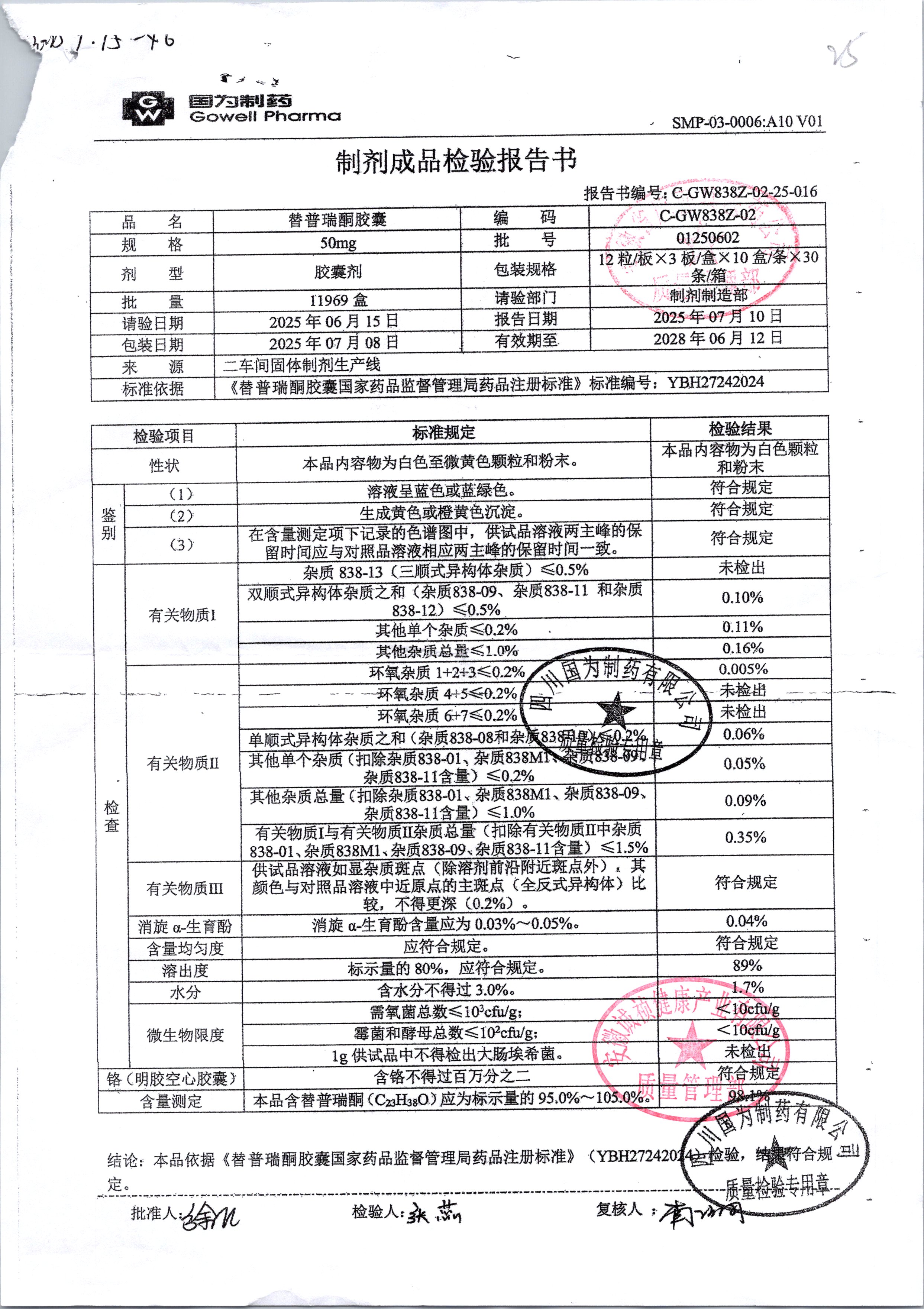 | 替普瑞酮膠囊 | 50mg*36s | 01250501 | 查看詳情 |