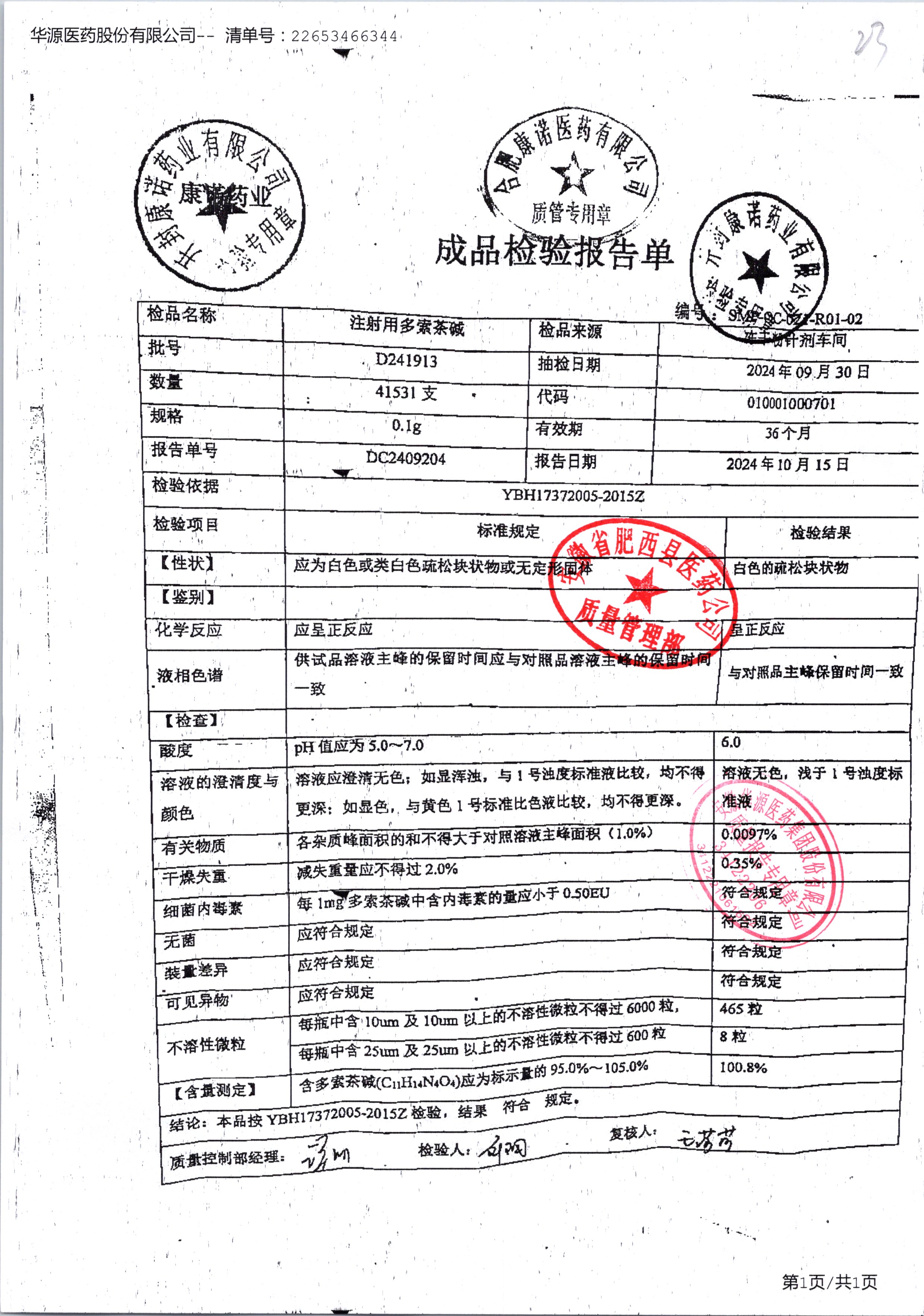 | 注射用多索茶堿 | 0.1g | D241864/1 | 查看詳情 |