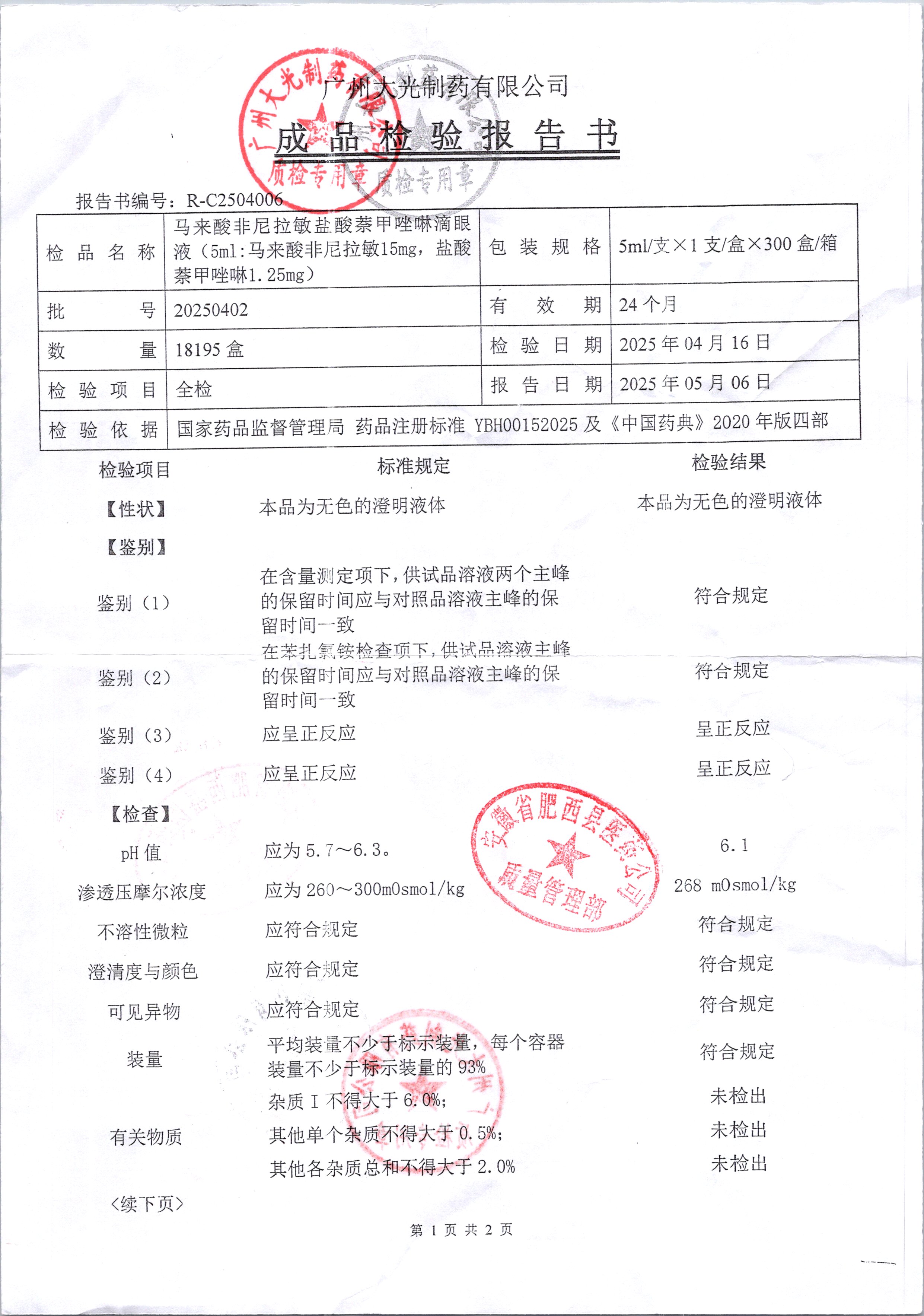 名稱 規(guī)格 批號 藥檢報告