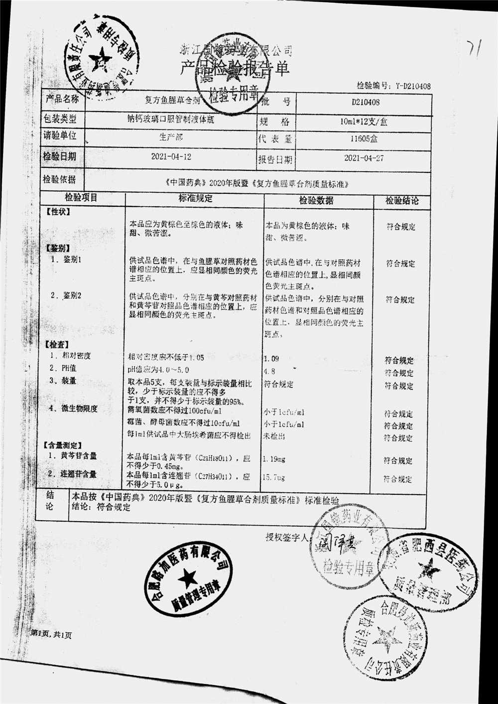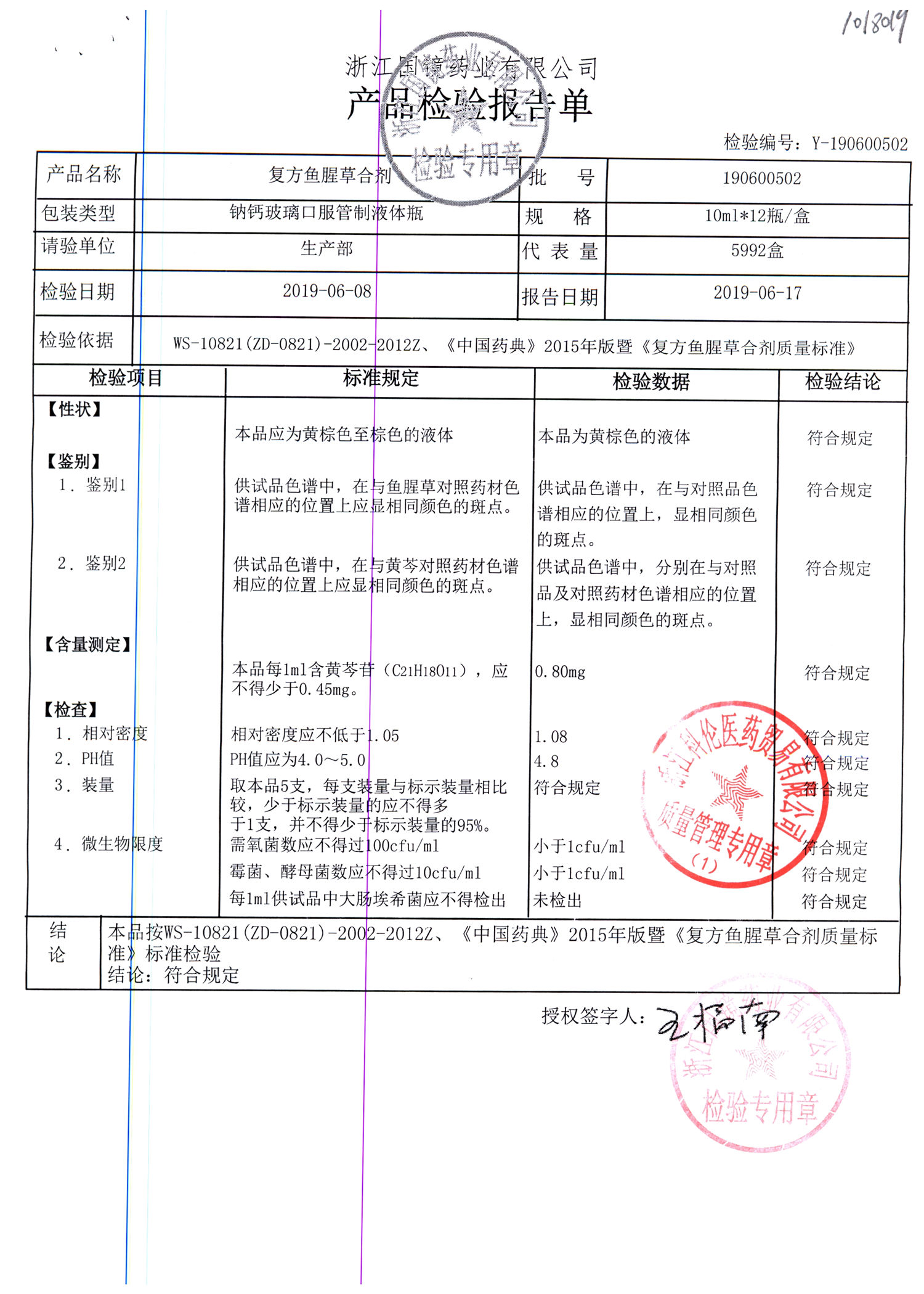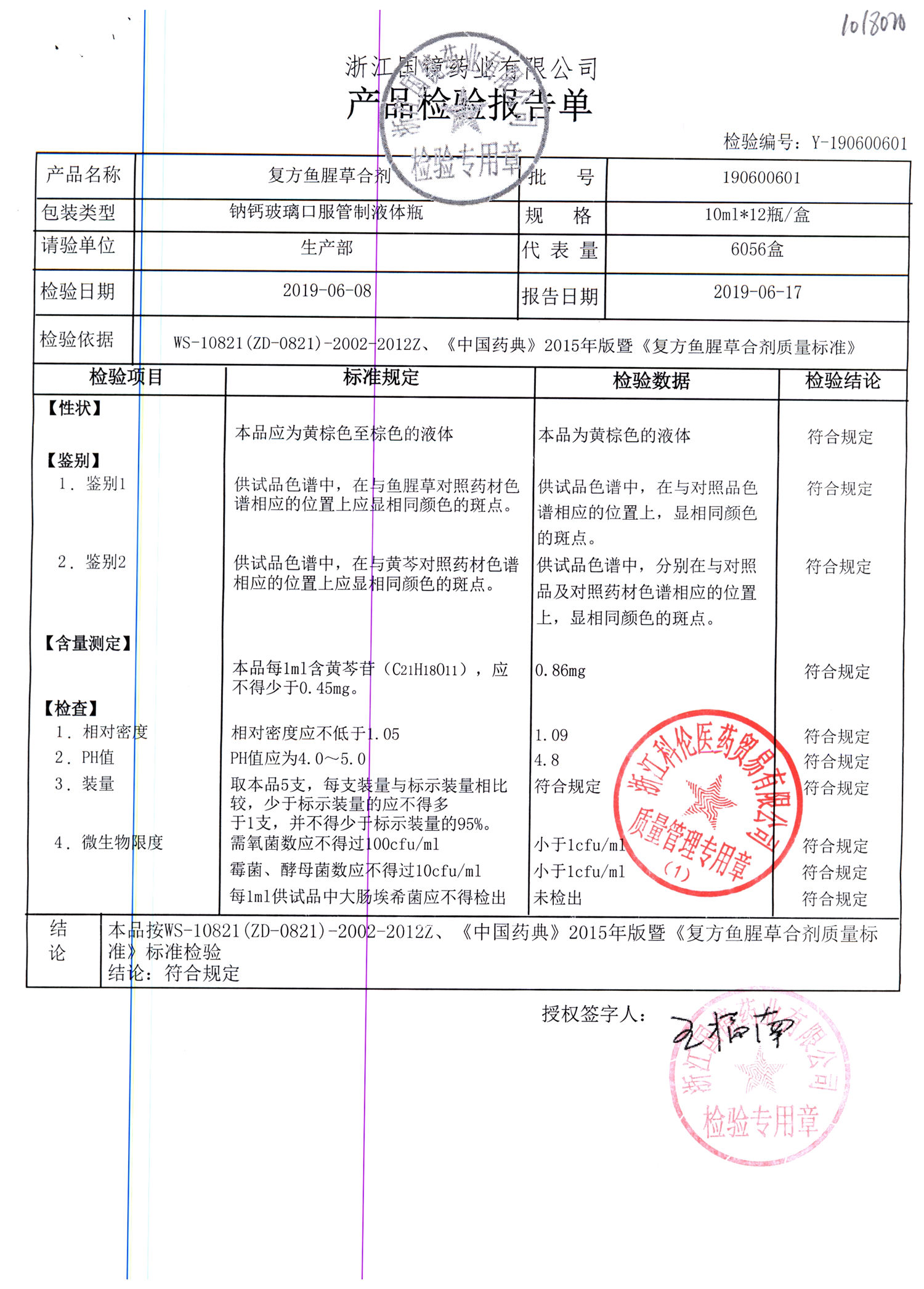 | 復(fù)方魚腥草合劑 | 10ml | 180200902 | 查看詳情 |