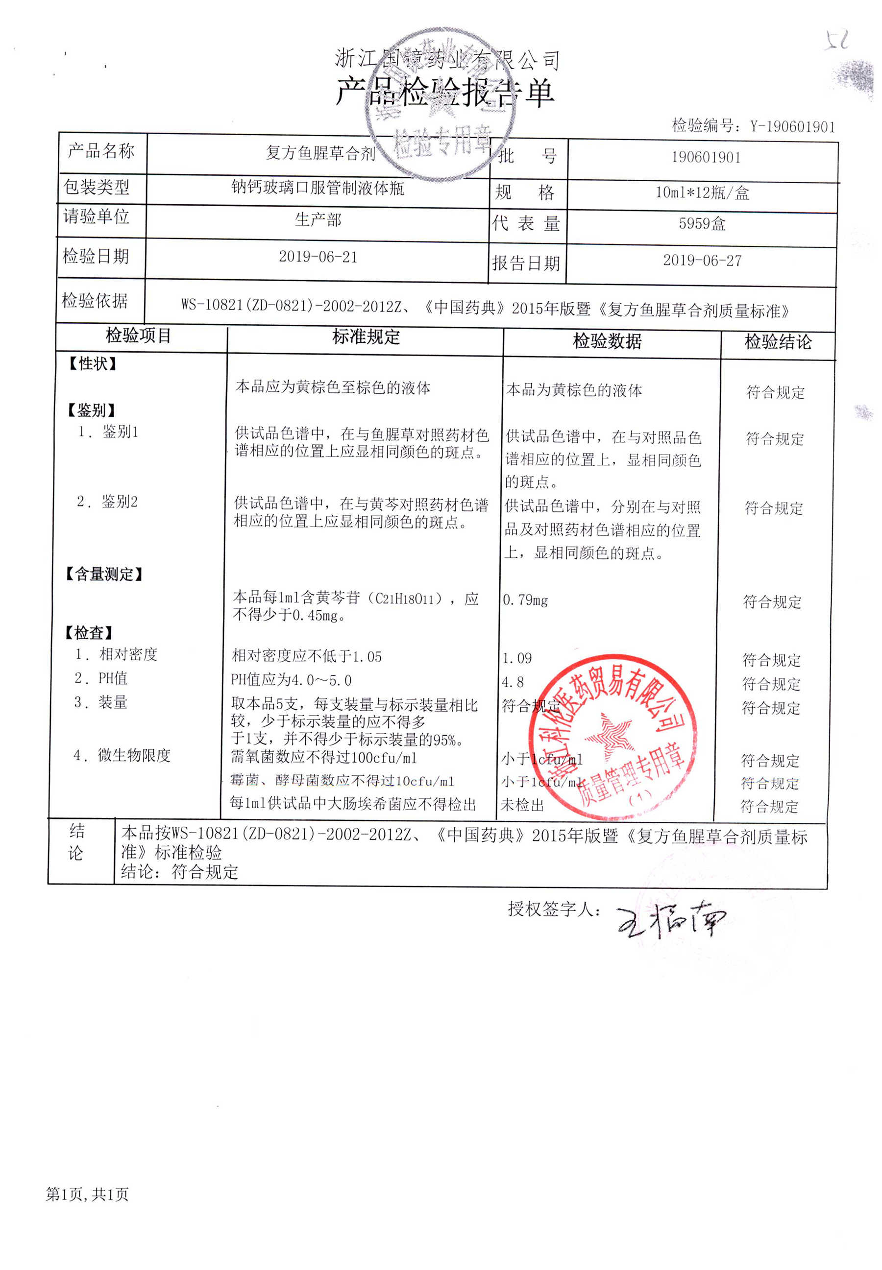 | 復(fù)方魚腥草合劑 | 10ml | 190601901 | 查看詳情 |