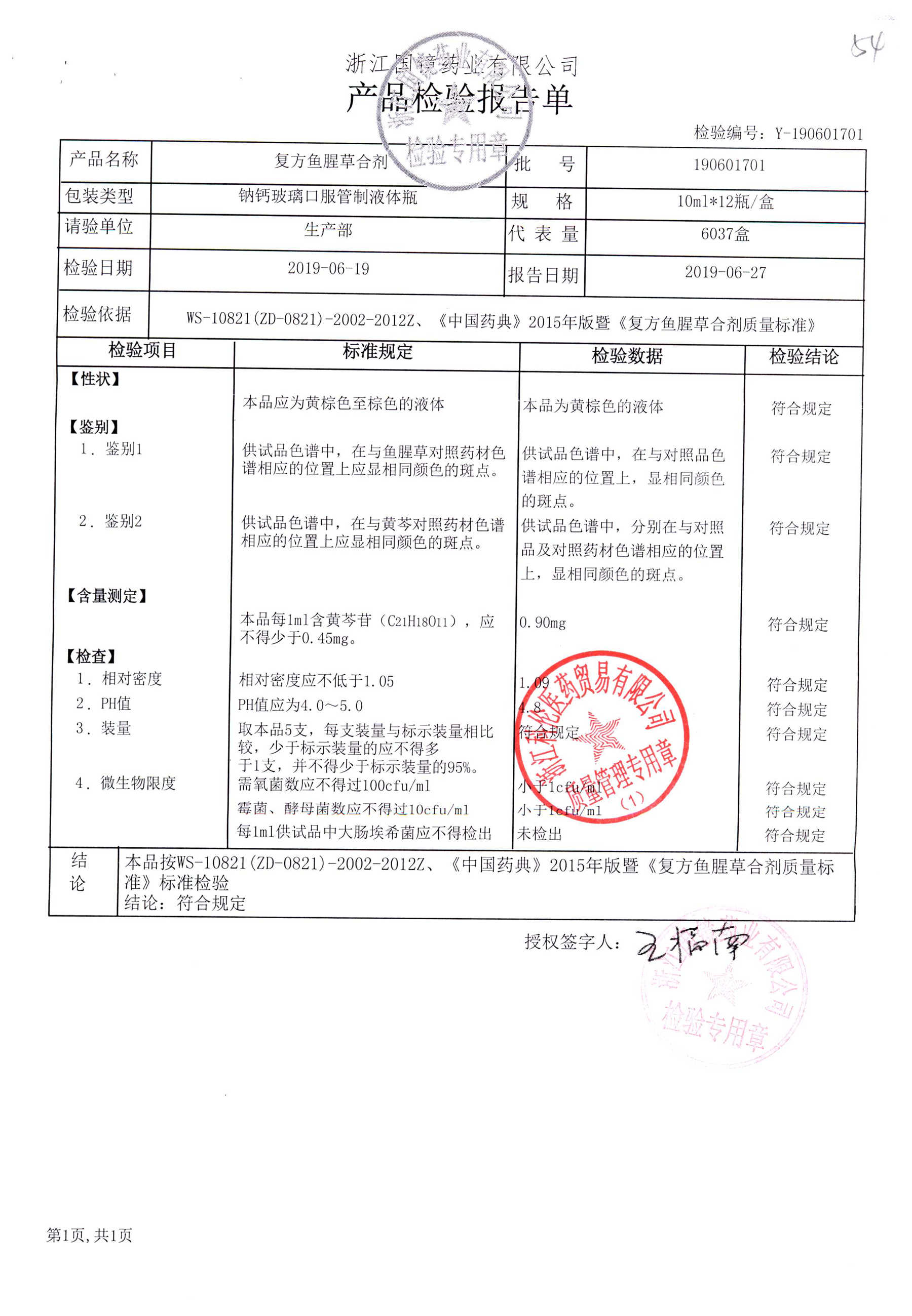 | 復(fù)方魚腥草合劑 | 10ml | 190600701 | 查看詳情 |