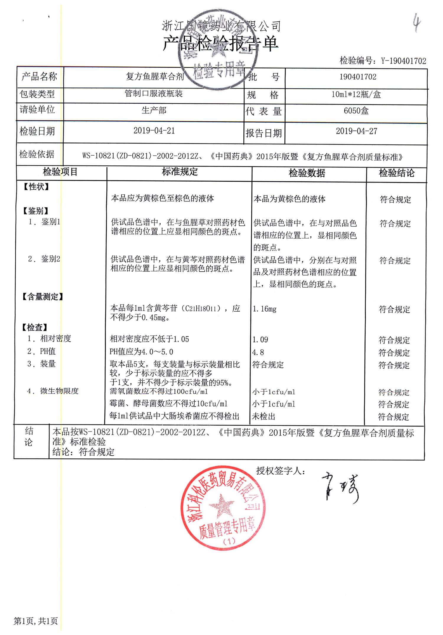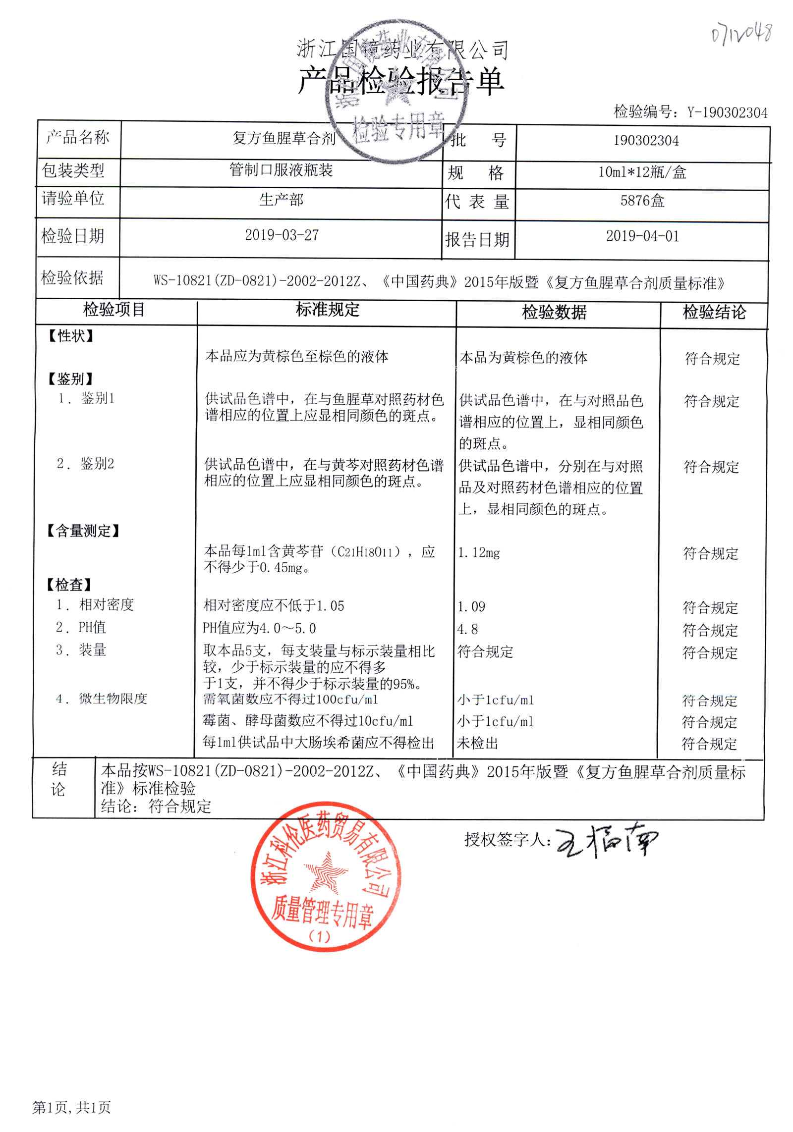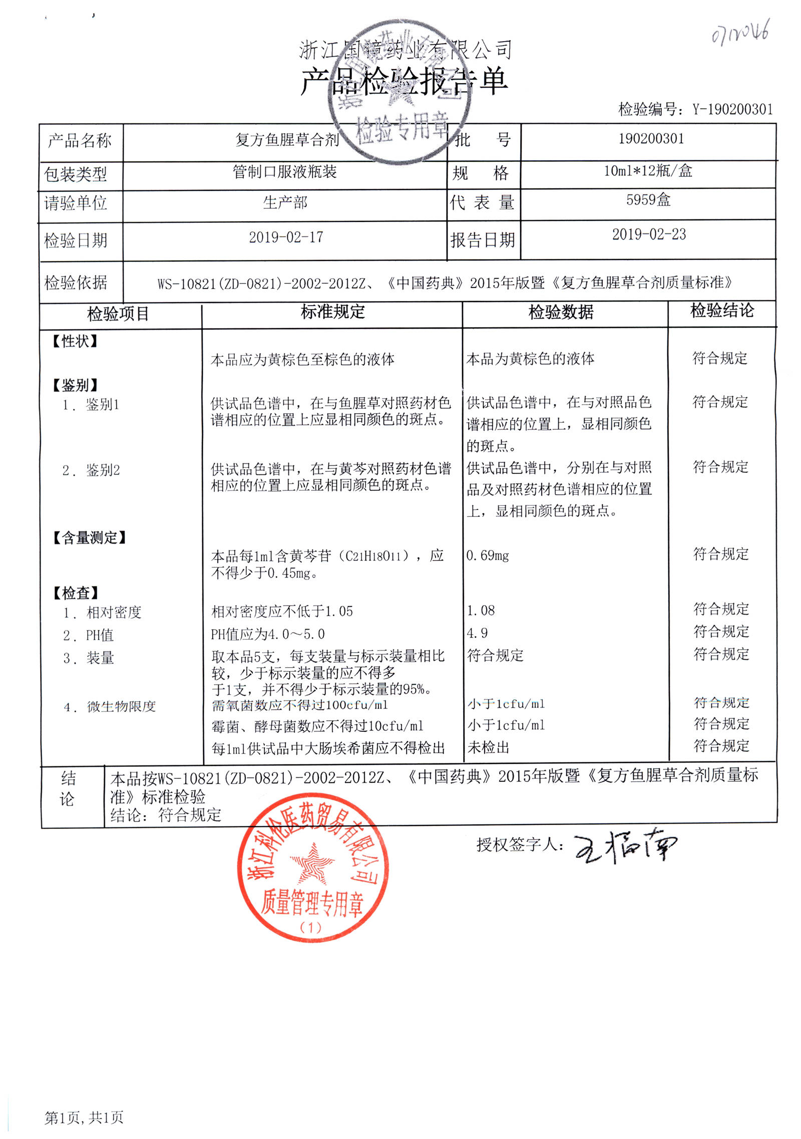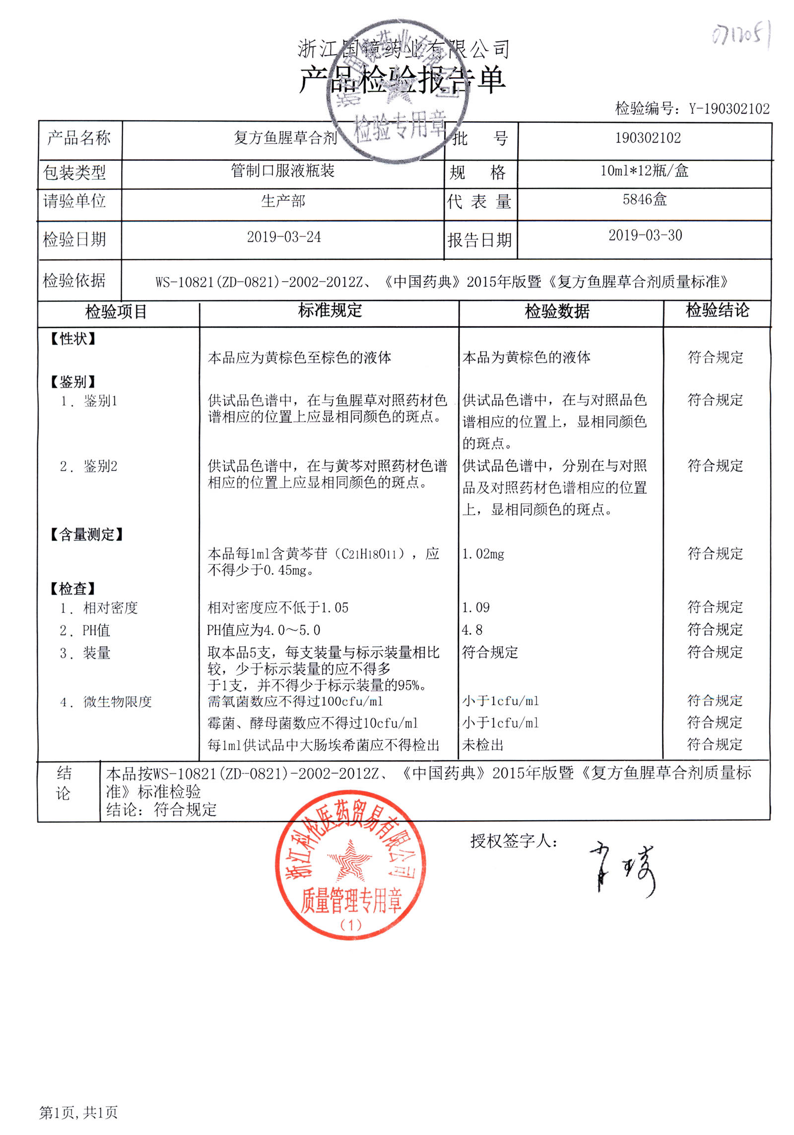 | 復(fù)方魚腥草合劑 | 10ml | 190200301 | 查看詳情 |