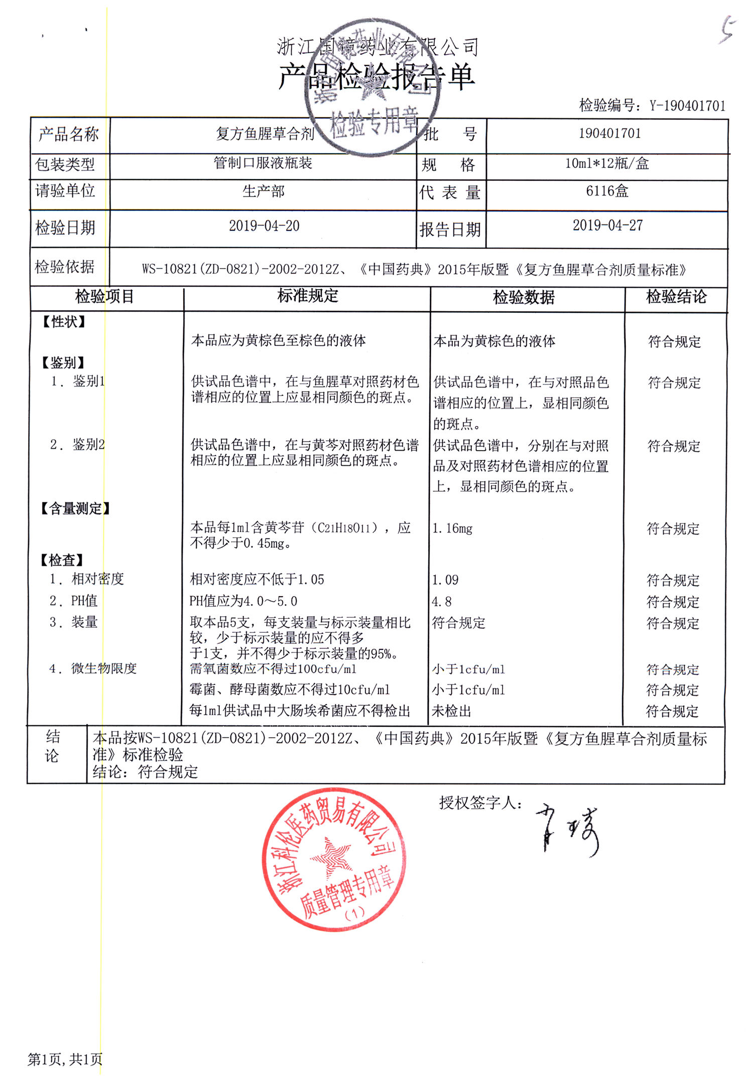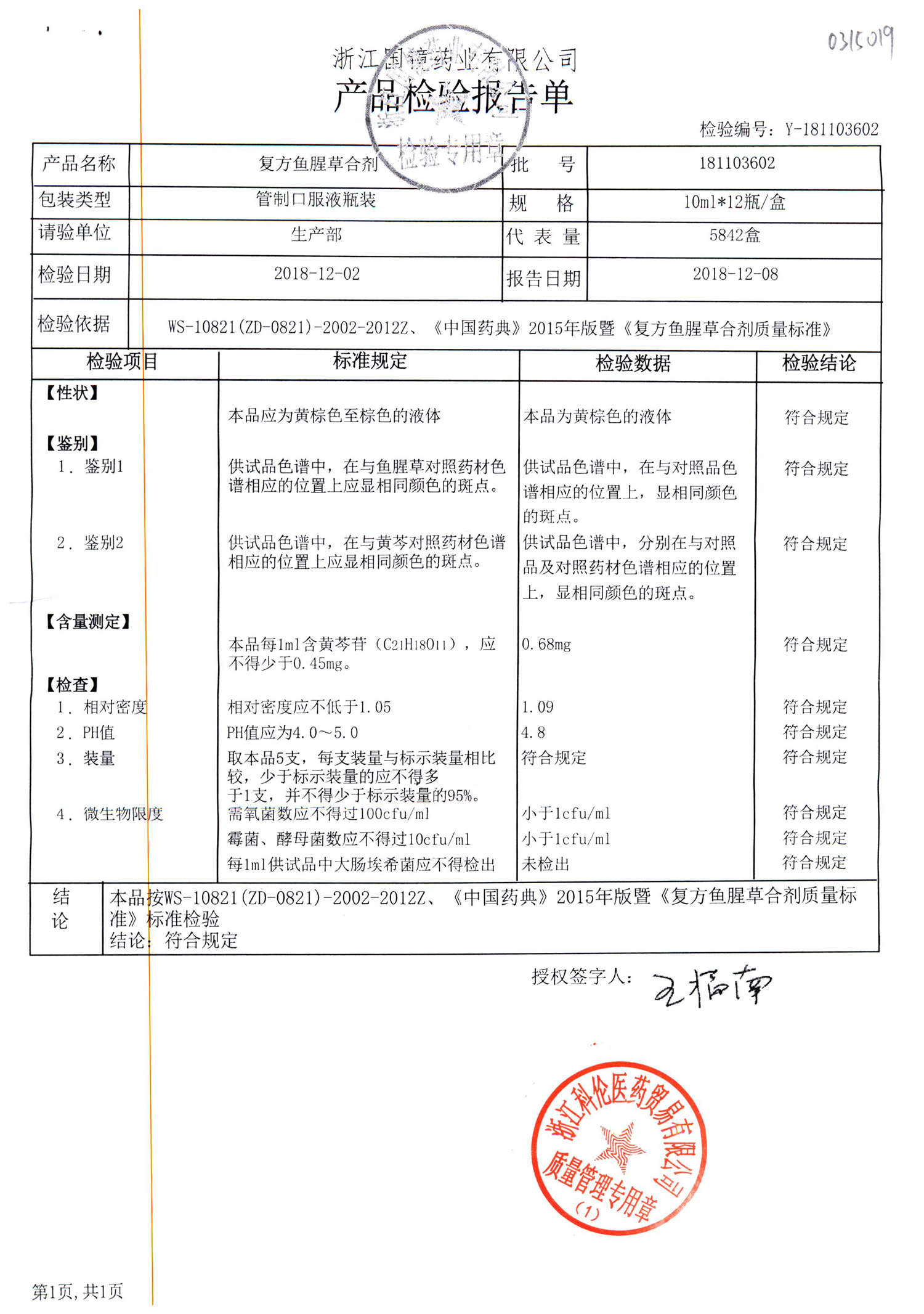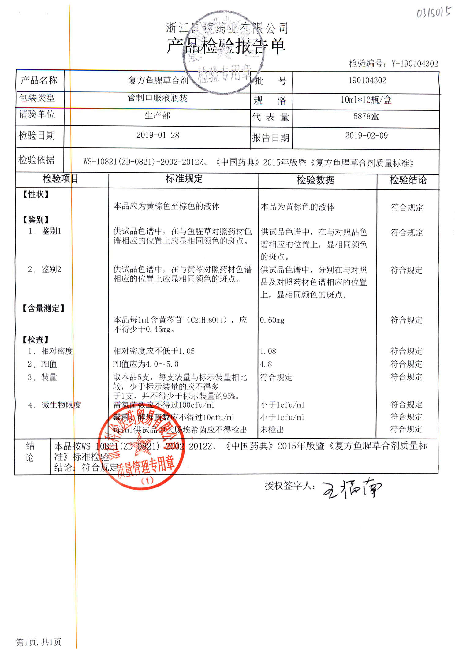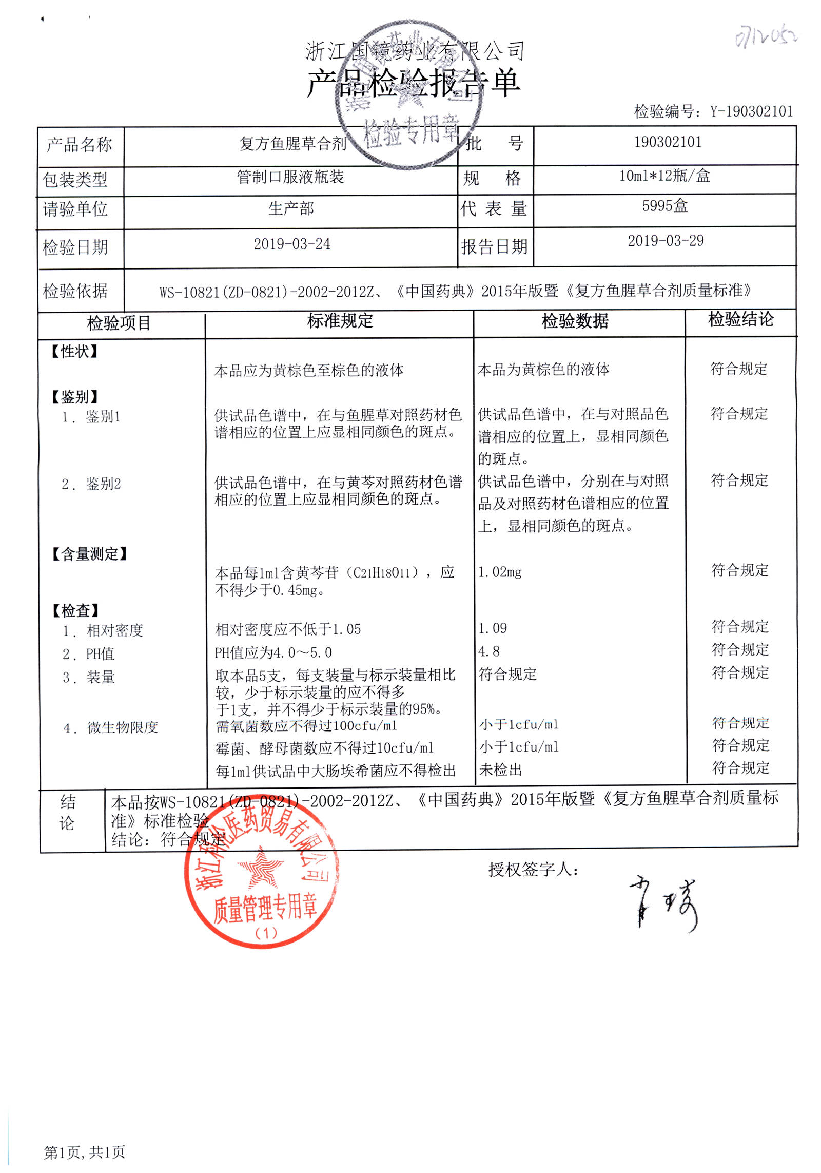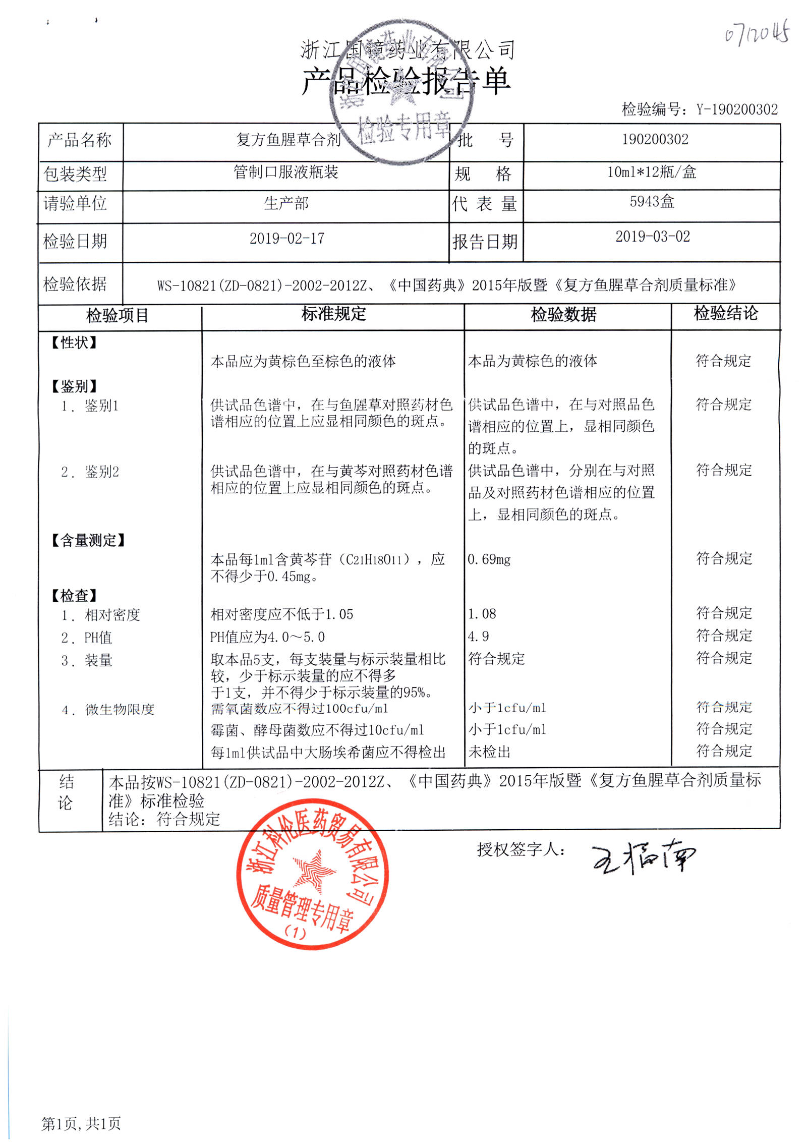 | 復(fù)方魚腥草合劑 | 10ml | 190200301 | 查看詳情 |