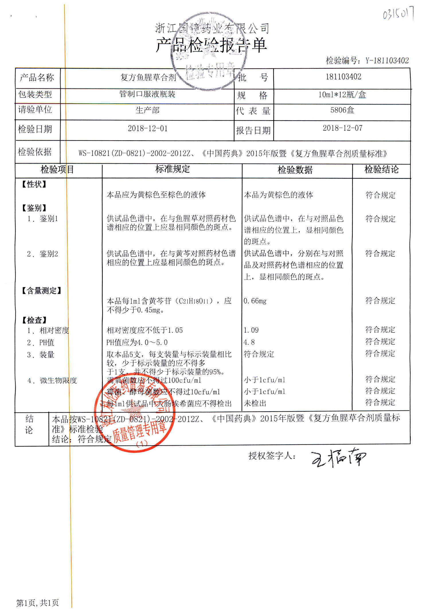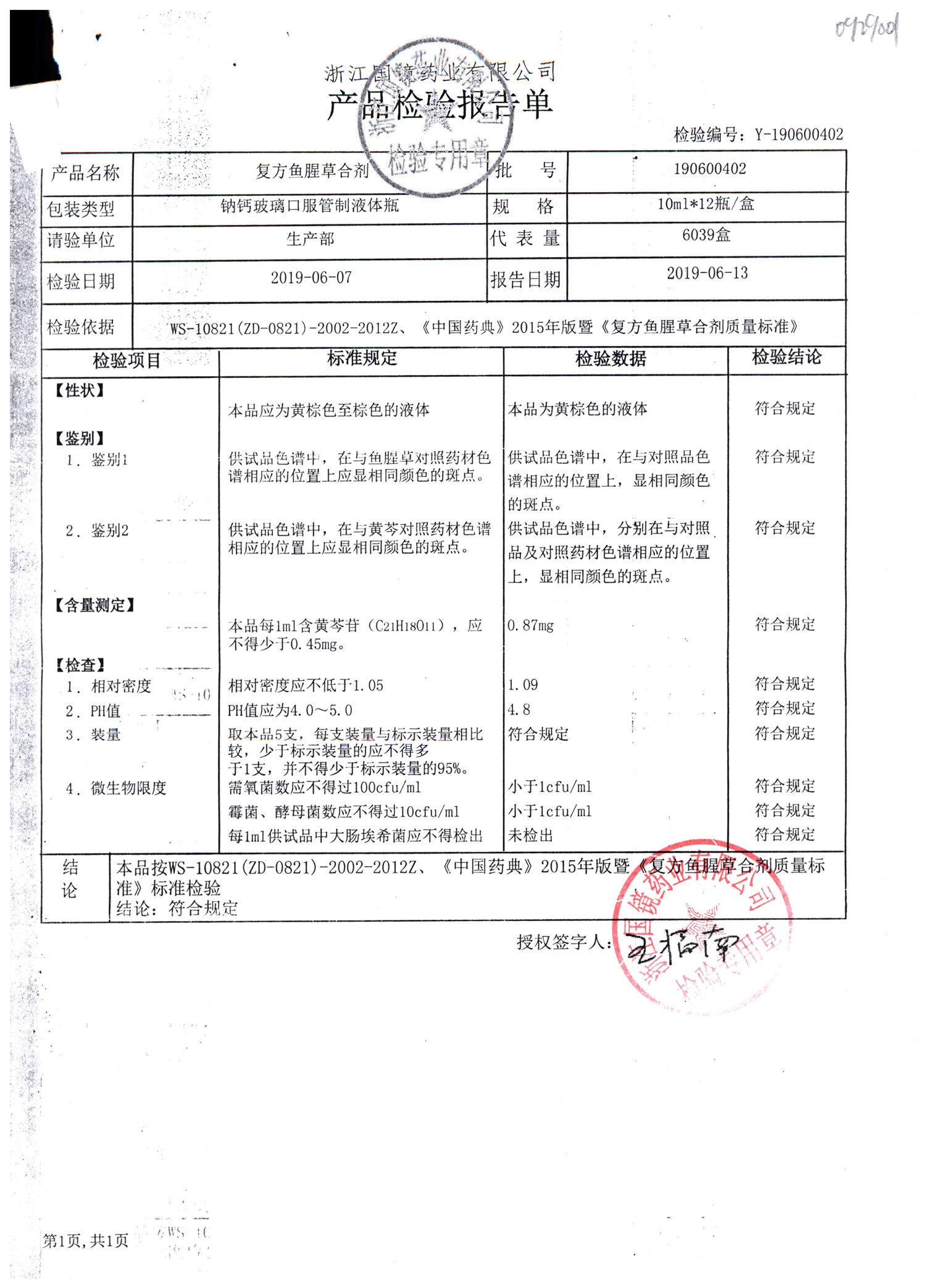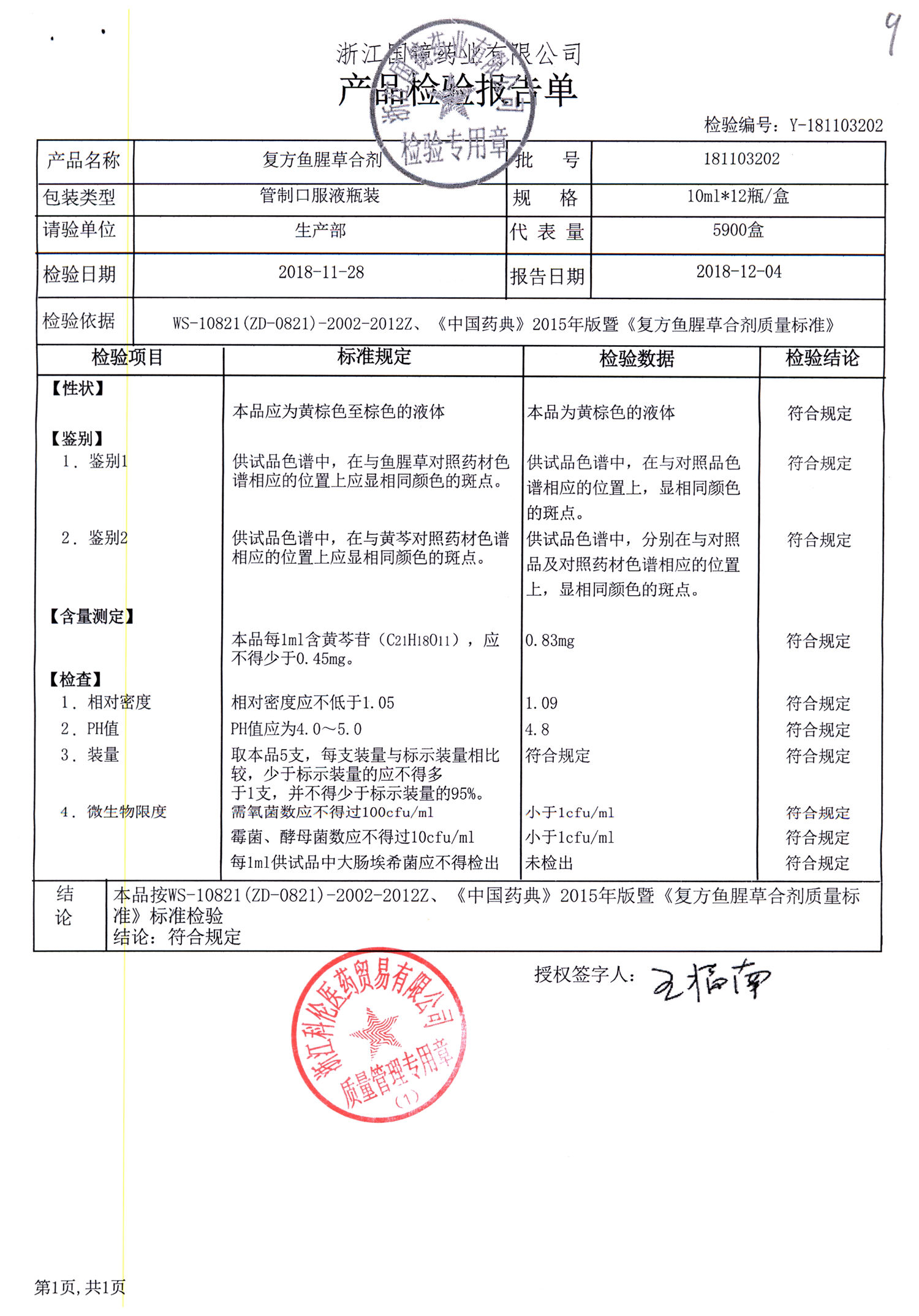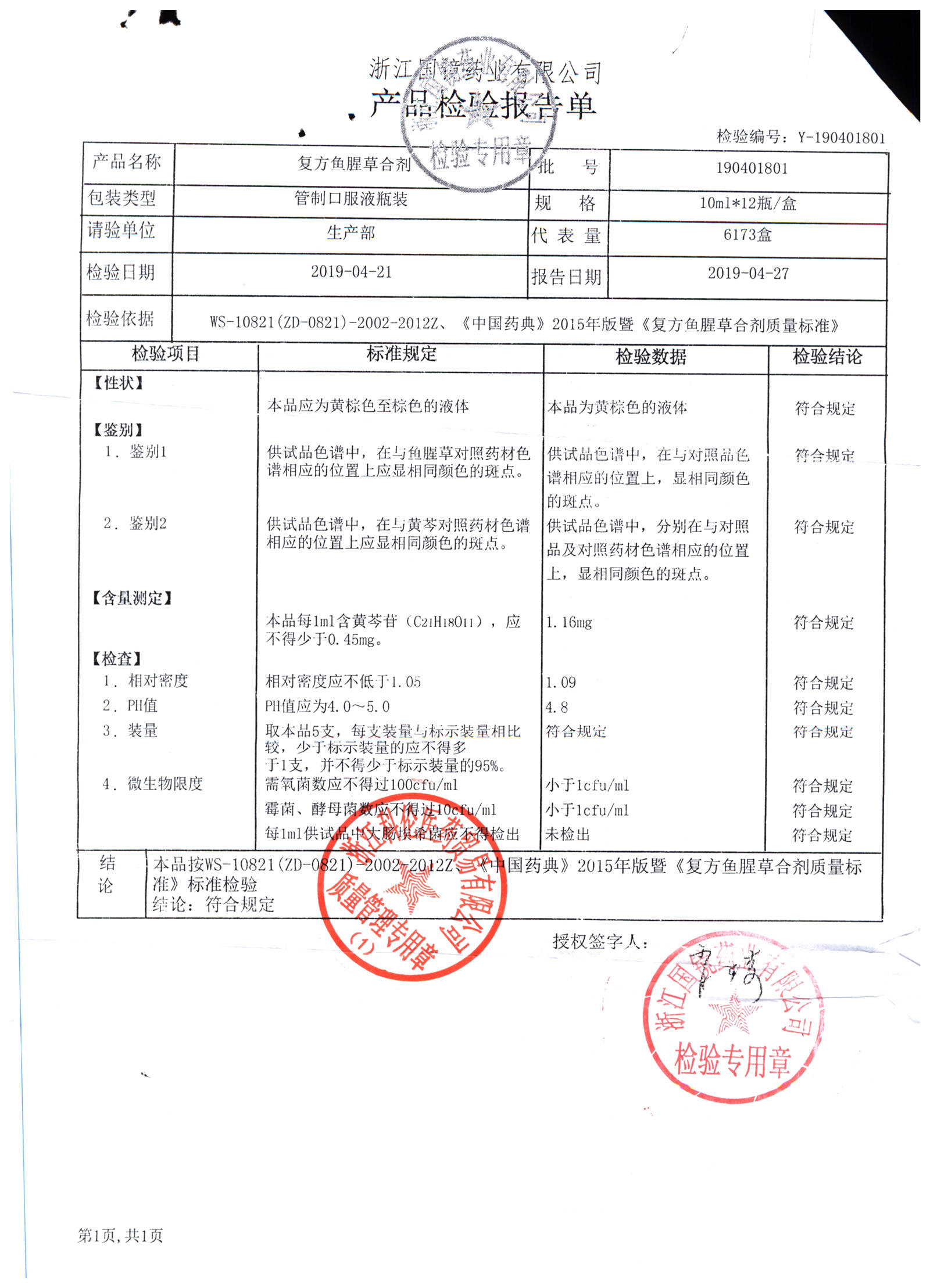 | 復(fù)方魚腥草合劑 | 10ml | 190200301 | 查看詳情 |