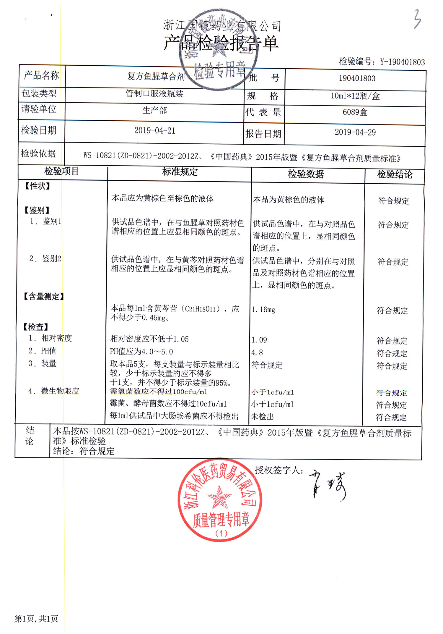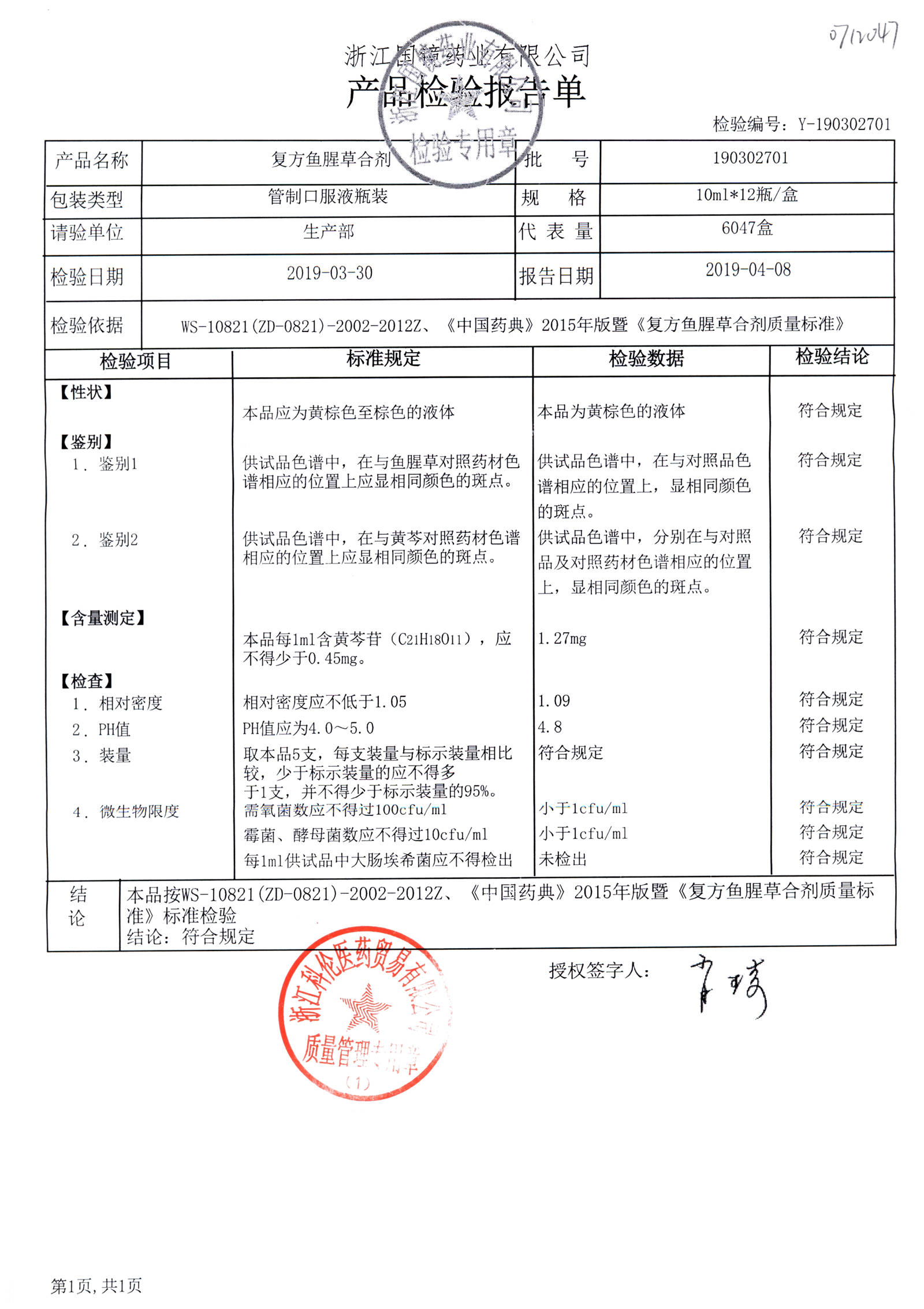 | 復(fù)方魚腥草合劑 | 10ml | 190401803 | 查看詳情 |