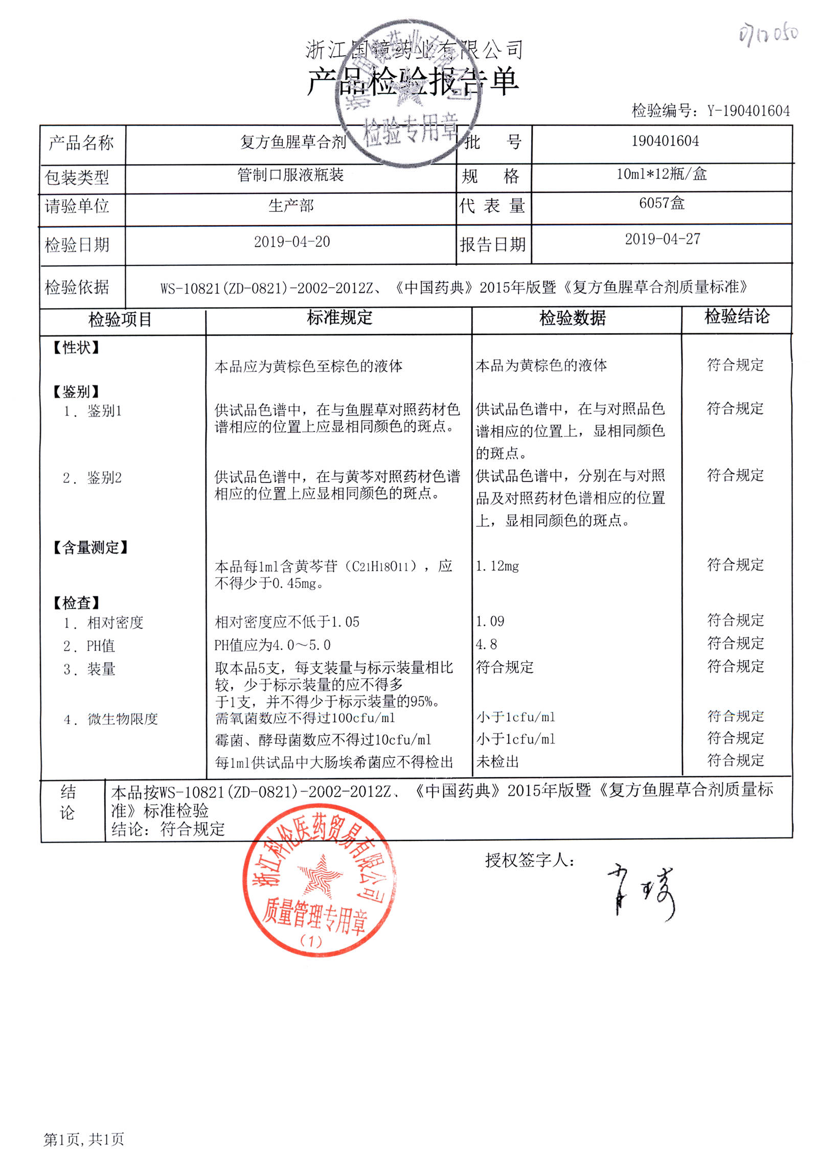 | 復(fù)方魚腥草合劑 | 10ml | D1907011B | 查看詳情 |