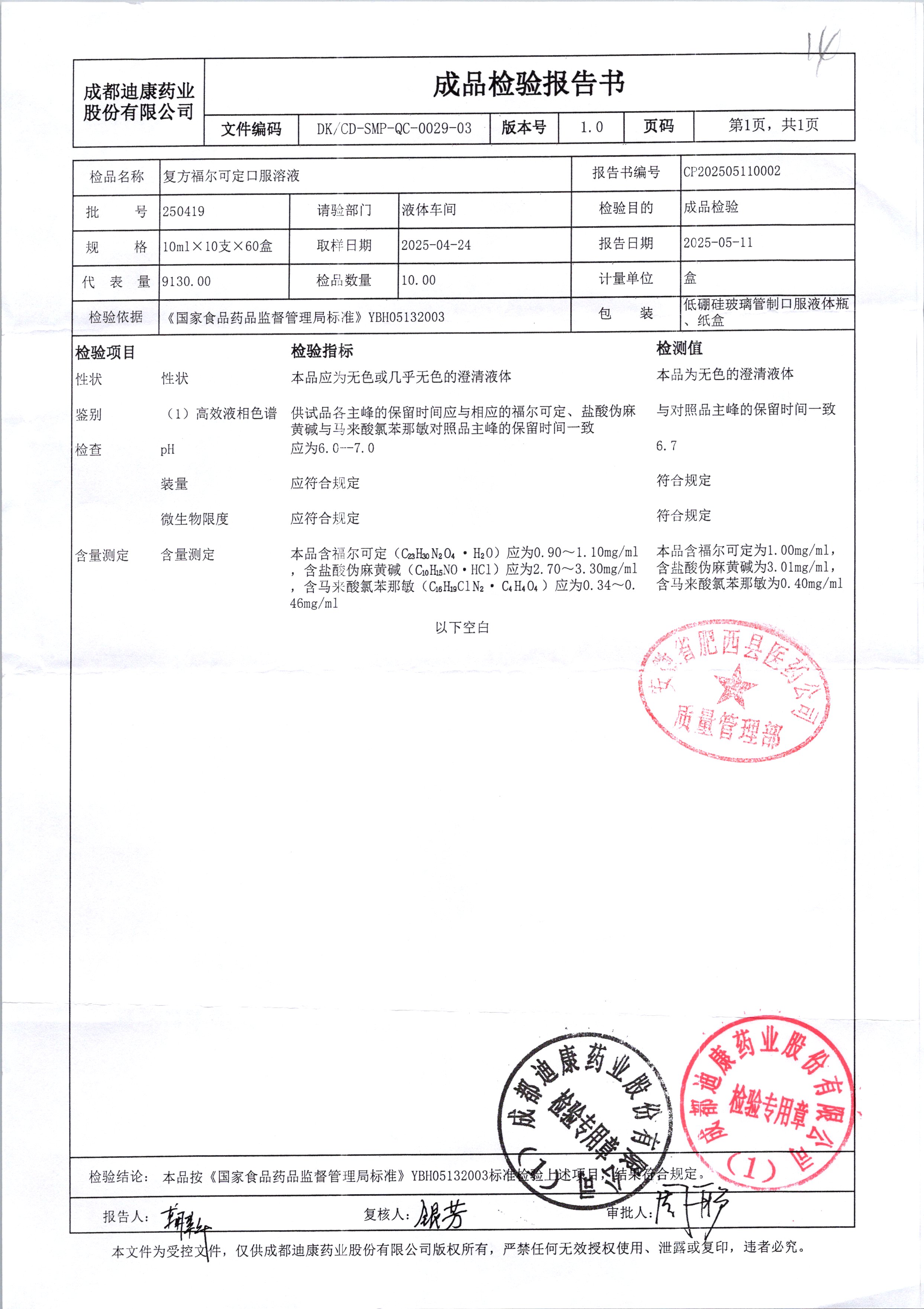 復方福爾可定口服溶液 10ml*10支 250418 查看詳情