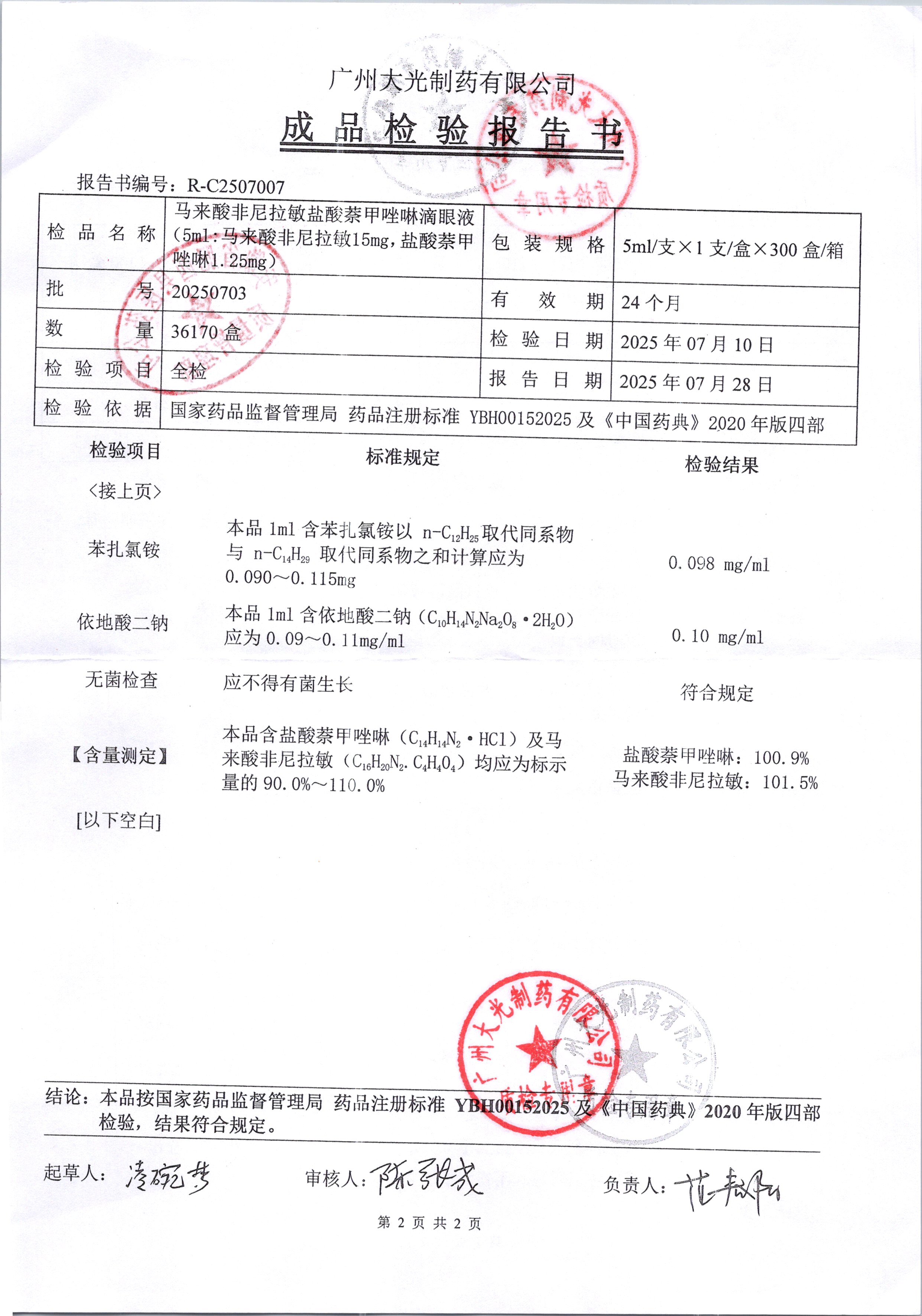 | 馬來酸非尼拉敏鹽酸萘甲唑啉滴眼液 | 5ml | 20250706/2 | 查看詳情 |