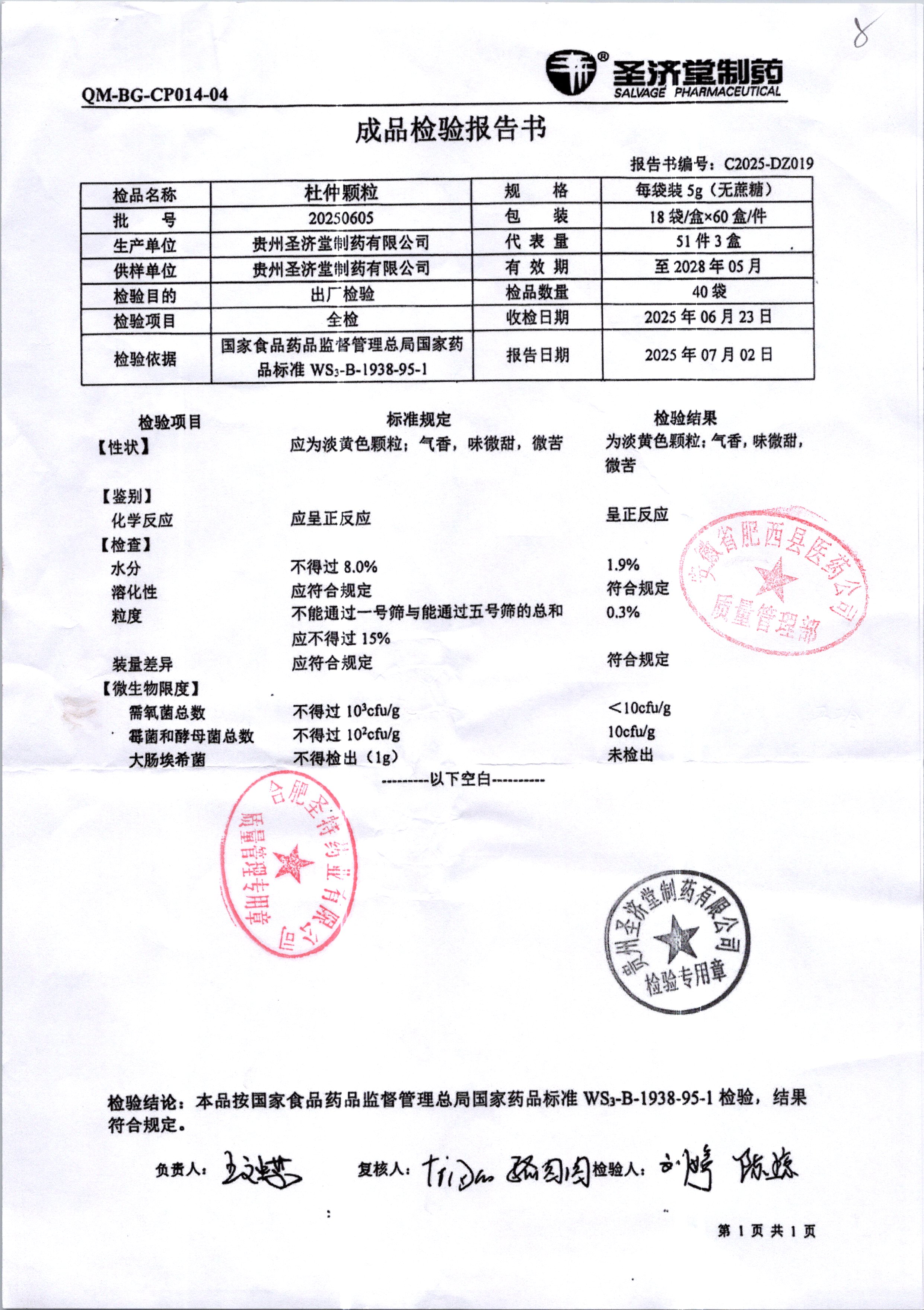 杜仲顆粒 5g 20250605 查看詳情
