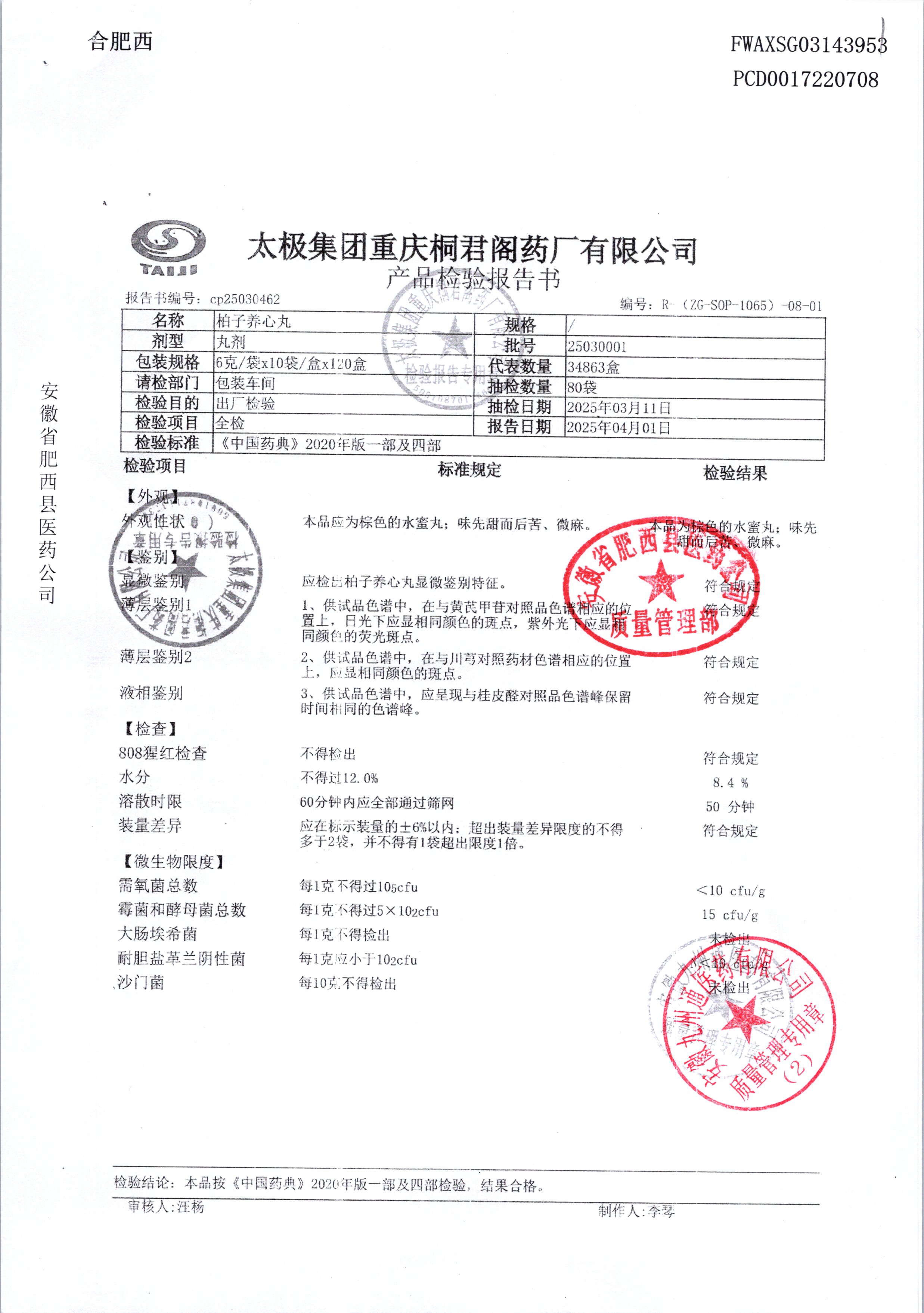 柏子養(yǎng)心丸 6g*10袋 25030001 查看詳情