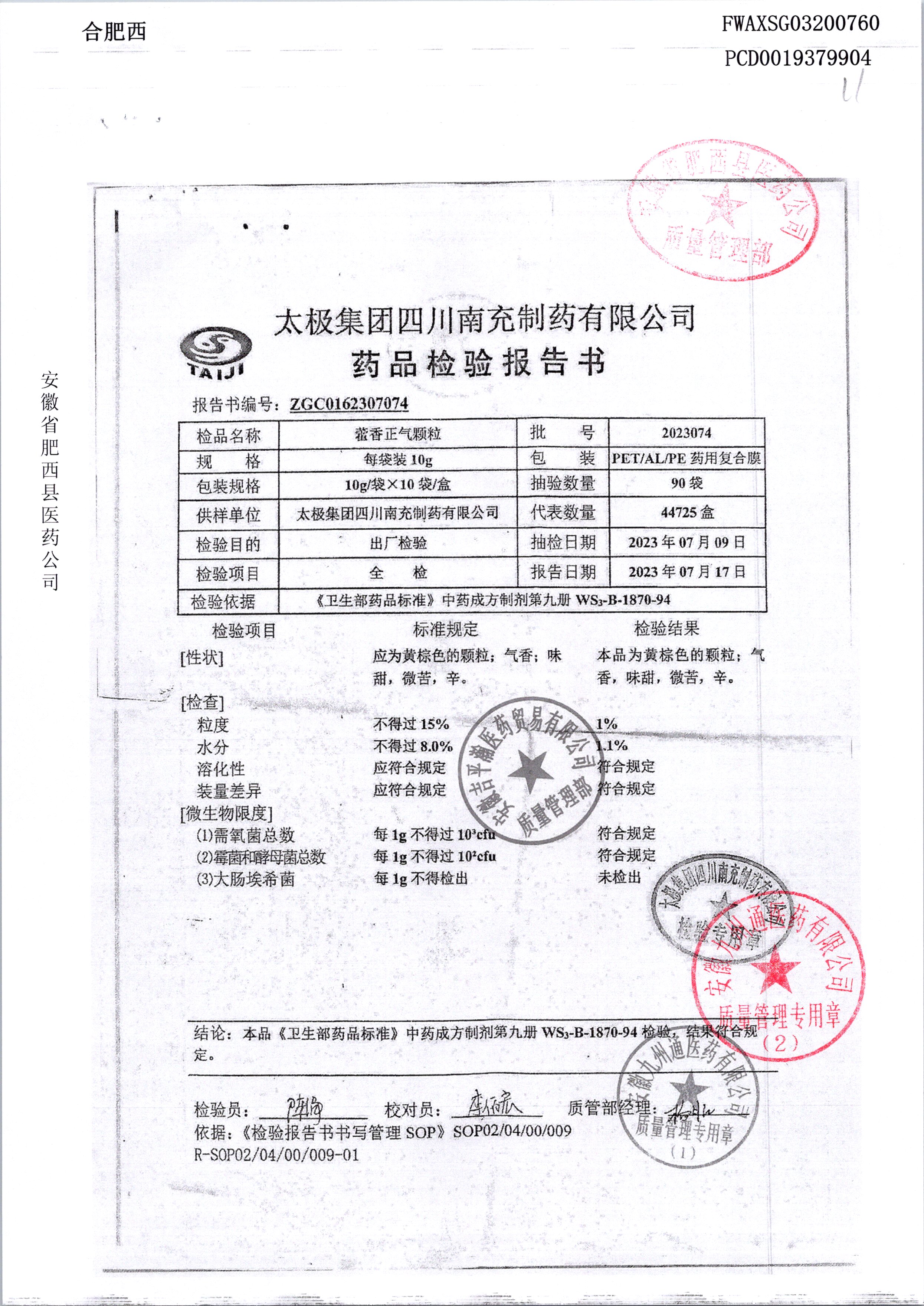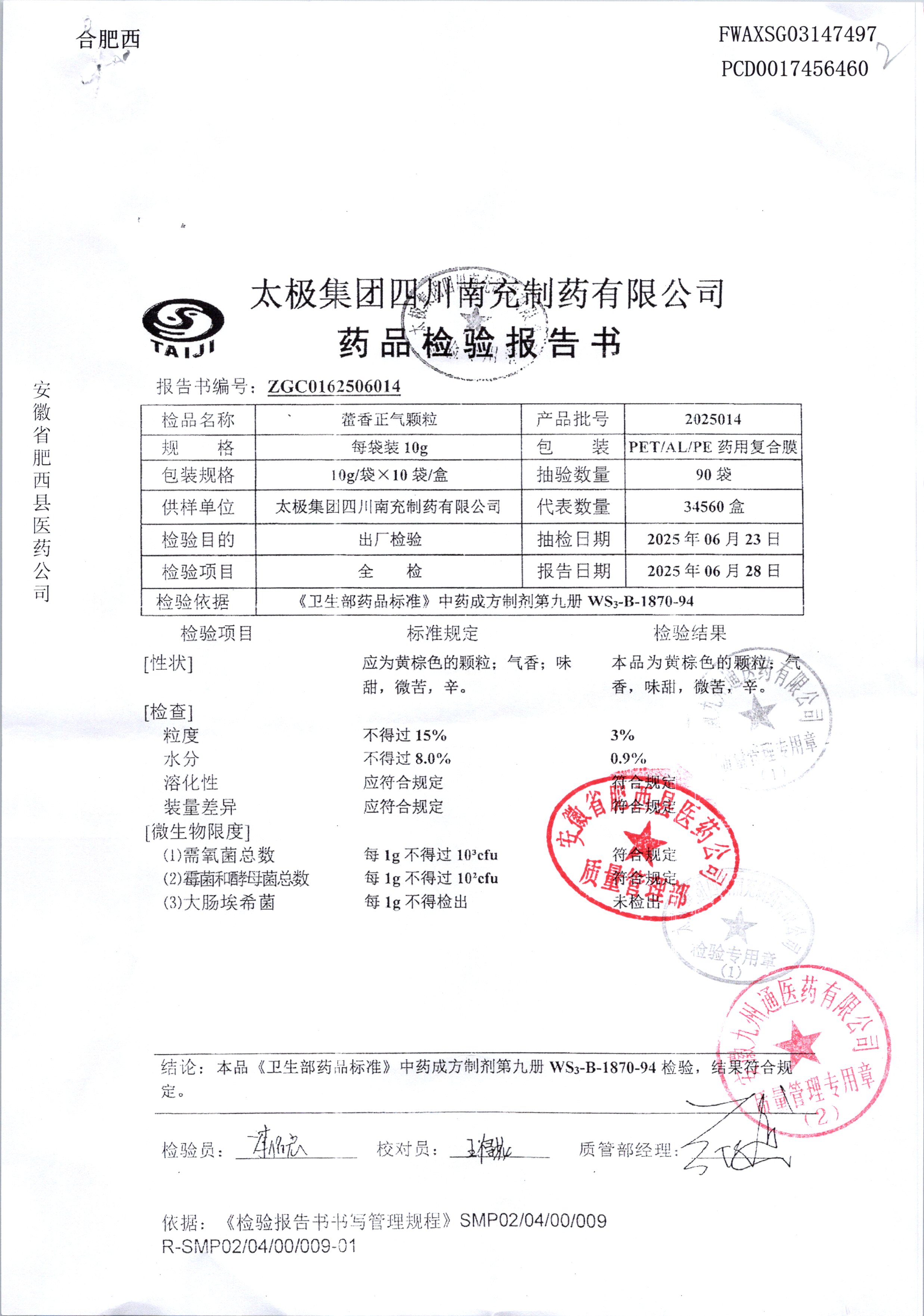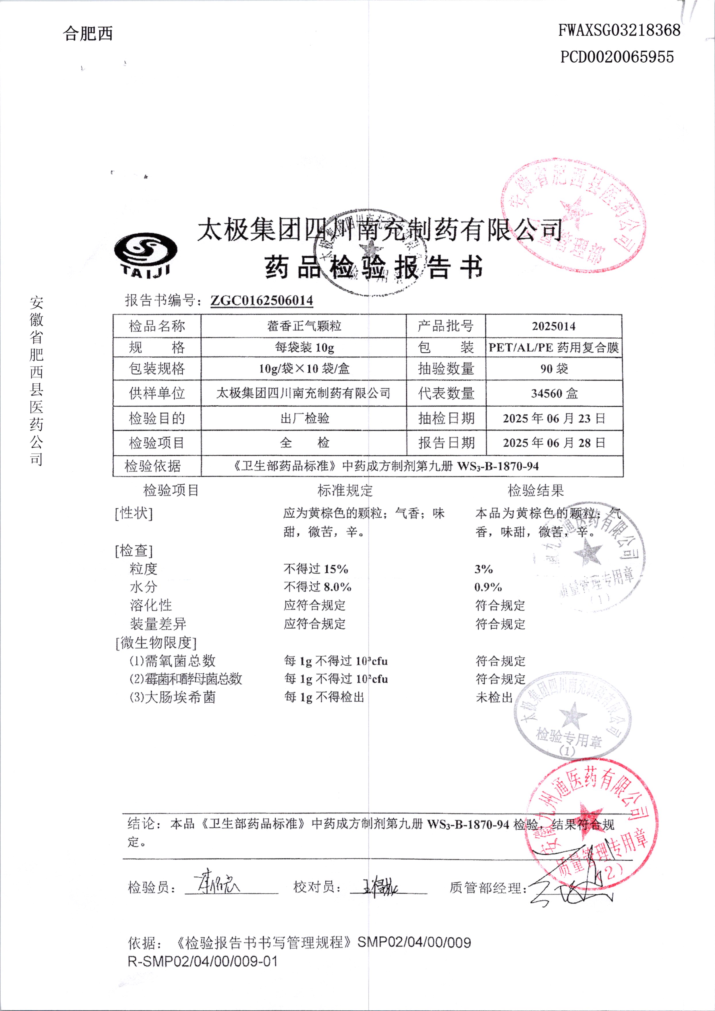 名稱 規格 批號 藥檢報告