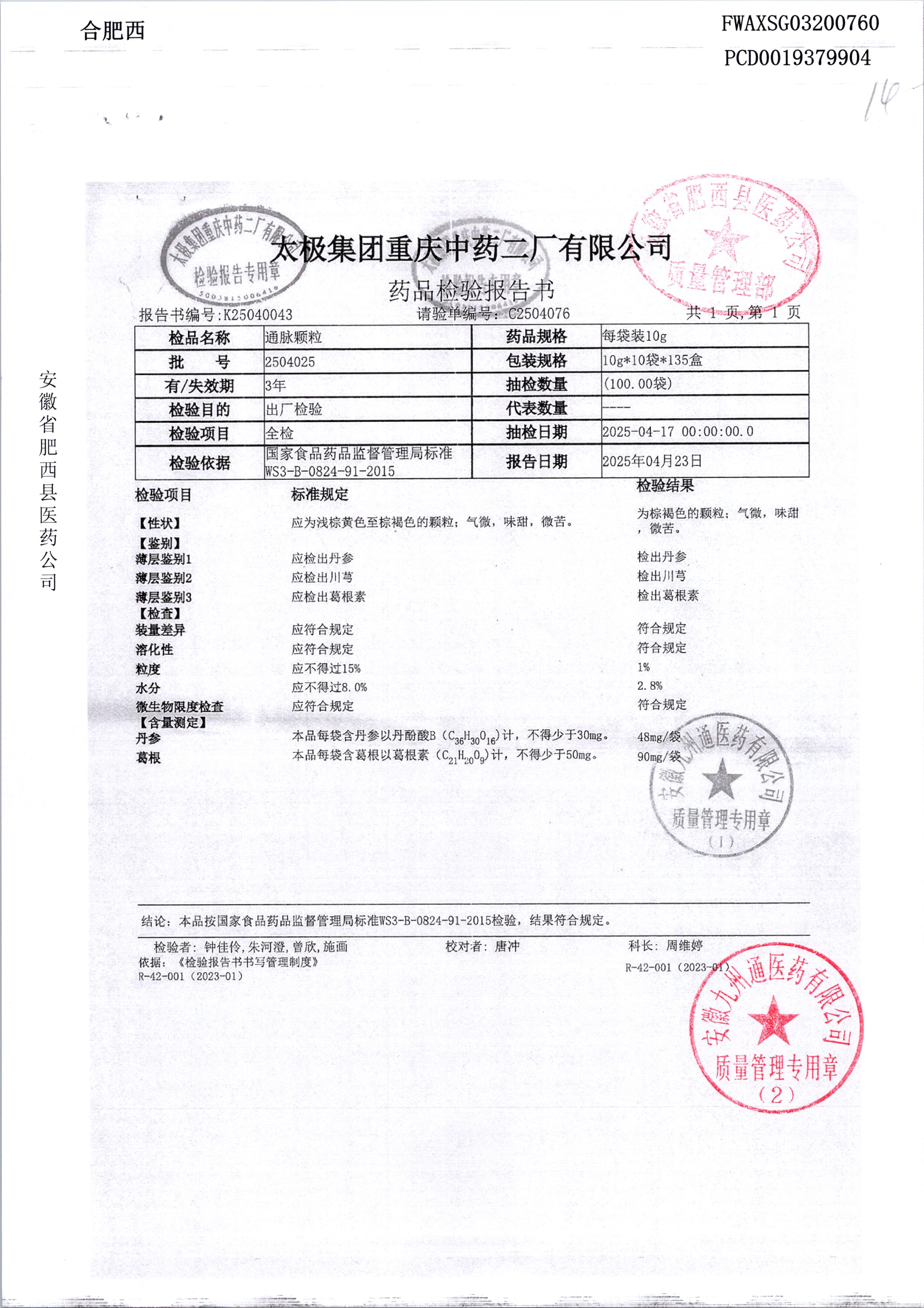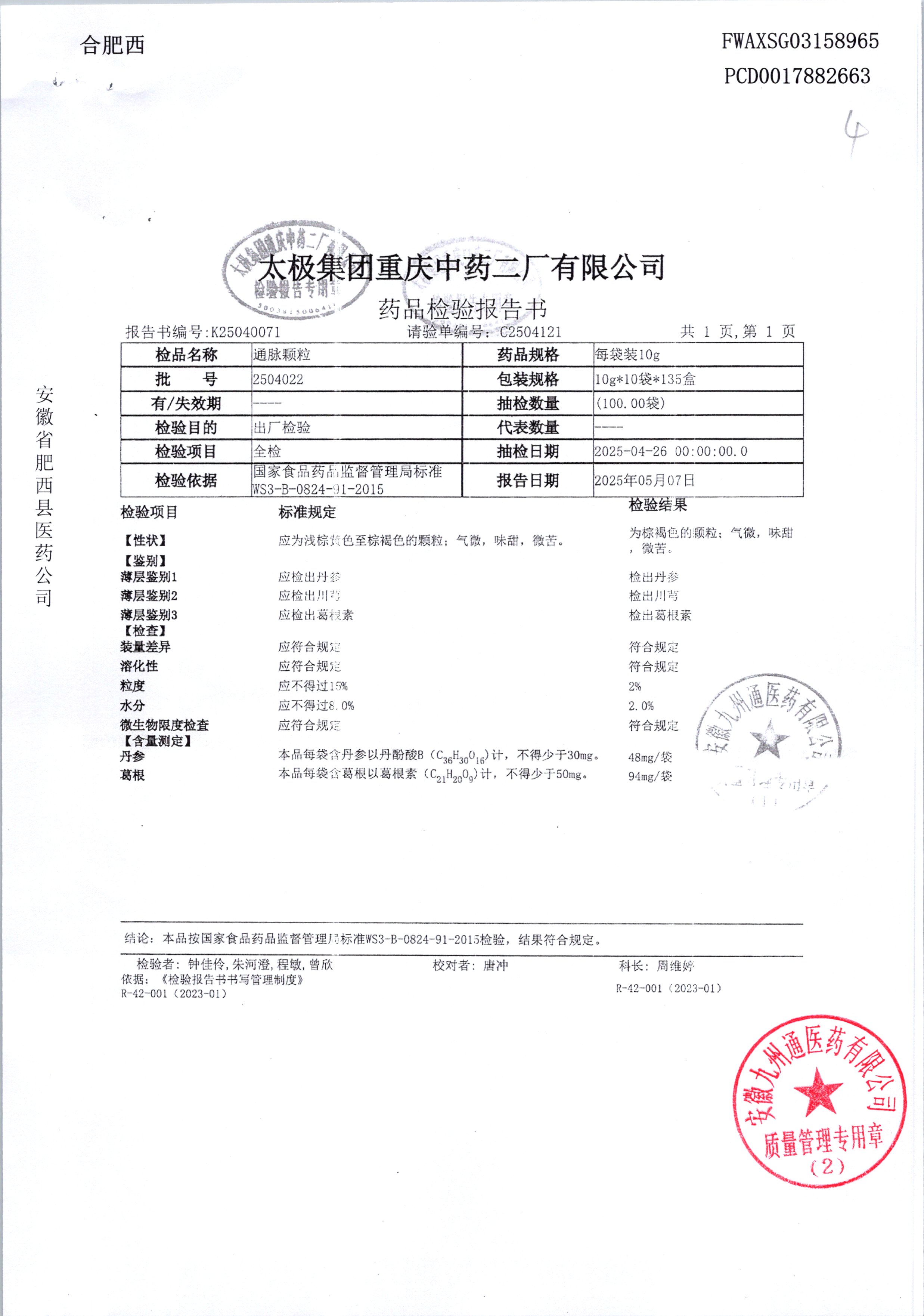 名稱 規格 批號 藥檢報告