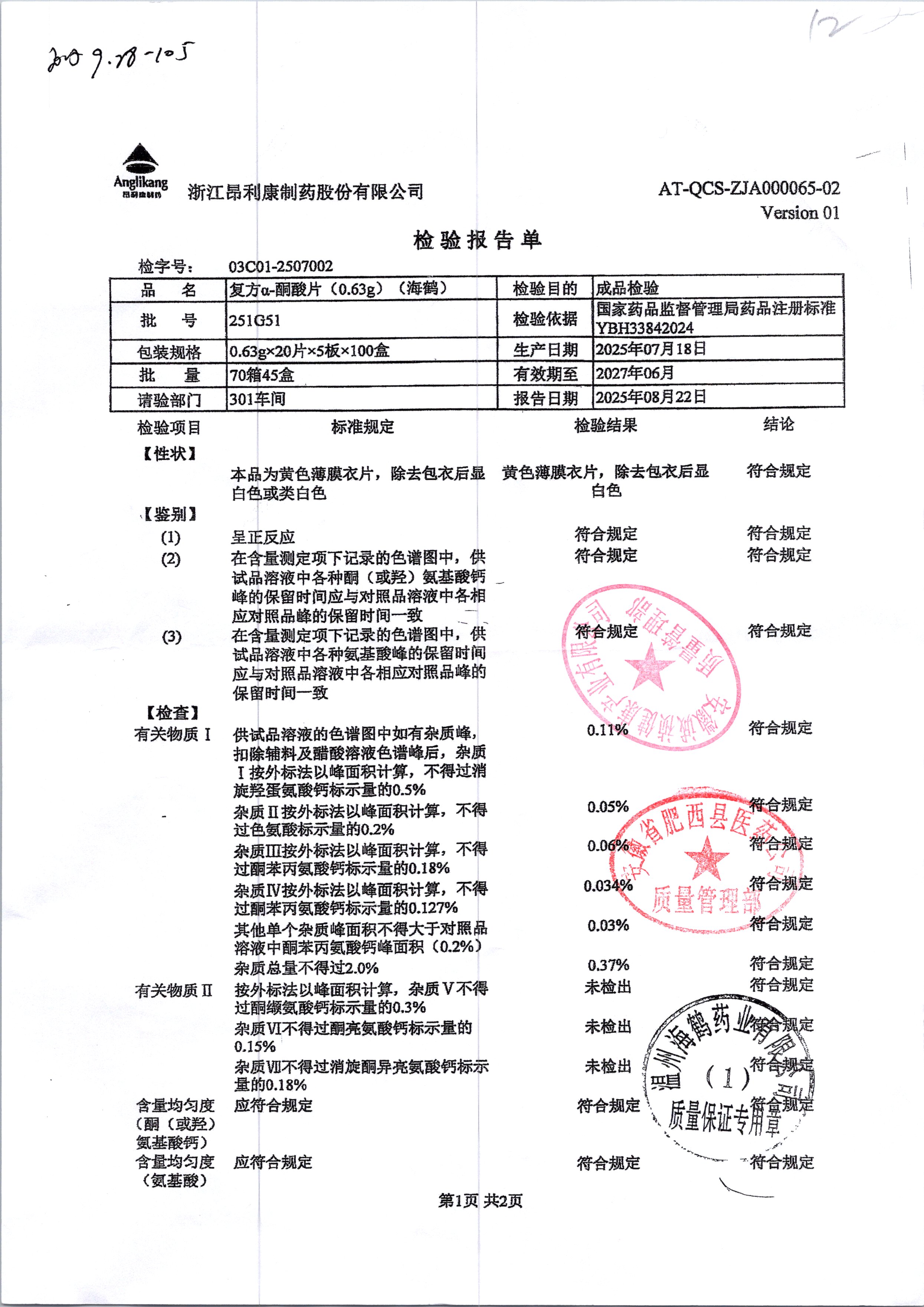 | 復(fù)方a-酮酸片 | 0.63g*20片*5 | 251G51/2 | 查看詳情 |