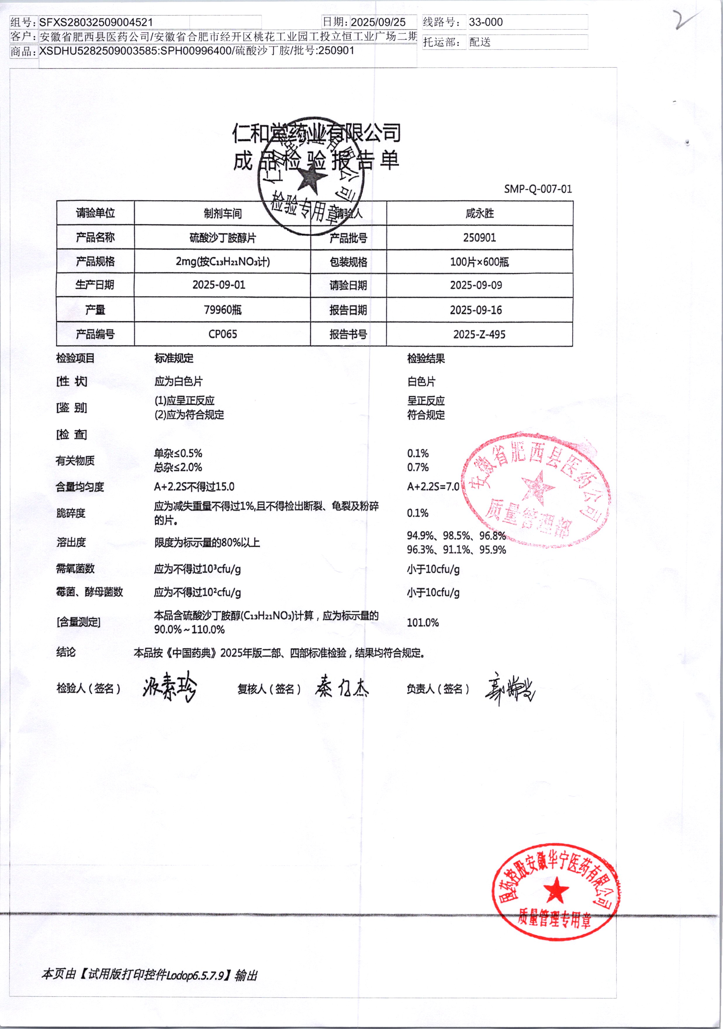 硫酸沙丁胺醇片 2mg*100片 250901 查看詳情