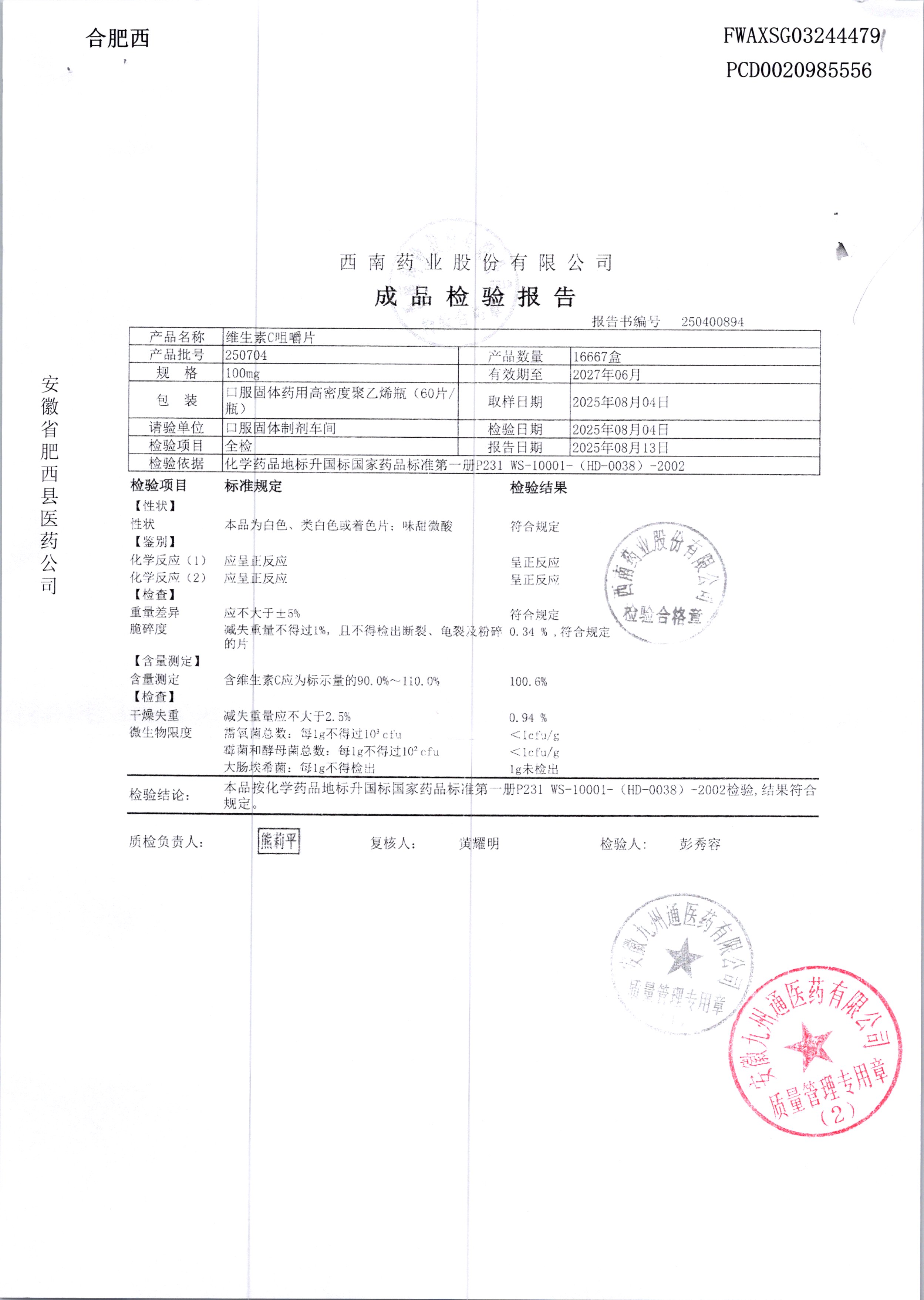 名稱 規格 批號 藥檢報告