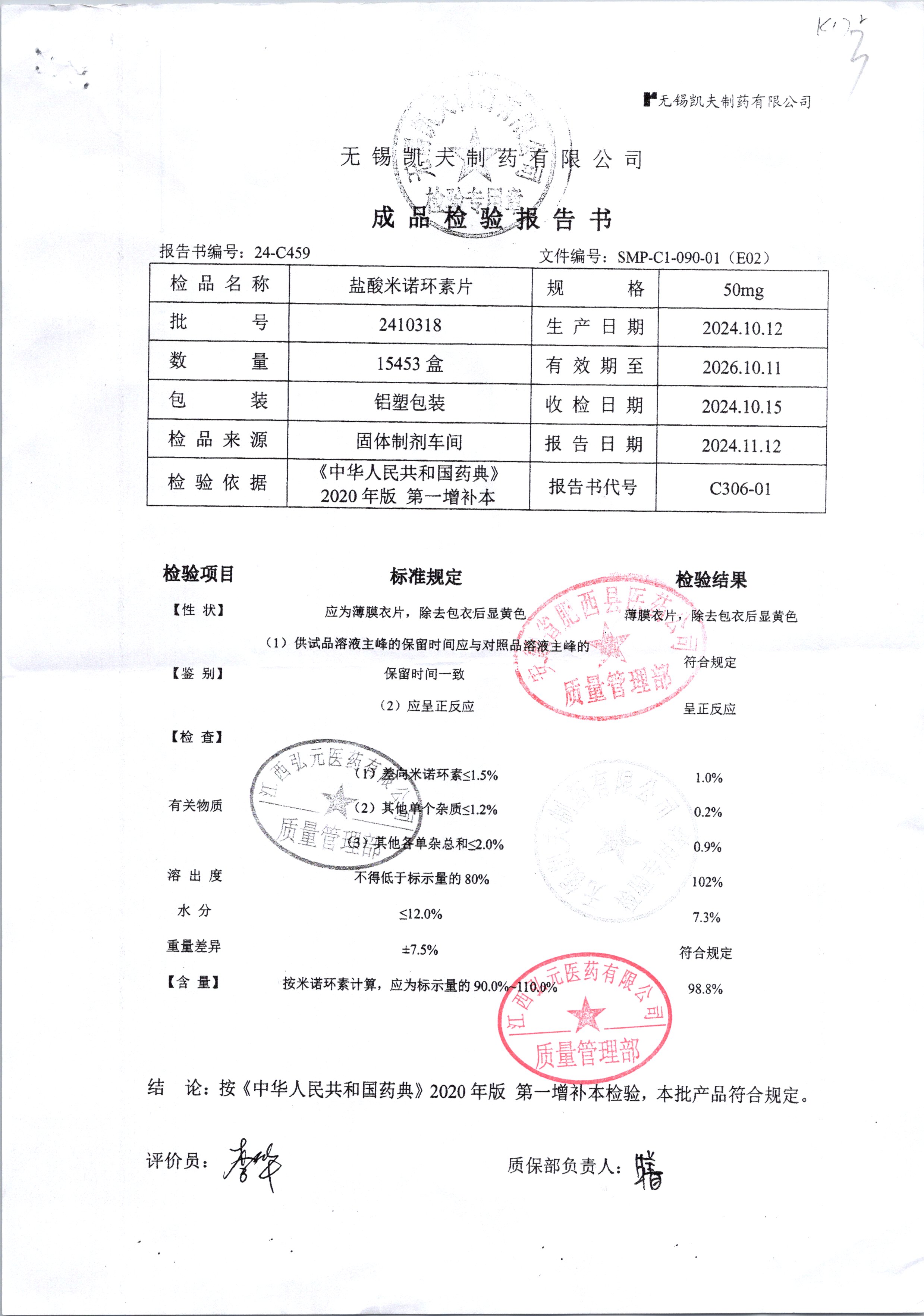 名稱 規格 批號 藥檢報告