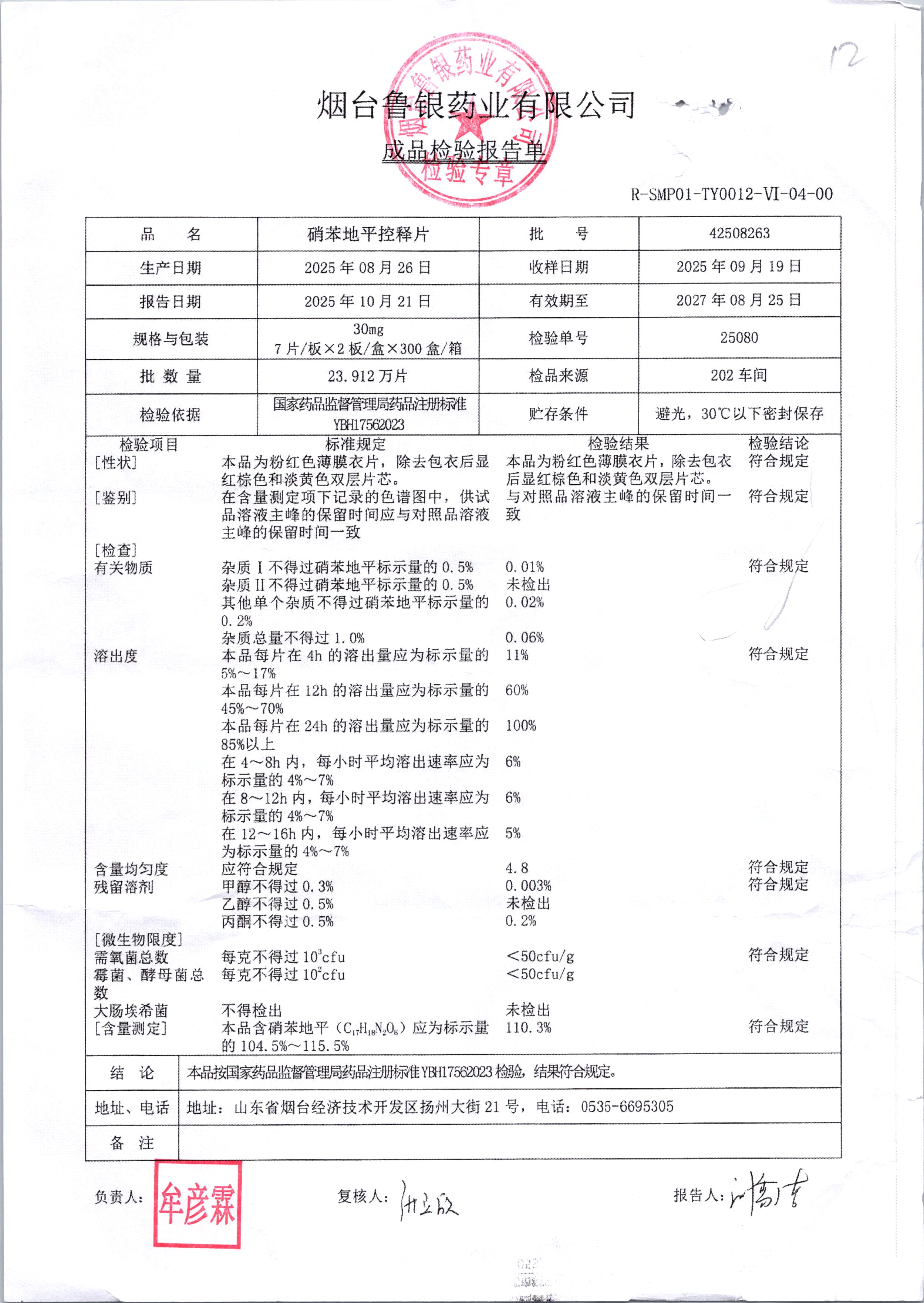硝苯地平控釋片 30mg*14片 42508263 查看詳情