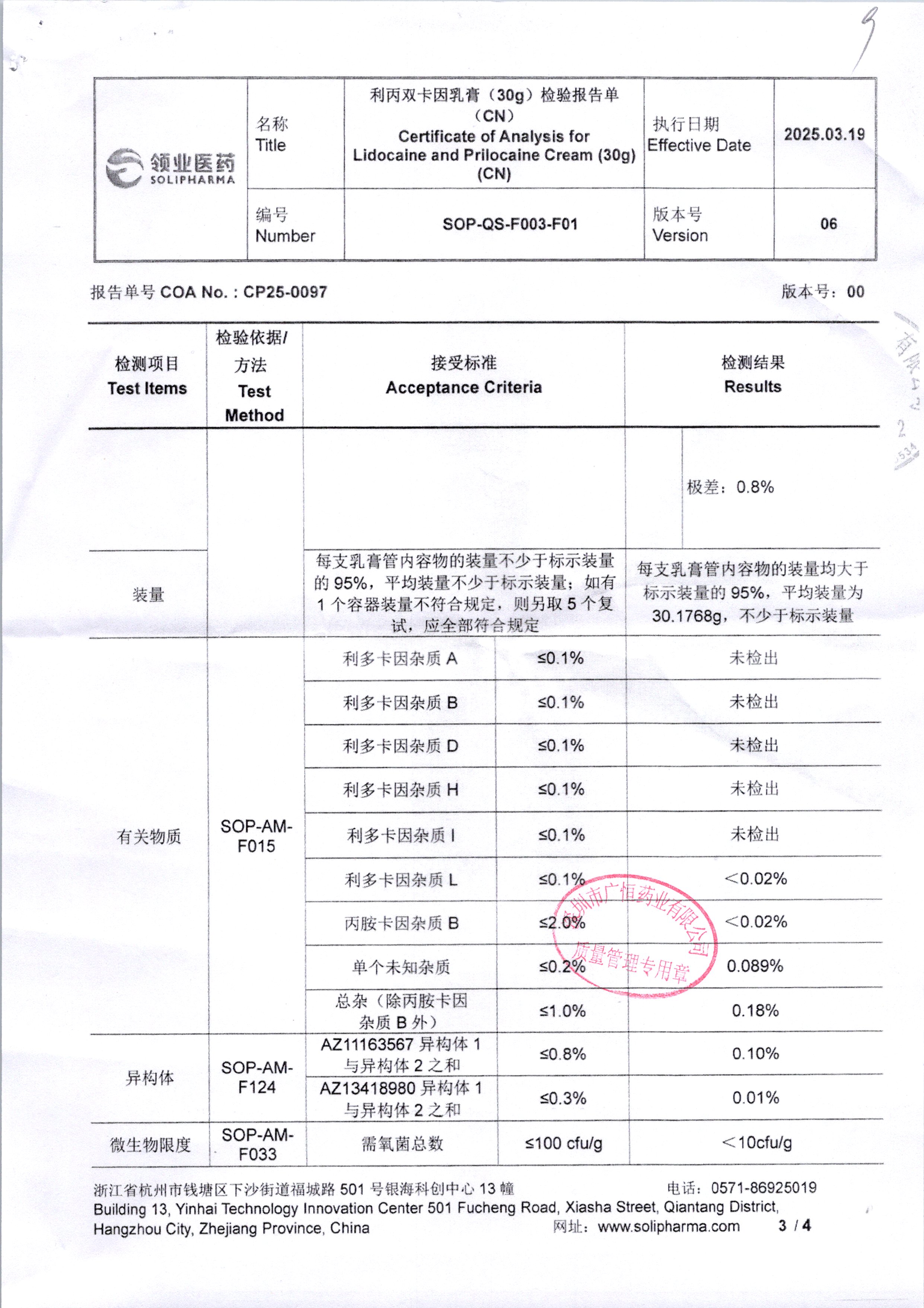 | 利丙雙卡因乳膏 | 30g | 4250808/4 | 查看詳情 |