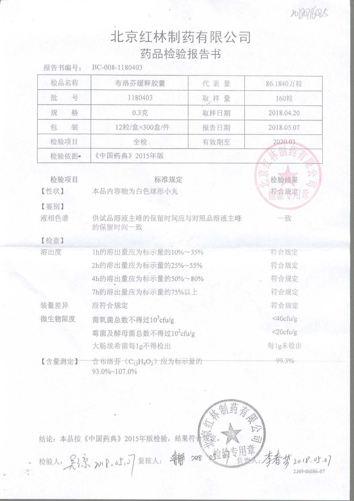 | 布洛芬緩釋膠囊 | 0.3g*12粒 | 1180403(2/2) | 查看詳情 |