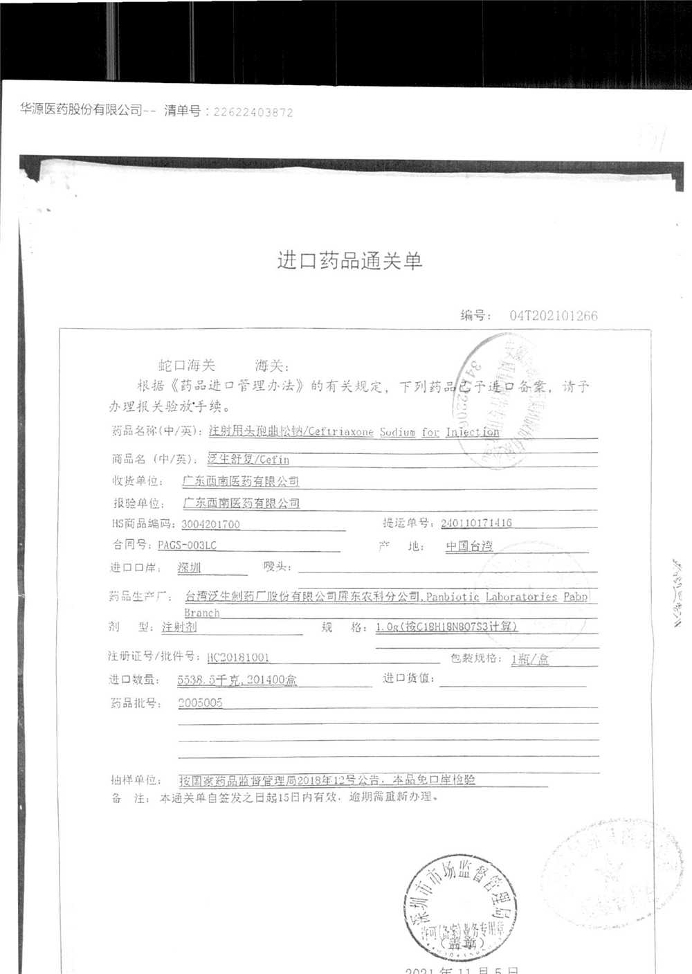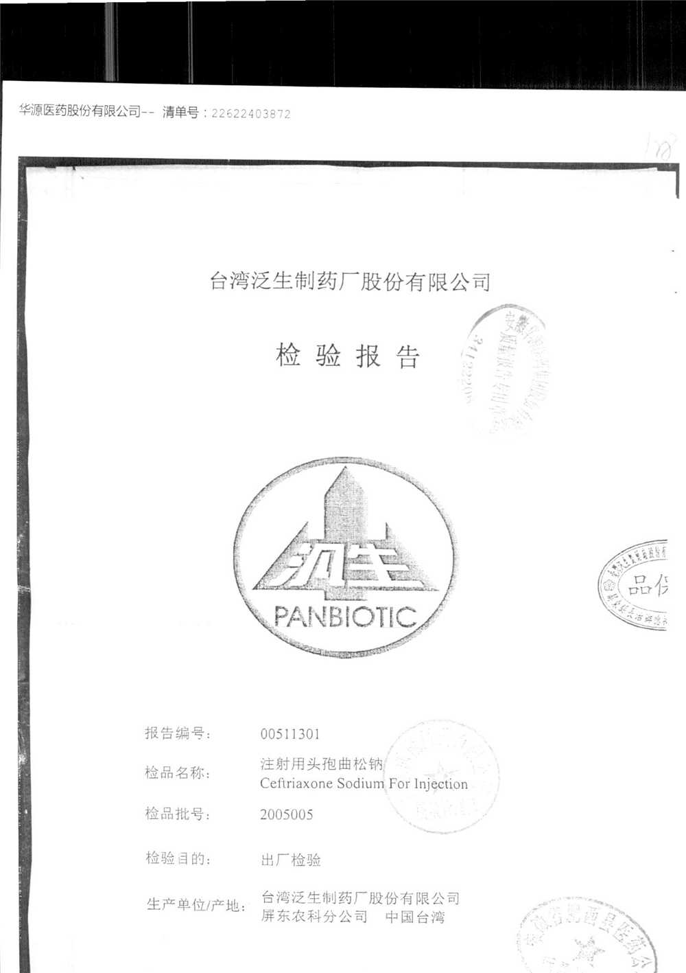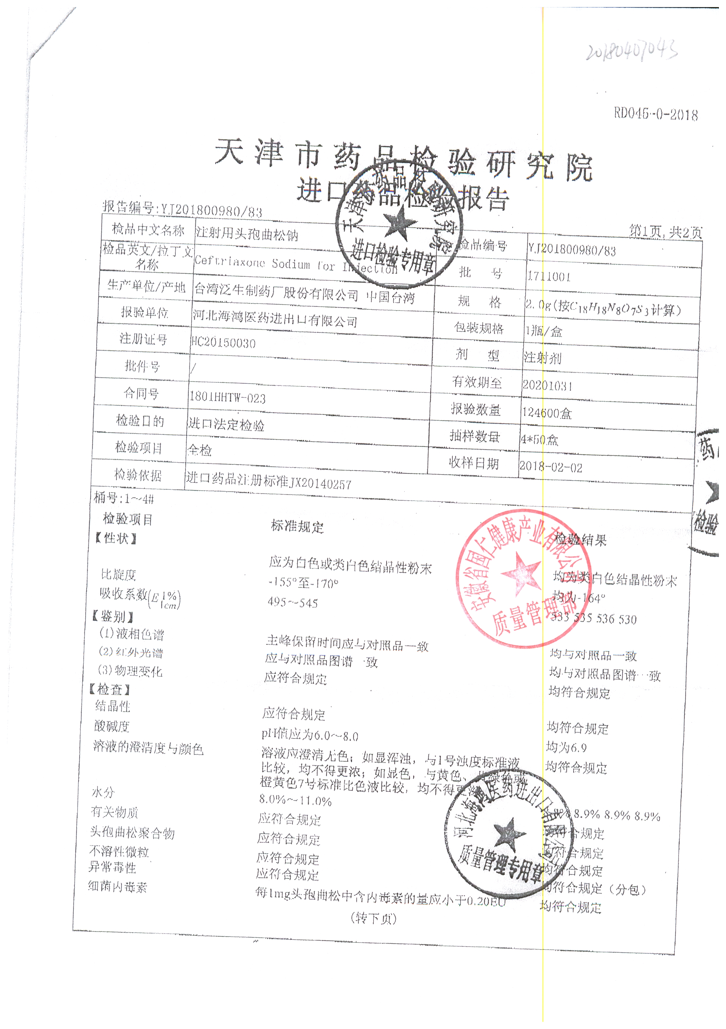 | 注射用頭孢曲松鈉 | 2.0g | 2005005(4/4) | 查看詳情 |