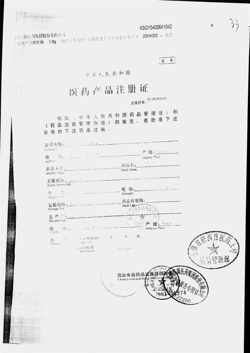 | 注射用頭孢曲松鈉 | 2.0g | 2004003(3/4) | 查看詳情 |