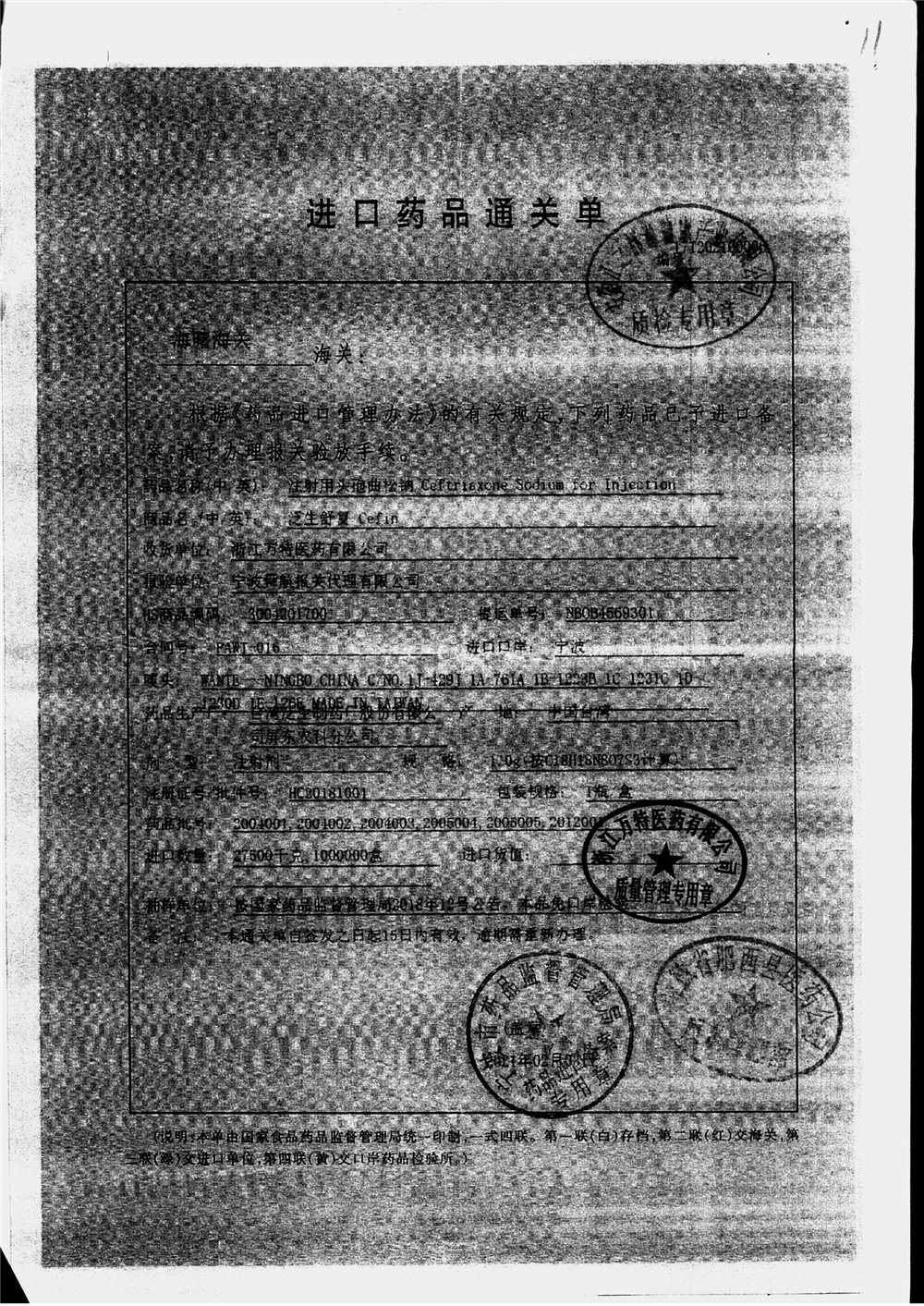 | 注射用頭孢曲松鈉 | 2.0g | 2010001(2/4) | 查看詳情 |