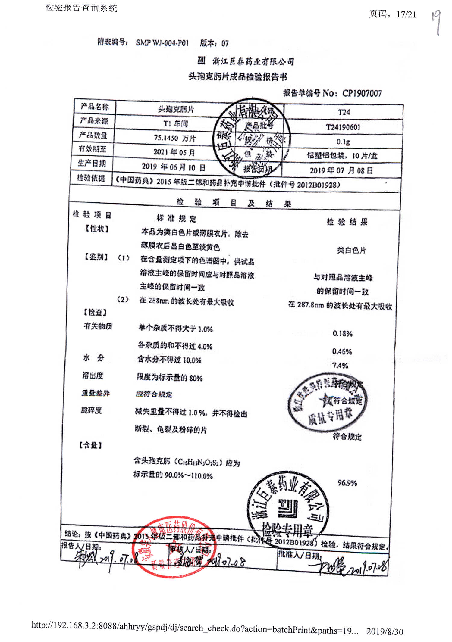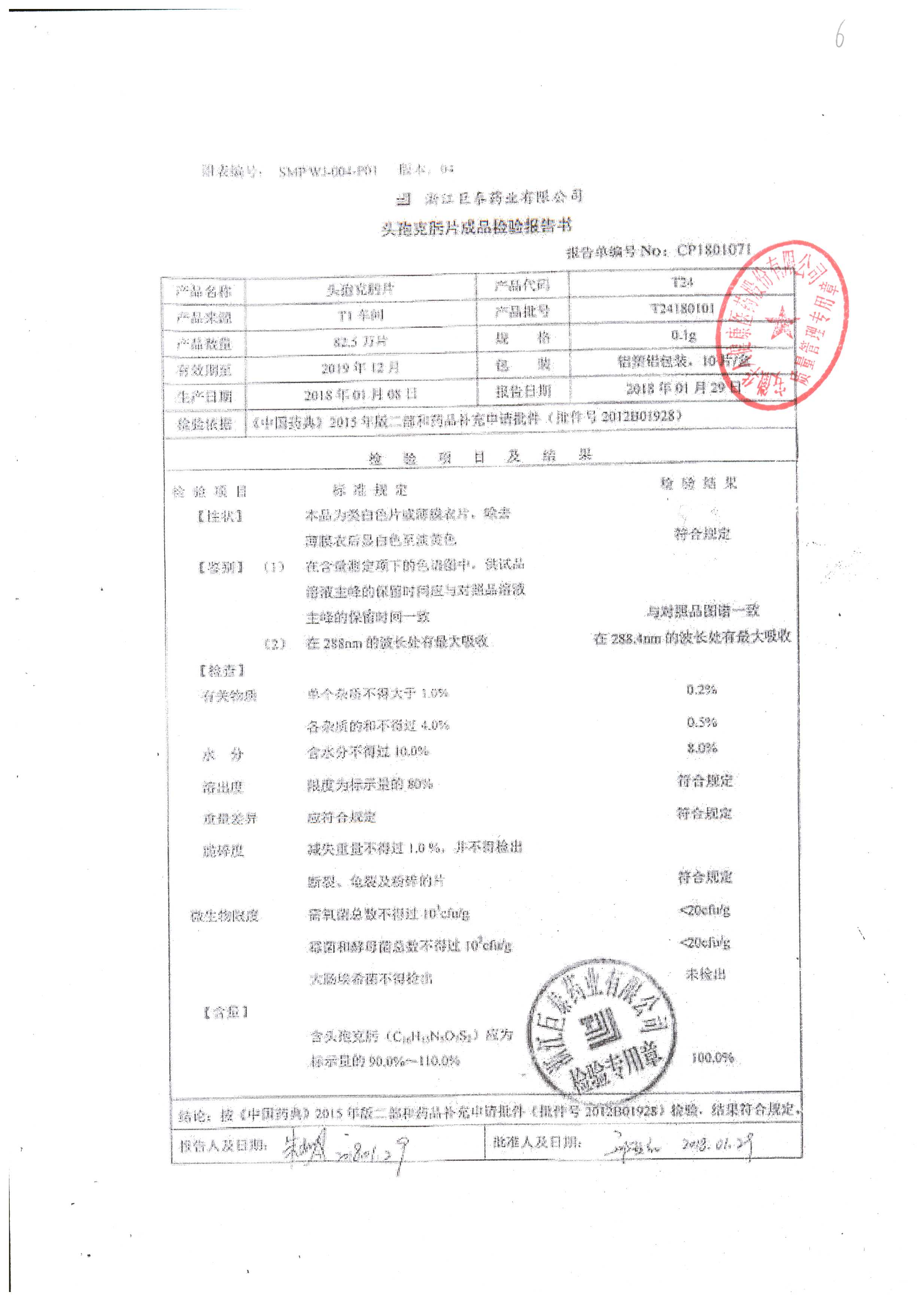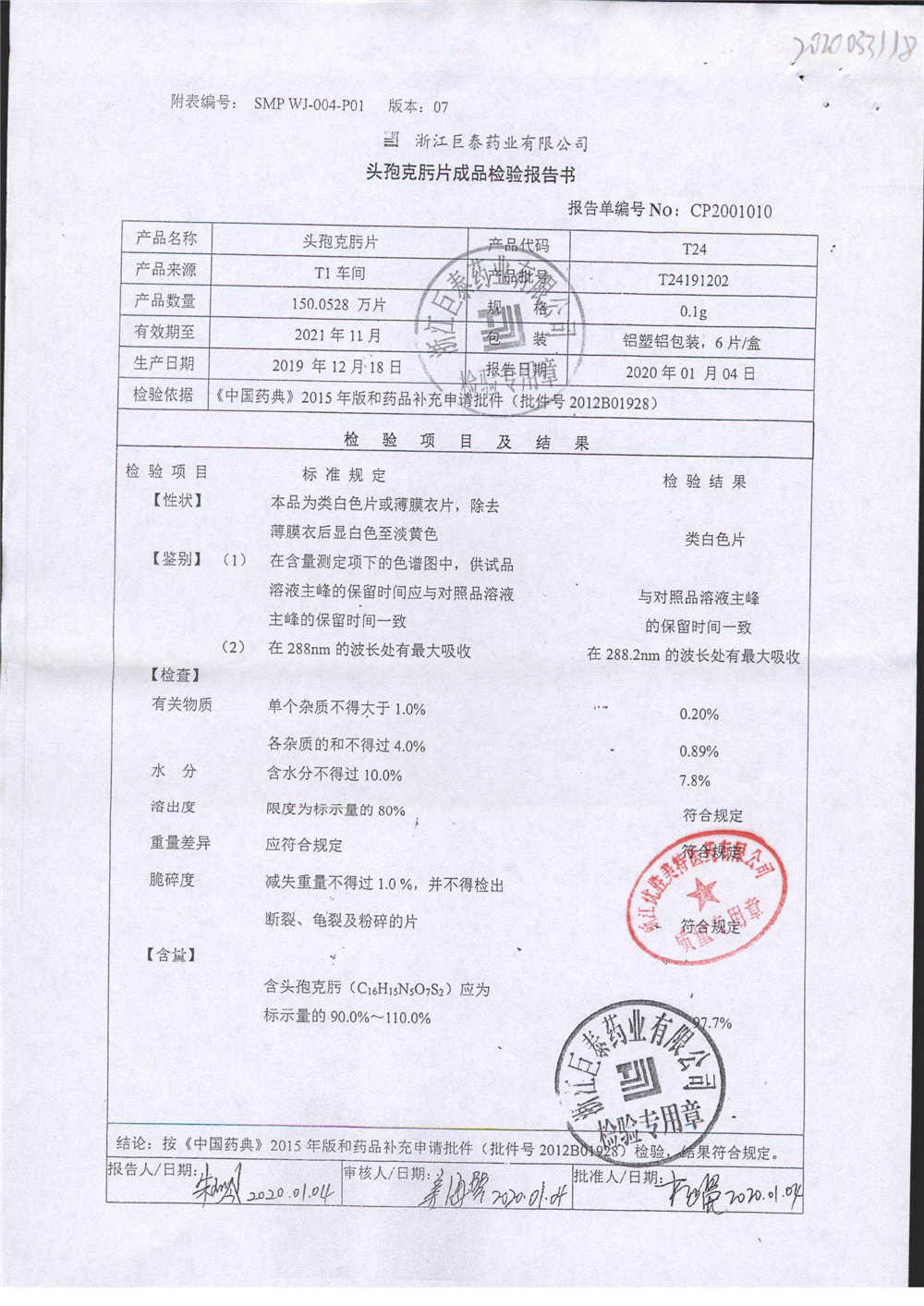 | 頭孢克肟片 | 0.1g*10s | T24181101 | 查看詳情 |