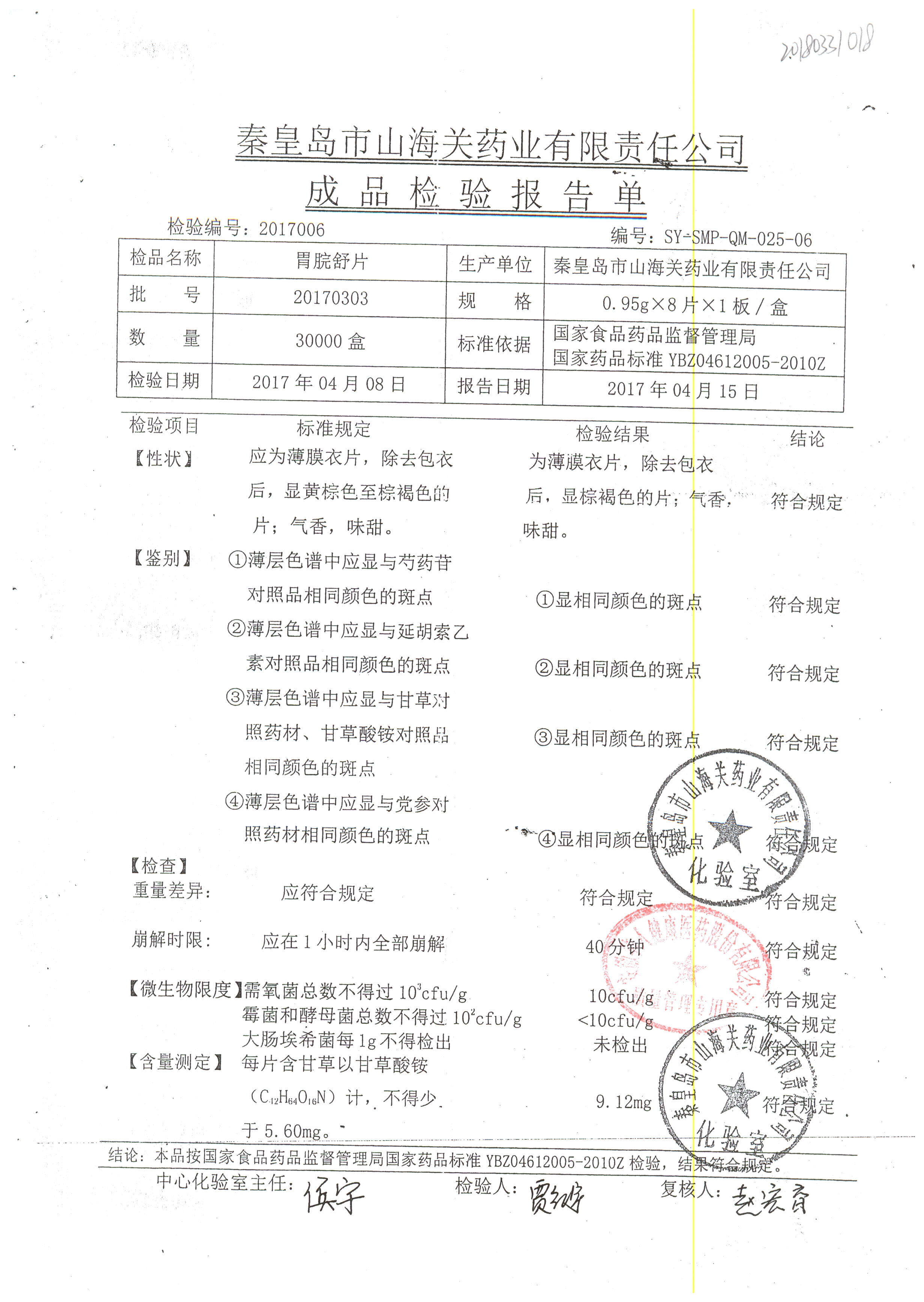 胃脘舒片 0.95g*8s 20170602 查看詳情