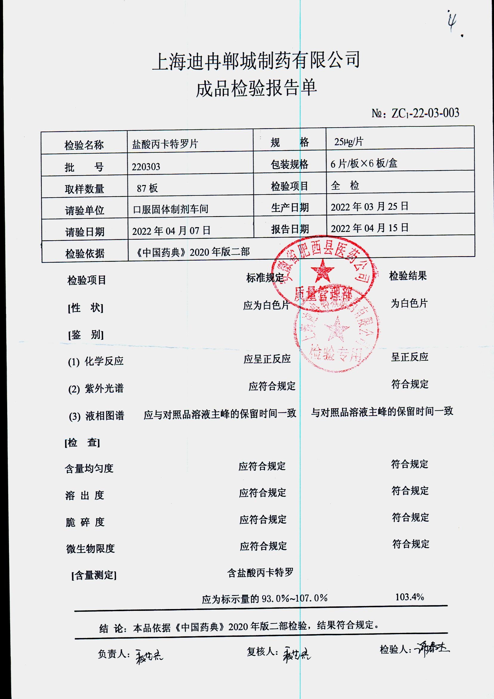 | 鹽酸丙卡特羅片 | 25mg*6s | 220301 | 查看詳情 |
