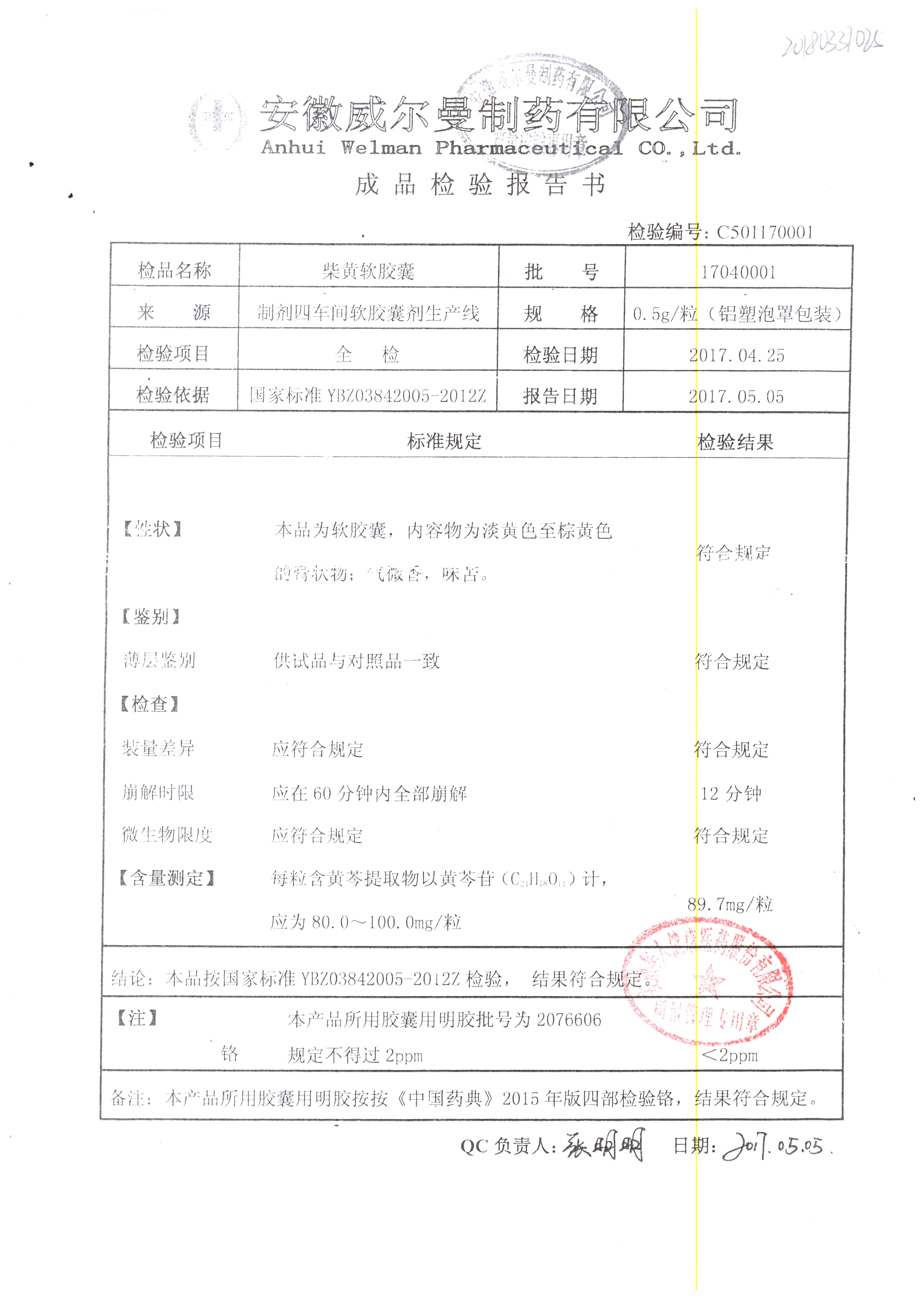 柴黃軟膠囊 0.5g 17040001 查看詳情