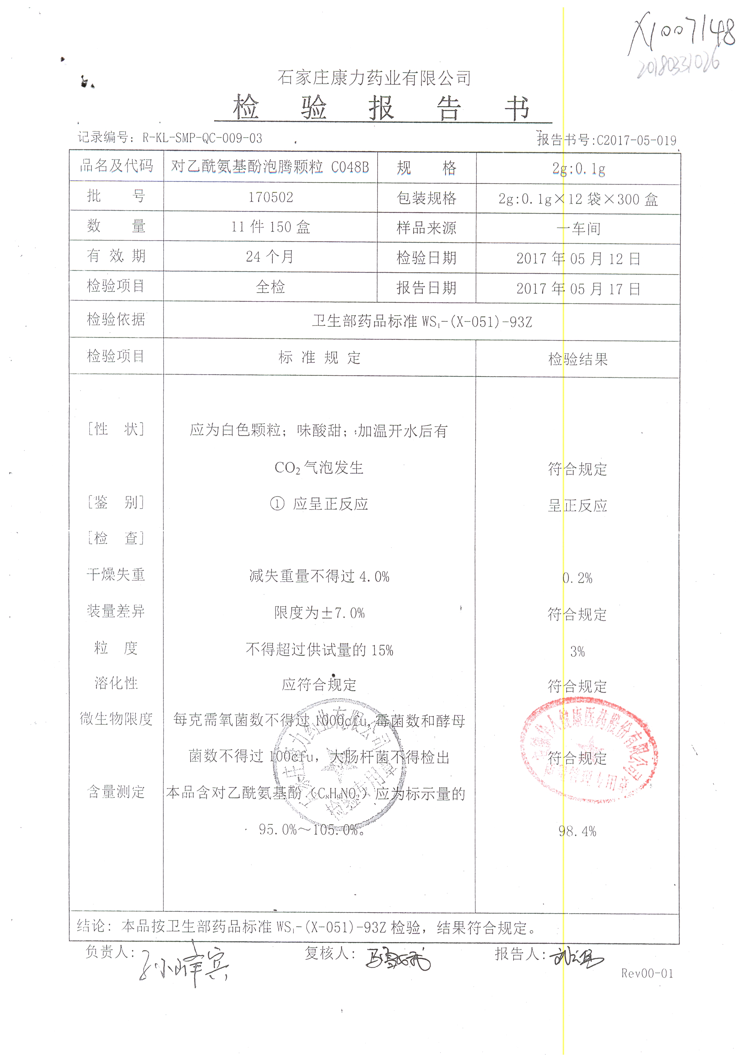 對乙醯氨基酚泡騰顆粒 2g:0.1g 170502 查看詳情