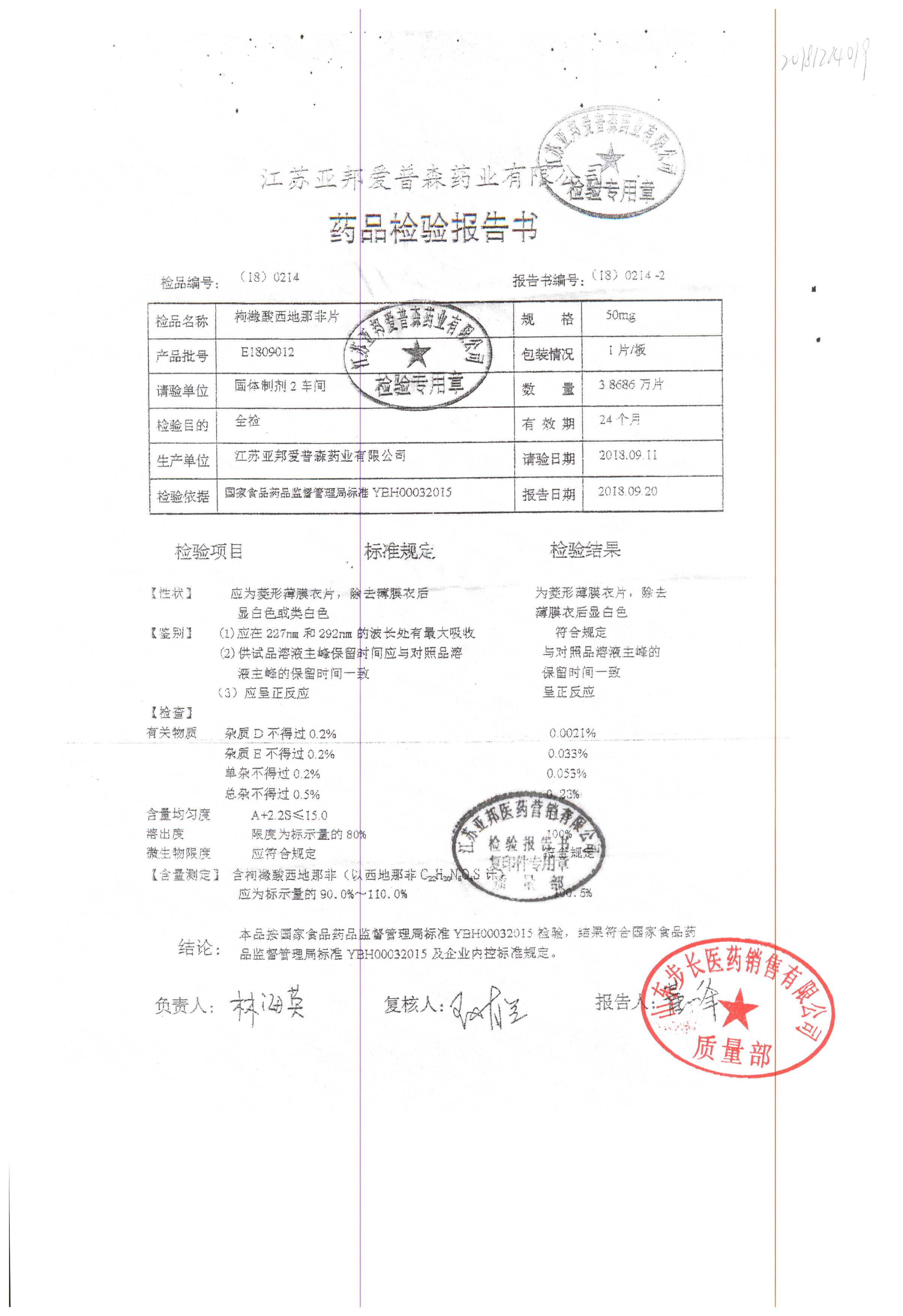 | 枸櫞酸西地那非片 | 50mg | E1809012 | 查看詳情 |