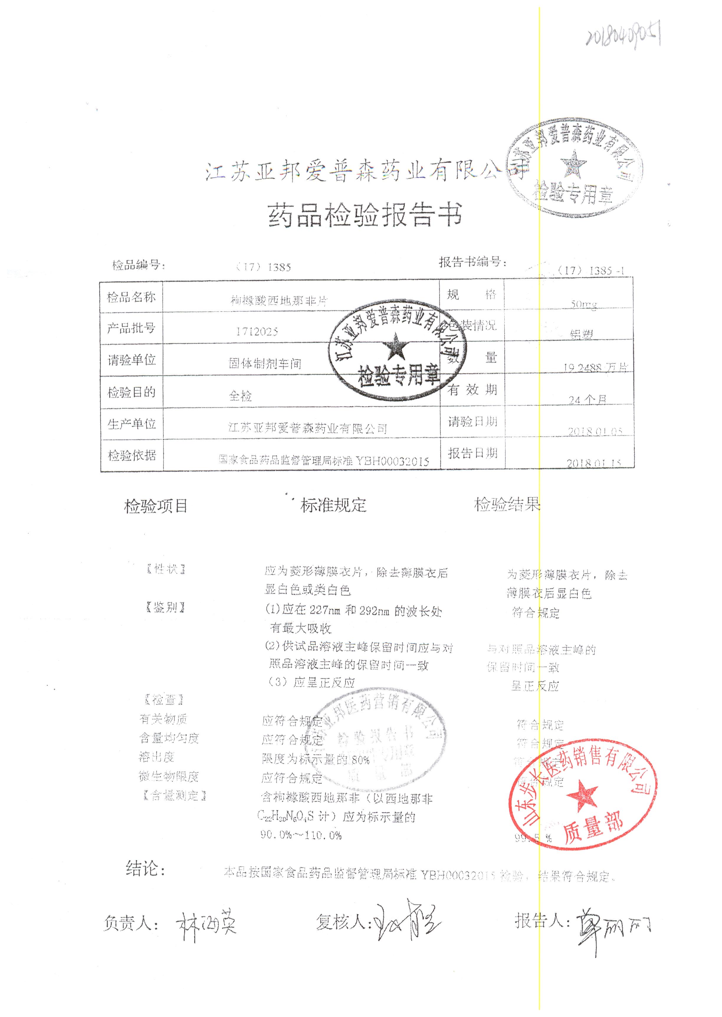 | 名稱 | 規(guī)格 | 批號 | 藥檢報告 |