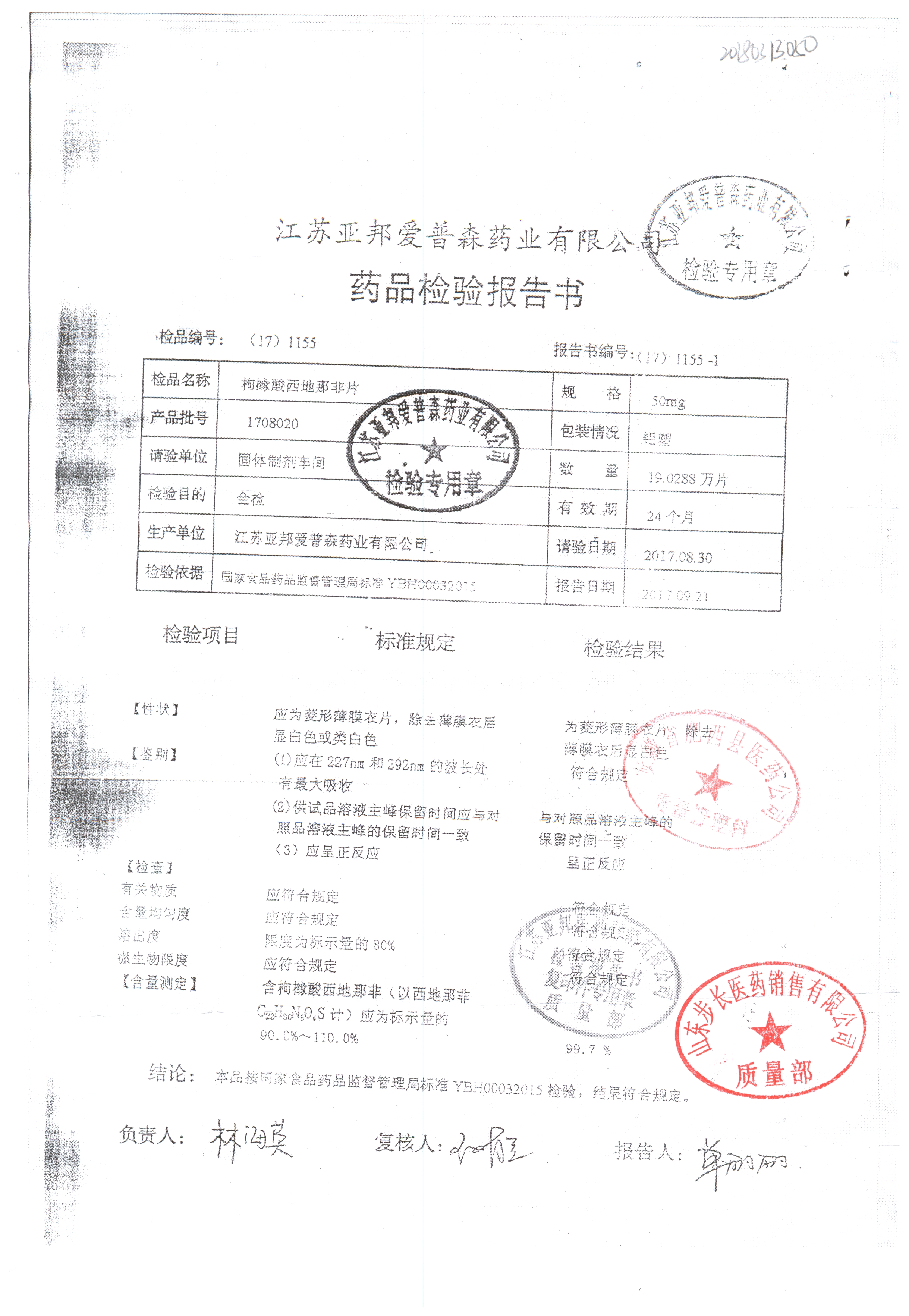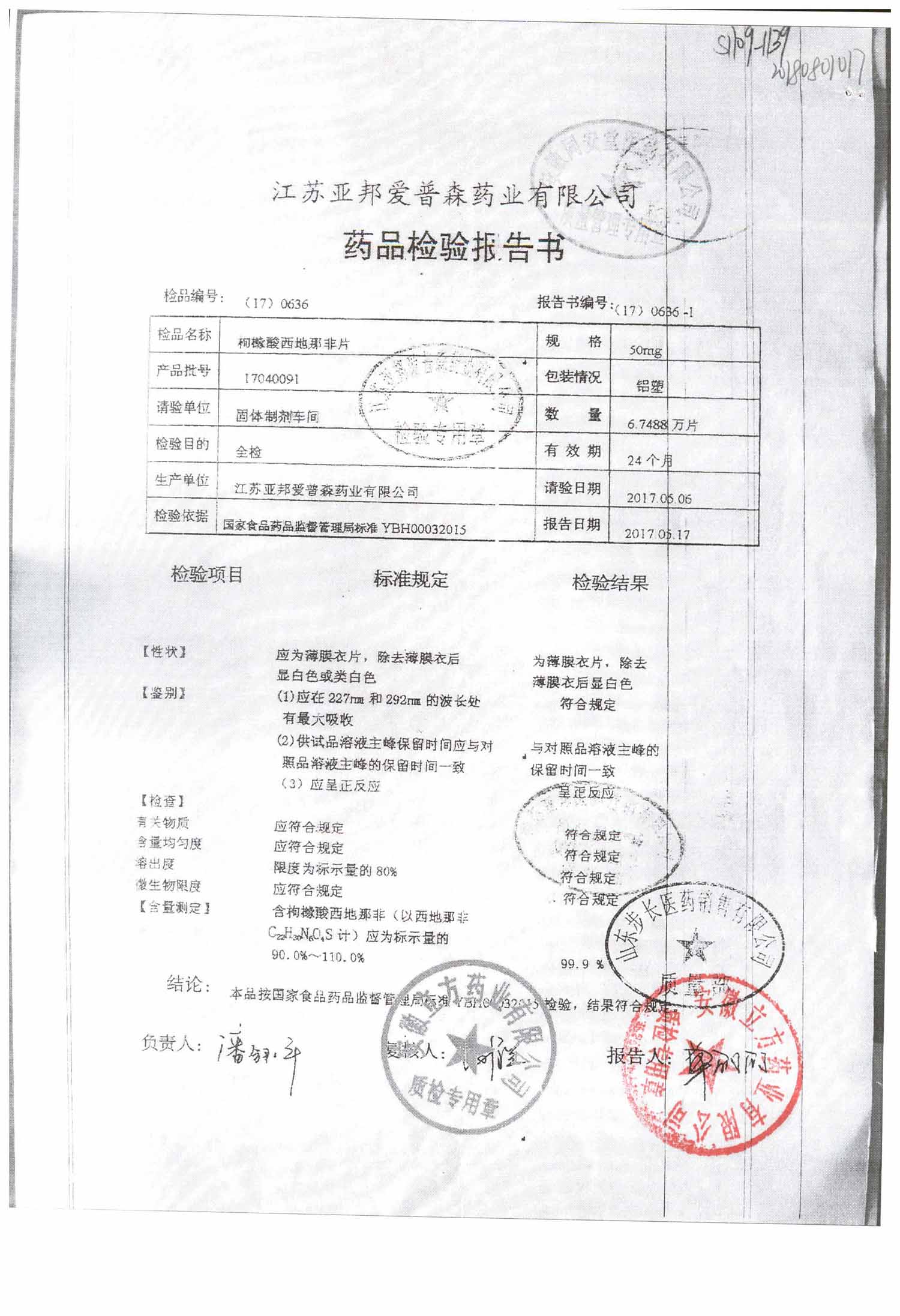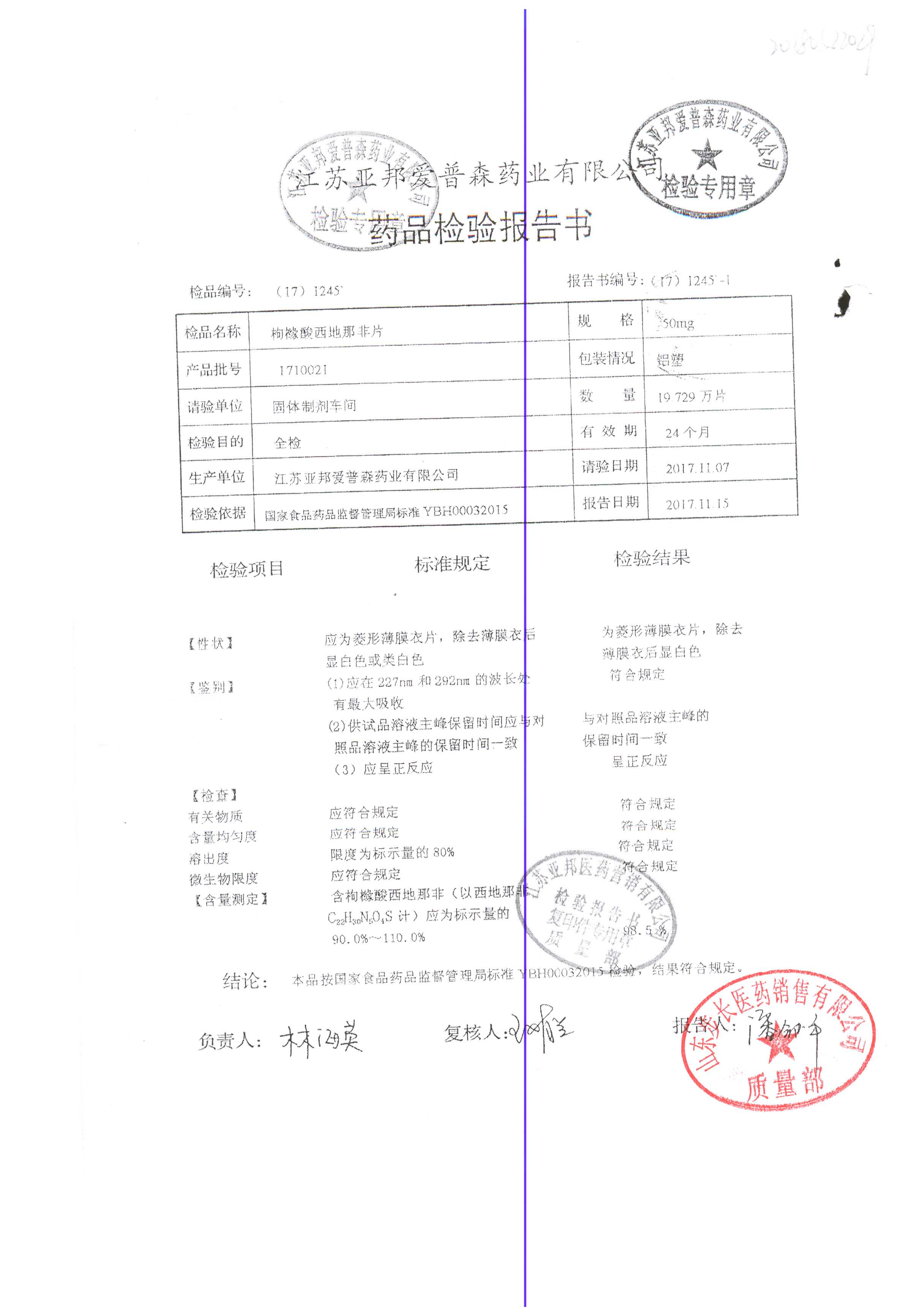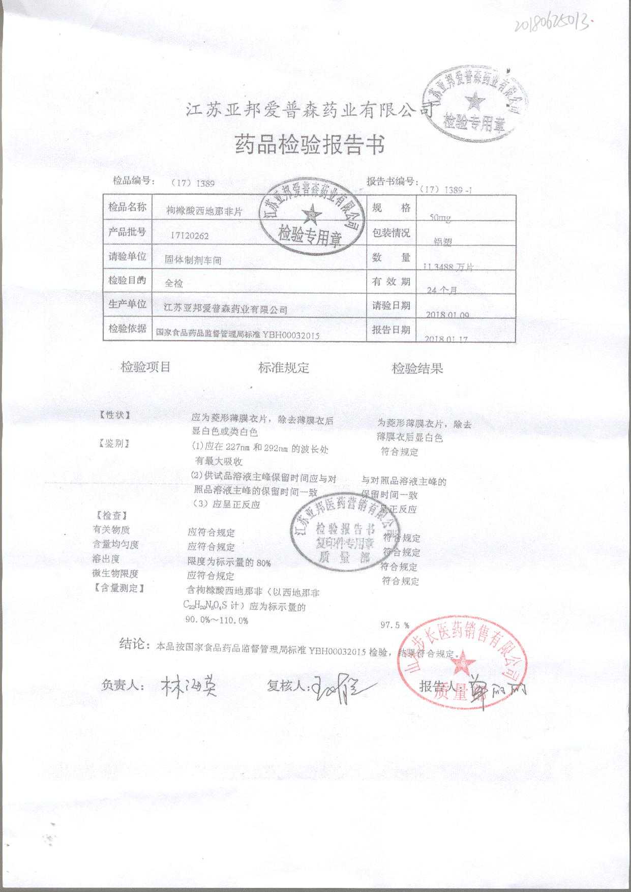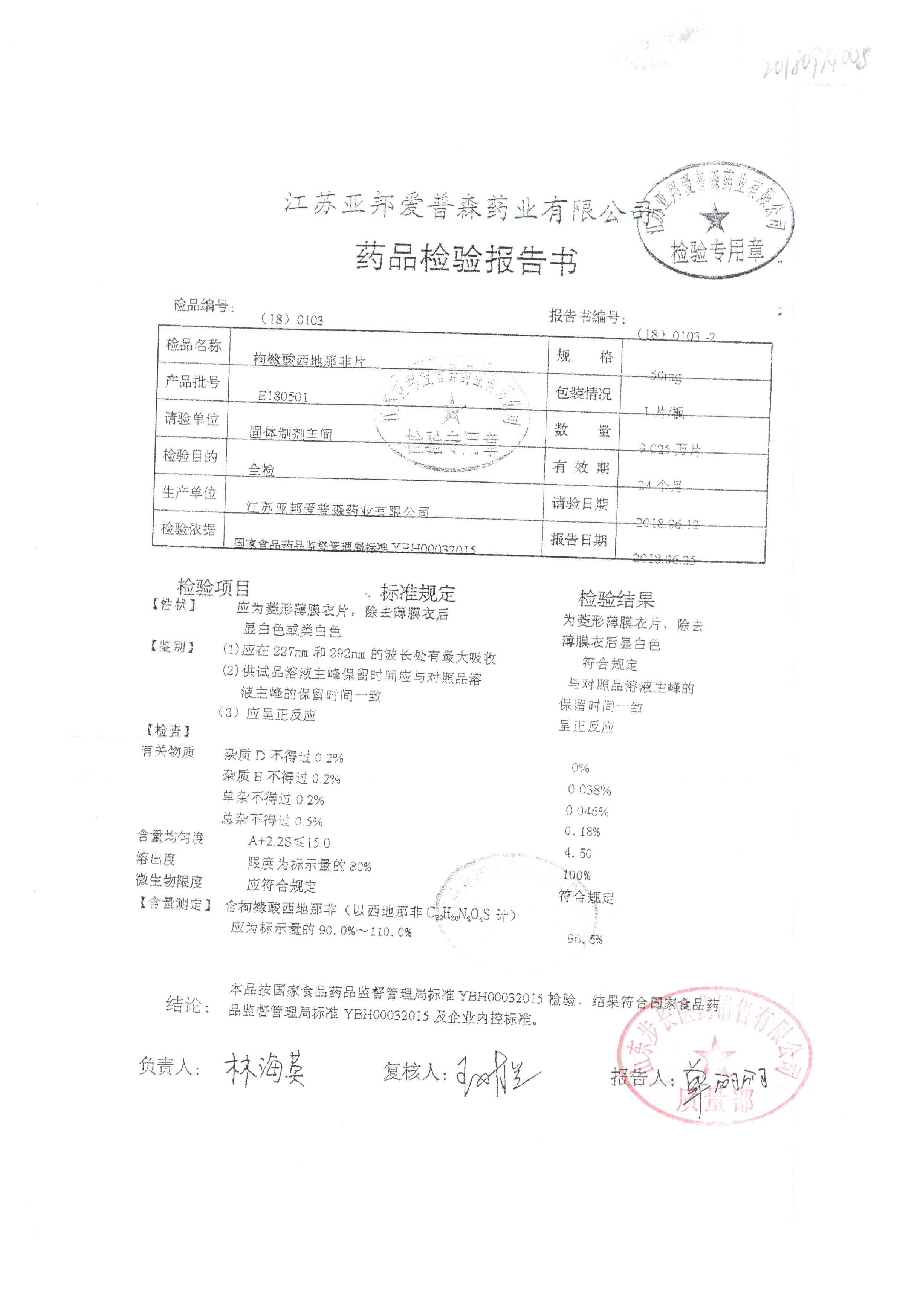 | 枸櫞酸西地那非片 | 50mg | E1807011 | 查看詳情 |