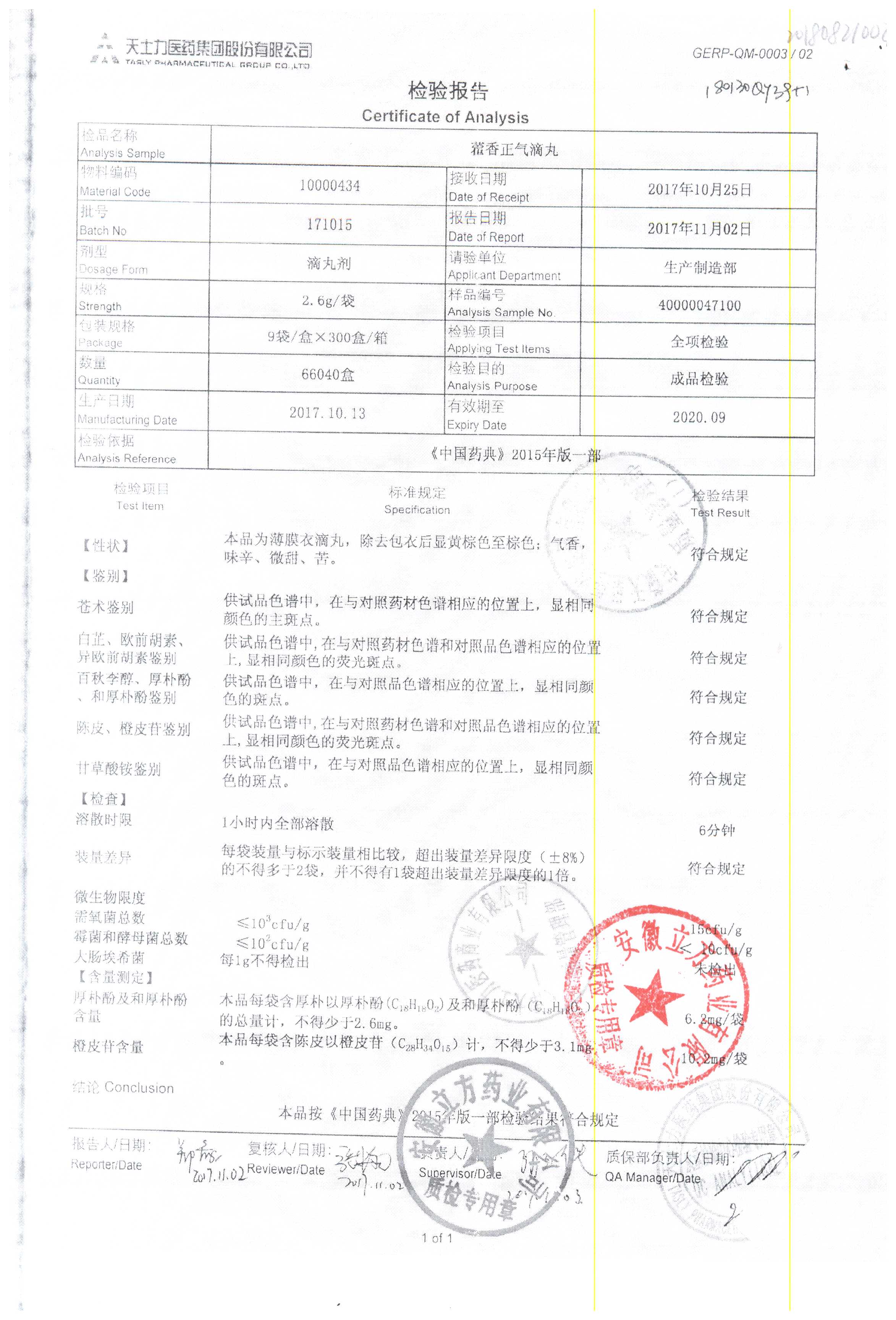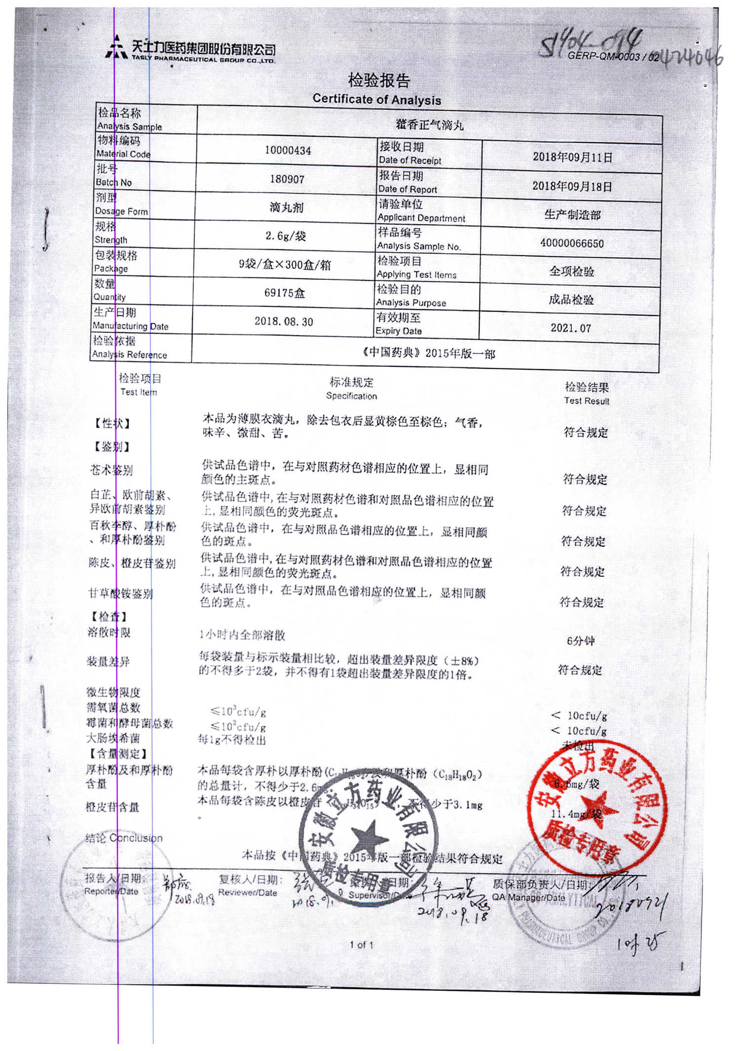 | 藿香正氣滴丸 | 2.6g*9袋 | 180907 | 查看詳情 |