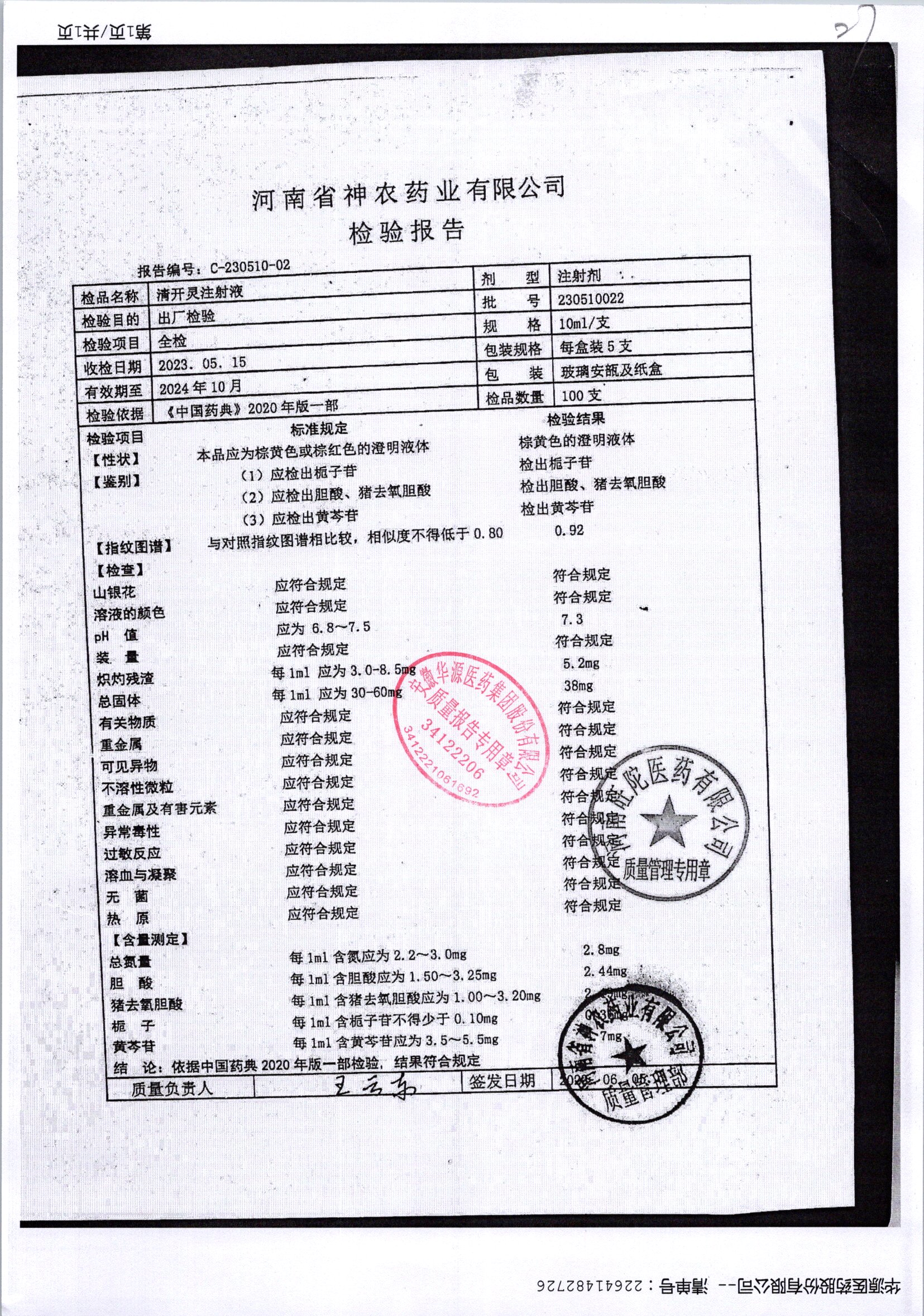 | 清開靈注射液 | 10ml*5支 | 220409021 | 查看詳情 |