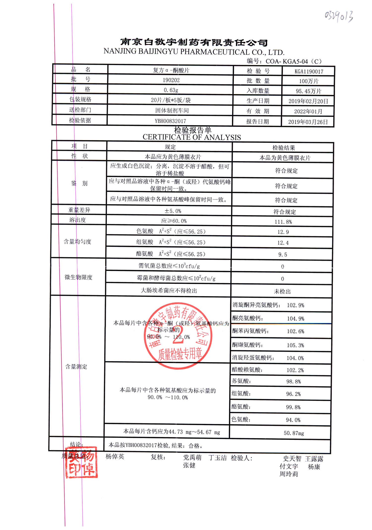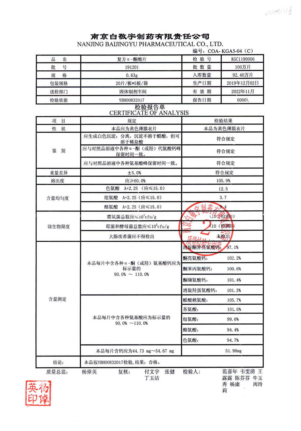 | 復方a-酮酸片 | 0.63g*20s*5板 | 191201 | 查看詳情 |