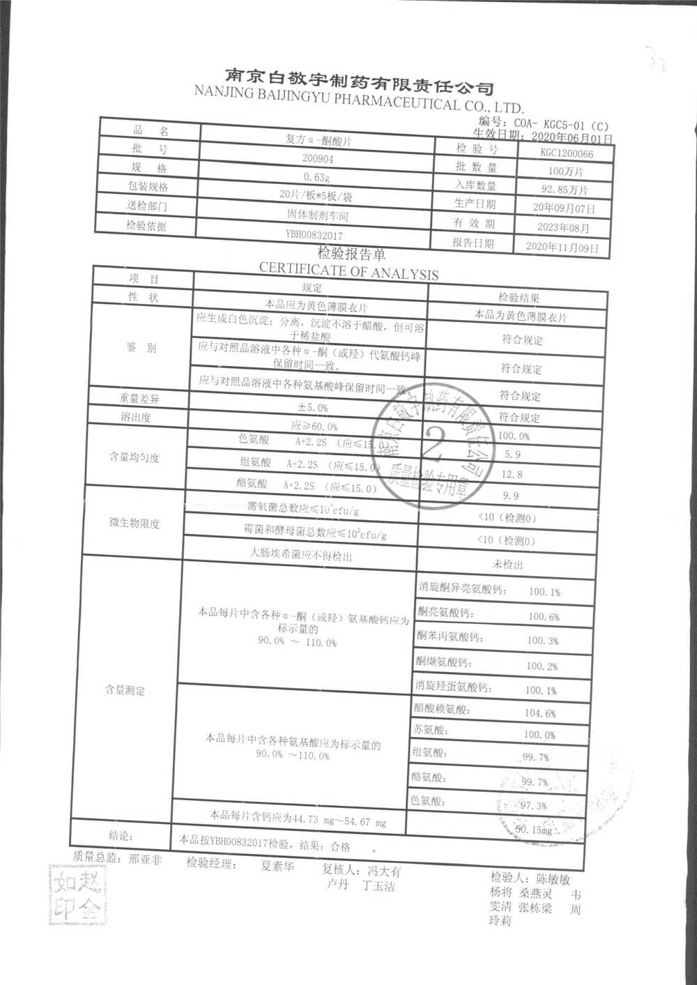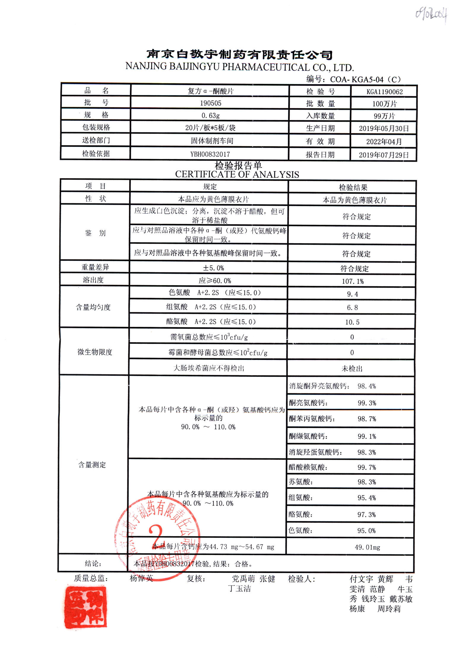 | 復方a-酮酸片 | 0.63g*20s*5板 | 201005 | 查看詳情 |