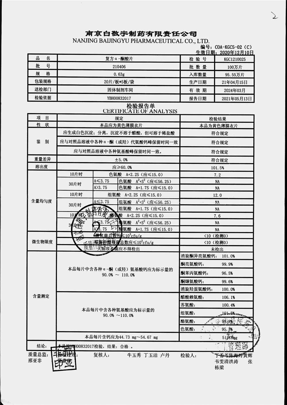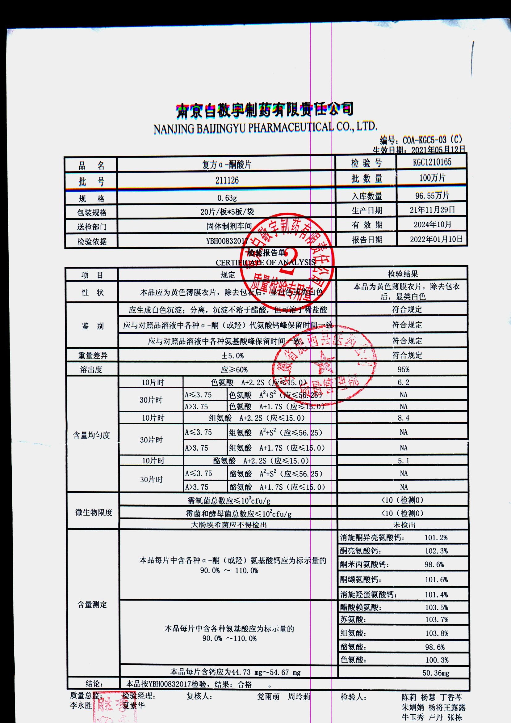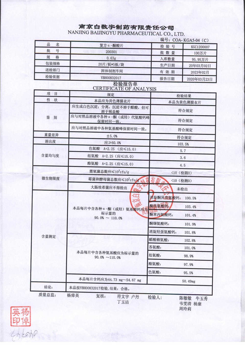| 復方a-酮酸片 | 0.63g*20s*5板 | 210408 | 查看詳情 |