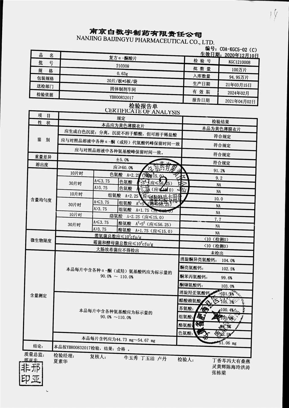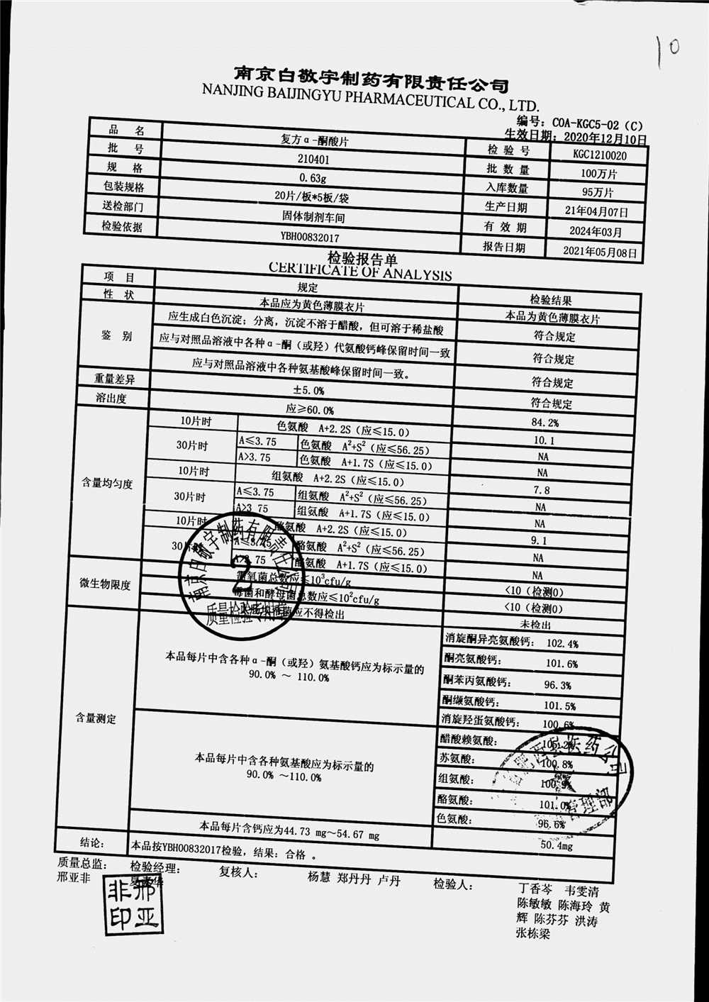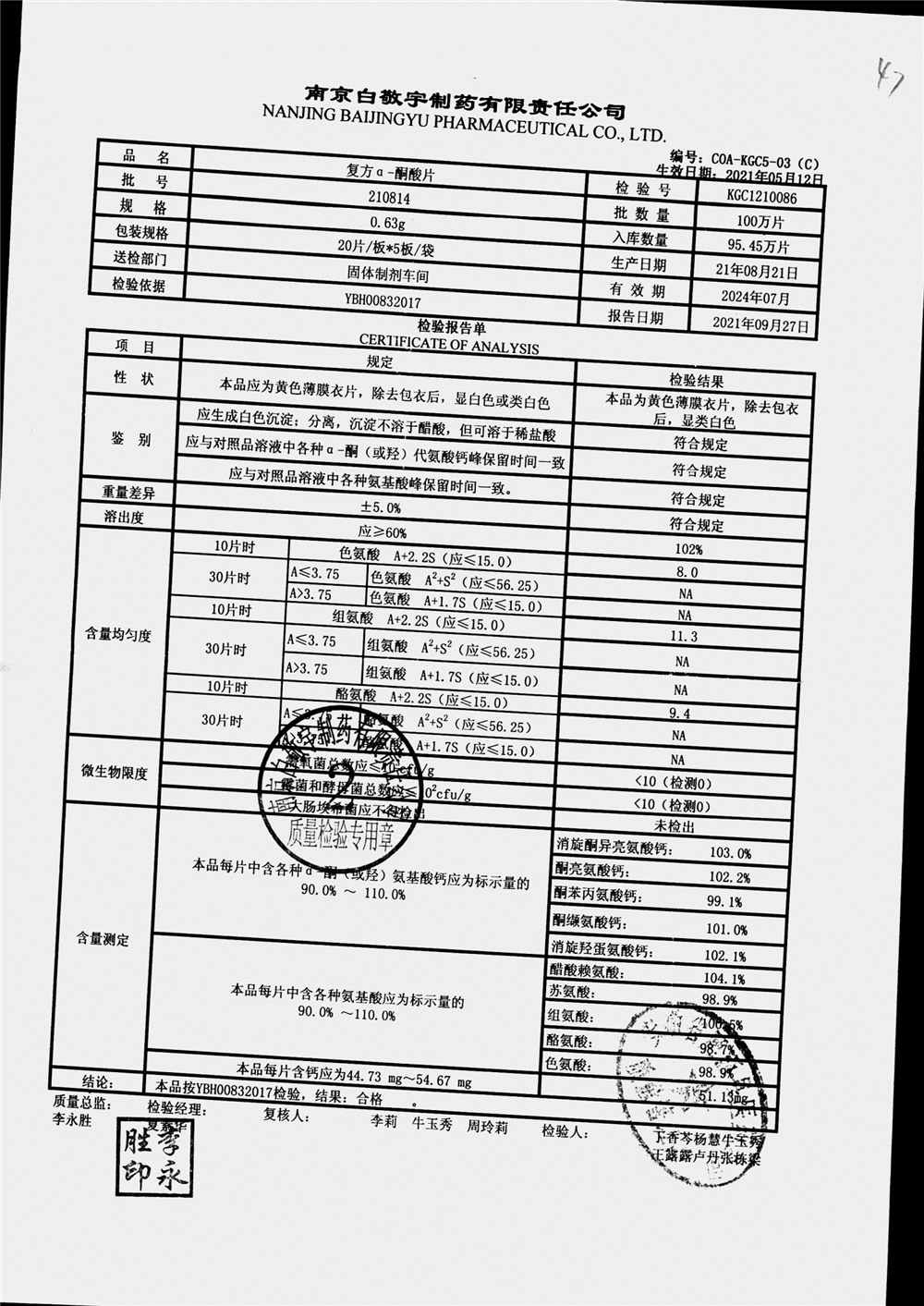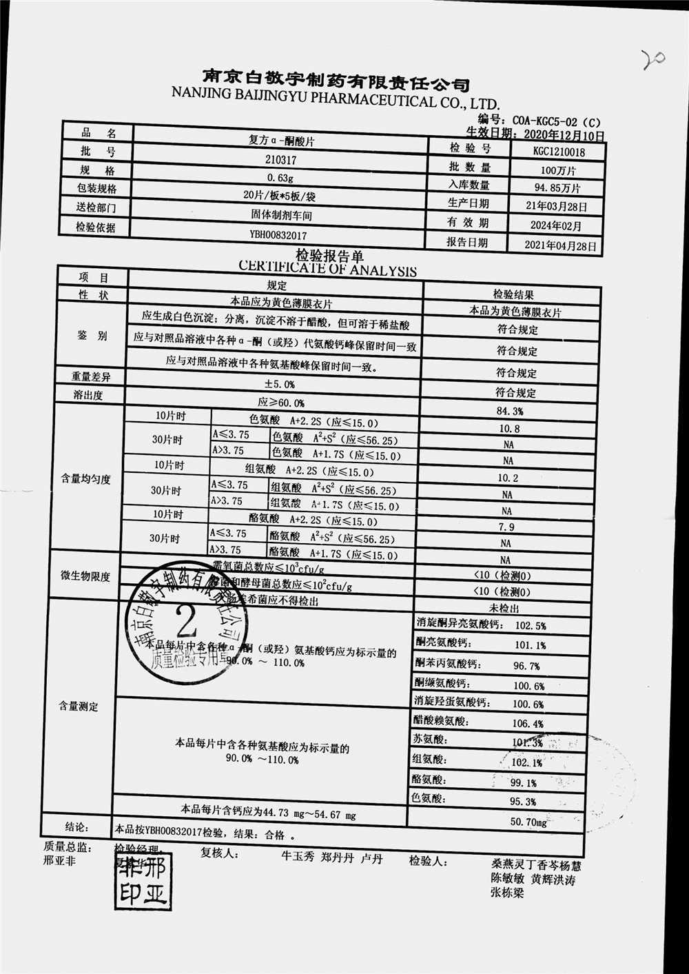 | 復方a-酮酸片 | 0.63g*20s*5板 | 210408 | 查看詳情 |