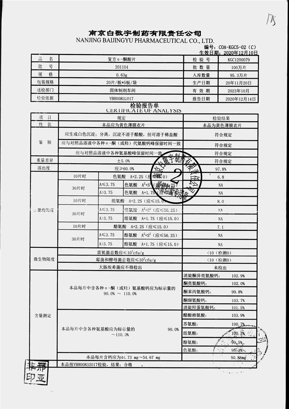 | 復方a-酮酸片 | 0.63g*20s*5板 | 210314 | 查看詳情 |