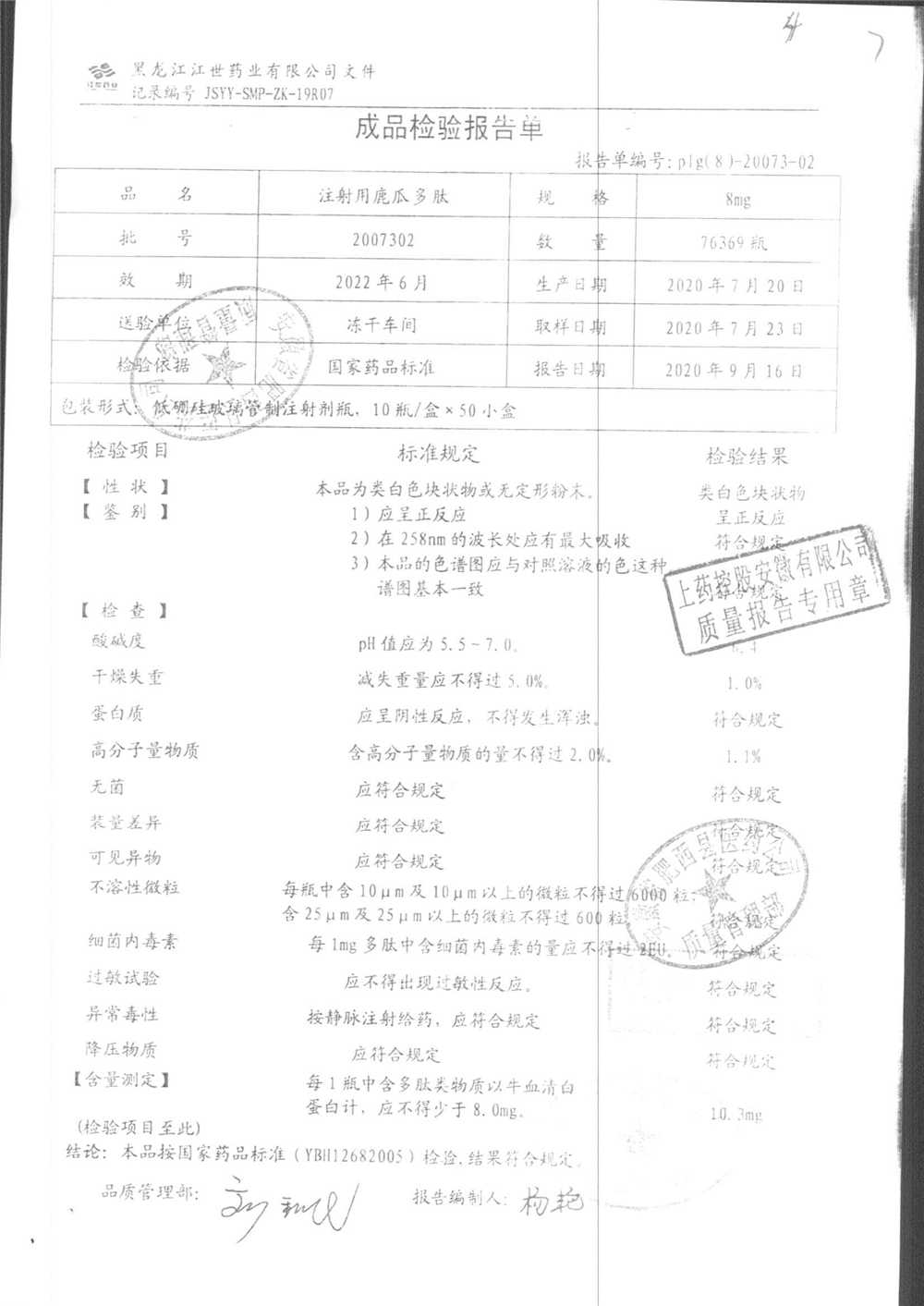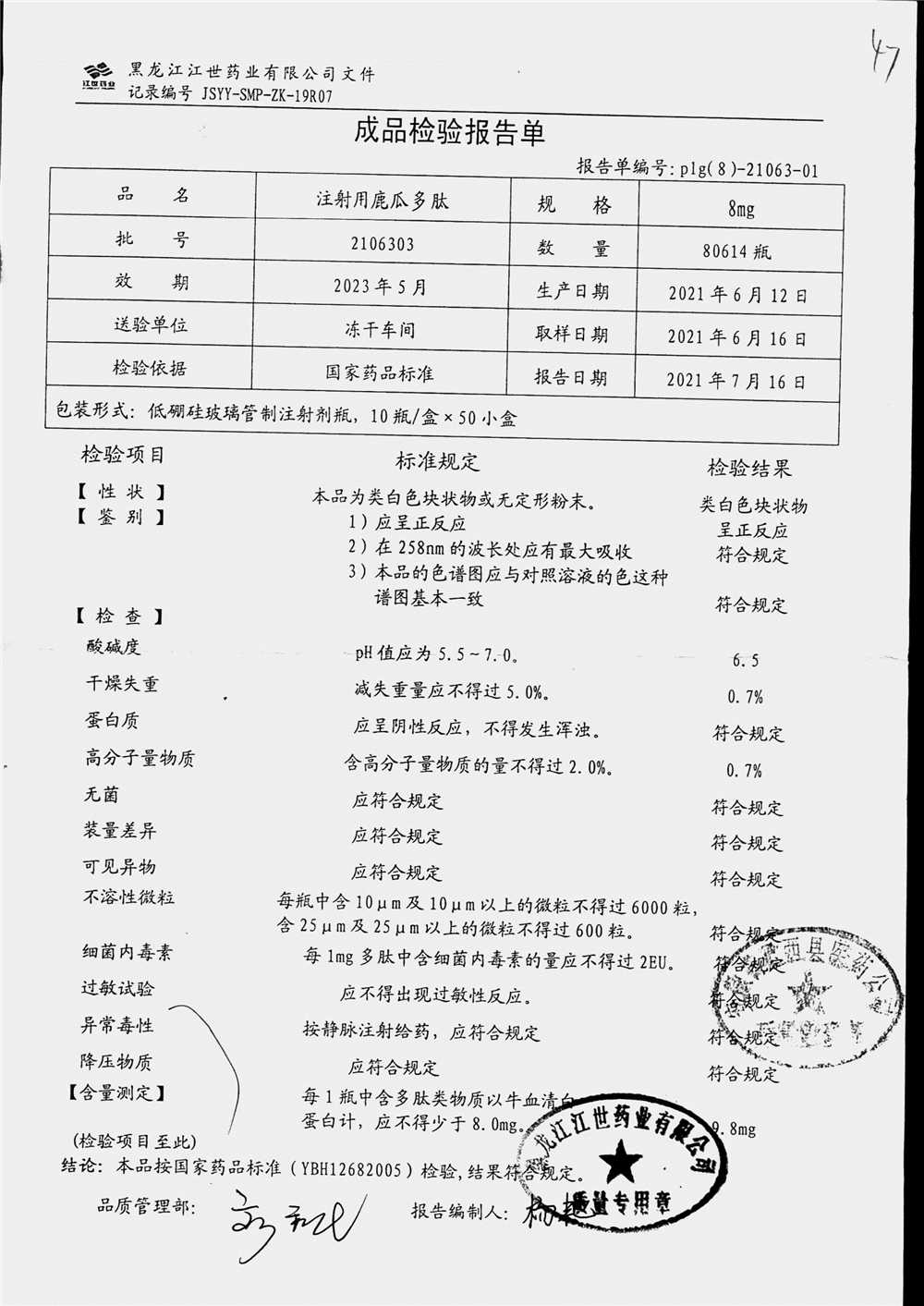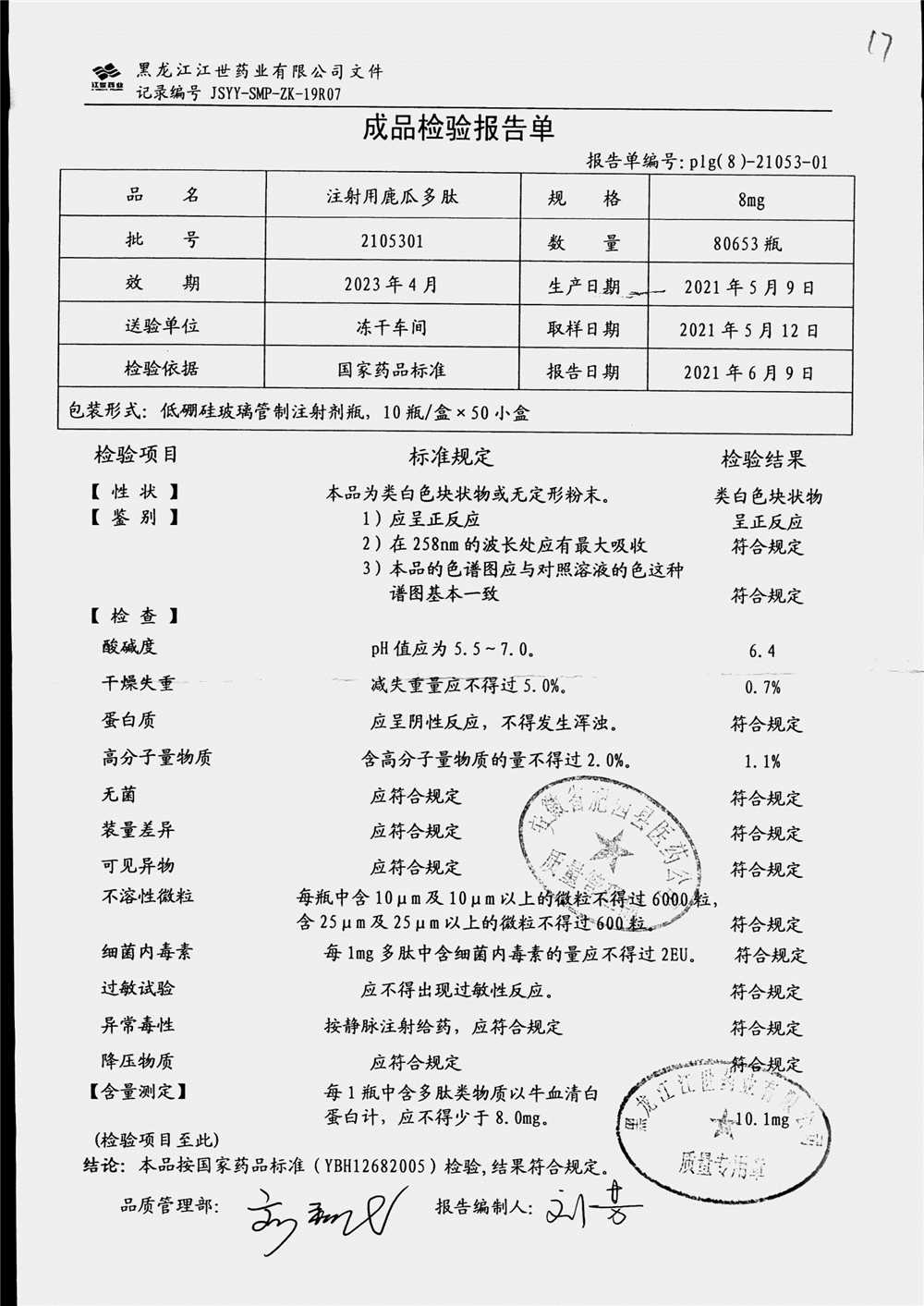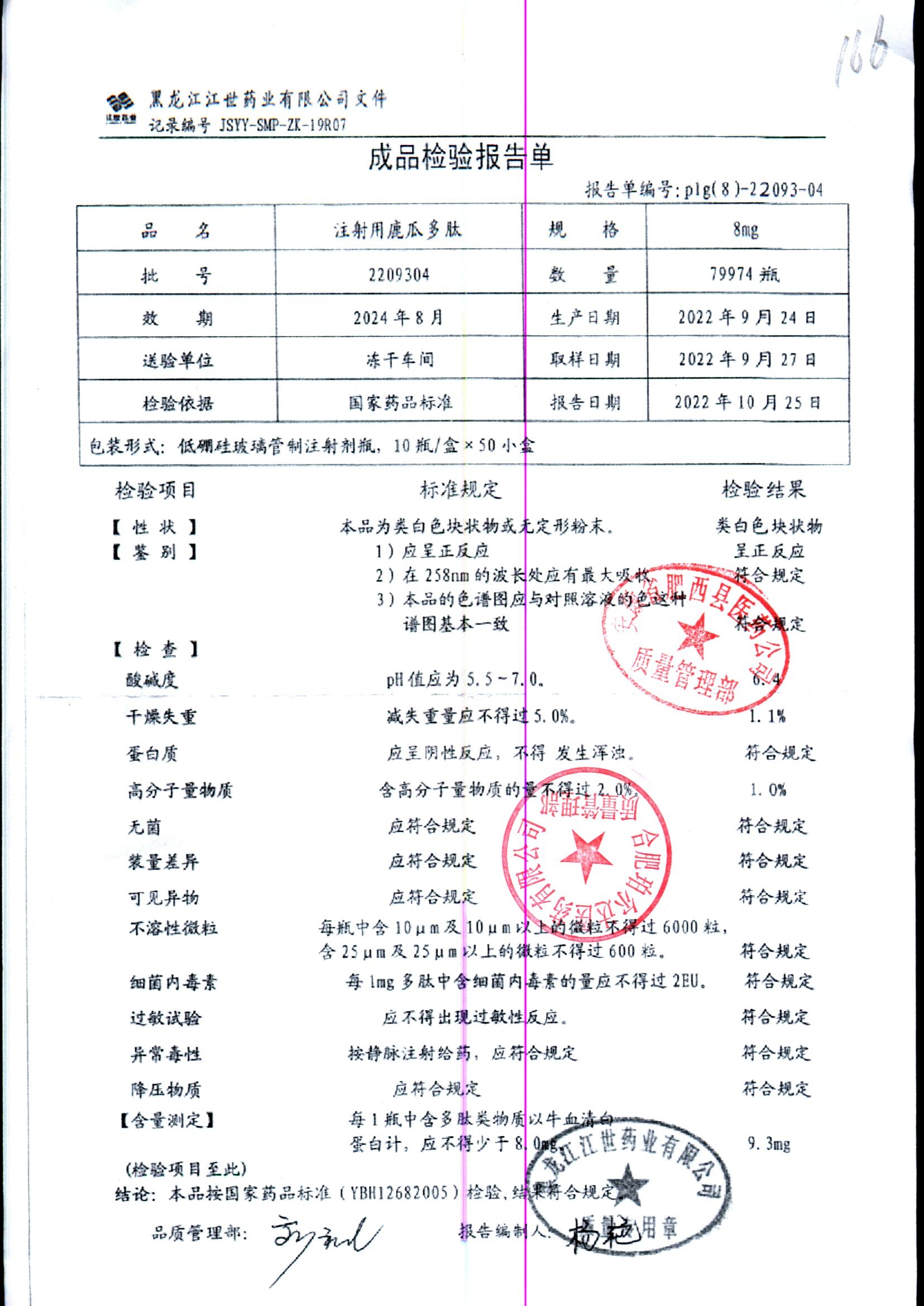 | 注射用鹿瓜多肽 | 8mg | 2111302-2 | 查看詳情 |