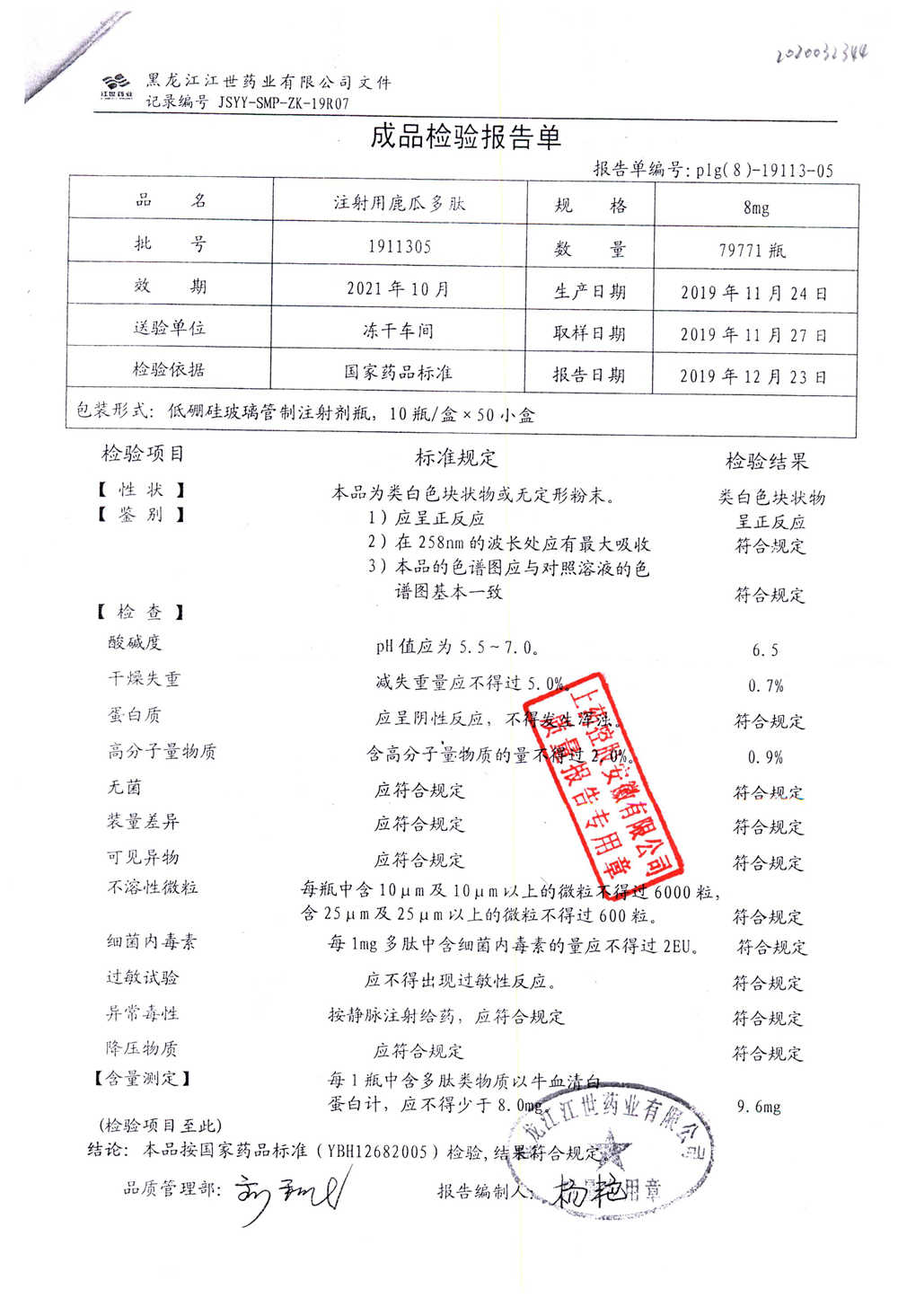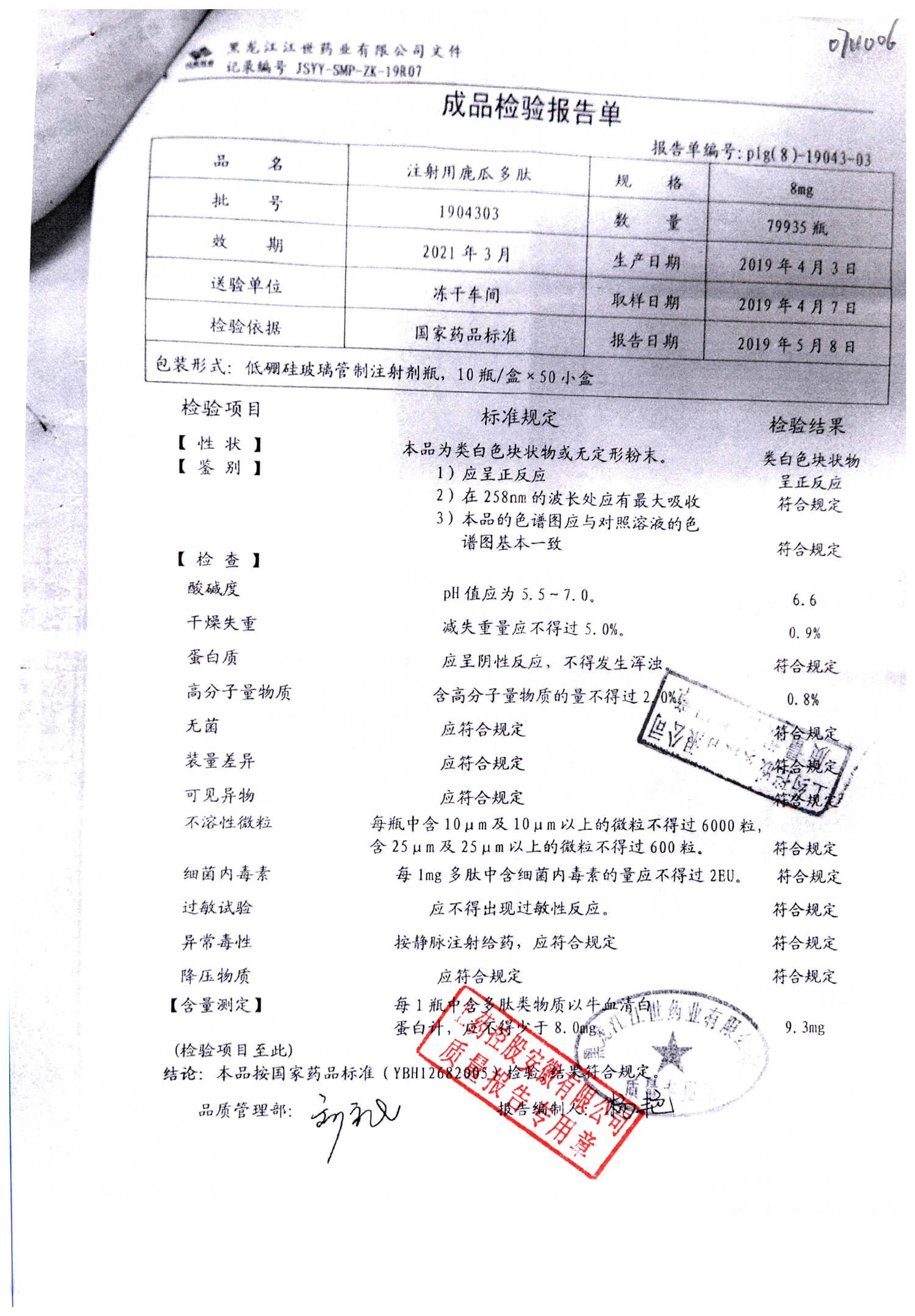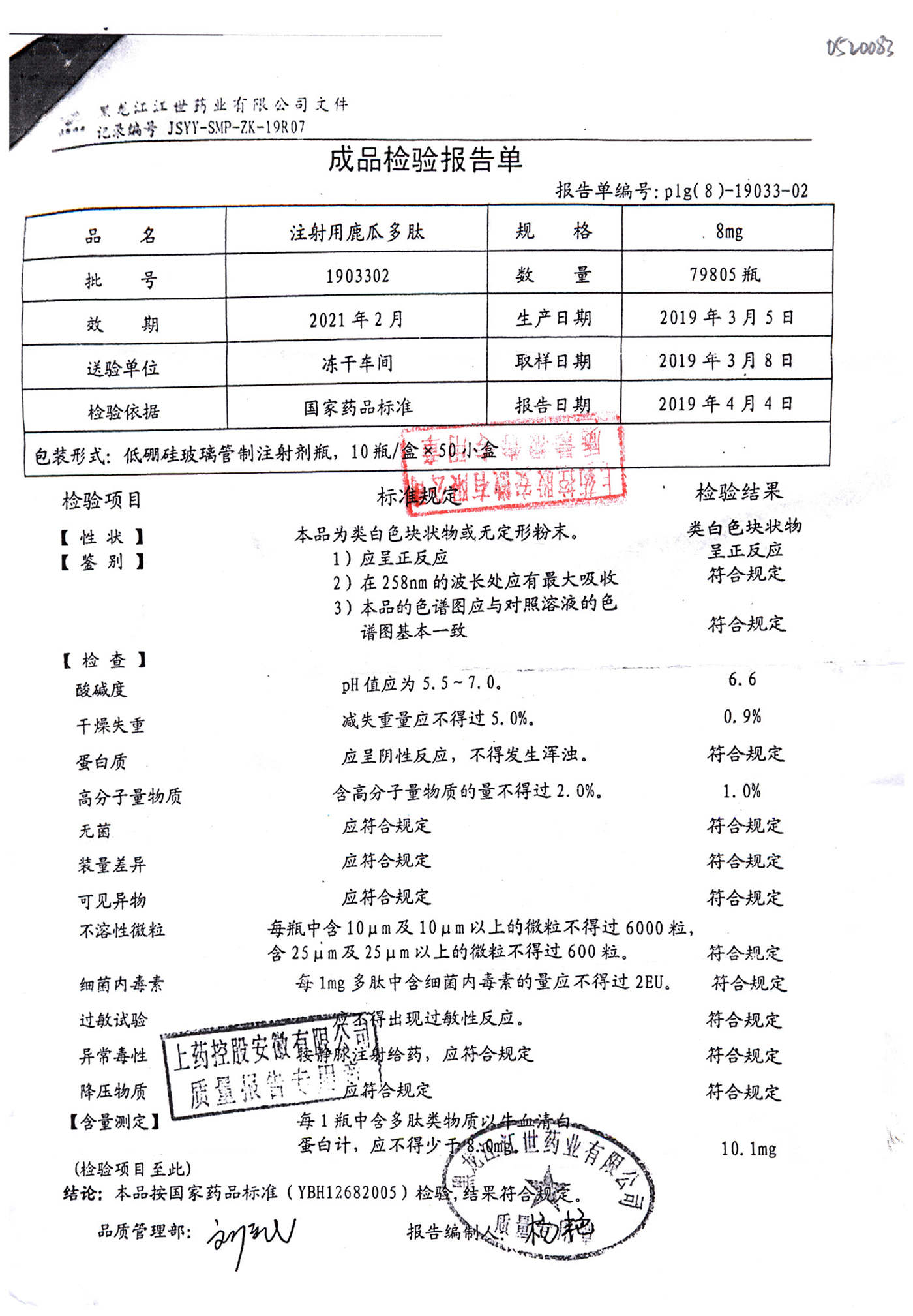 | 注射用鹿瓜多肽 | 8mg | 1910301 | 查看詳情 |