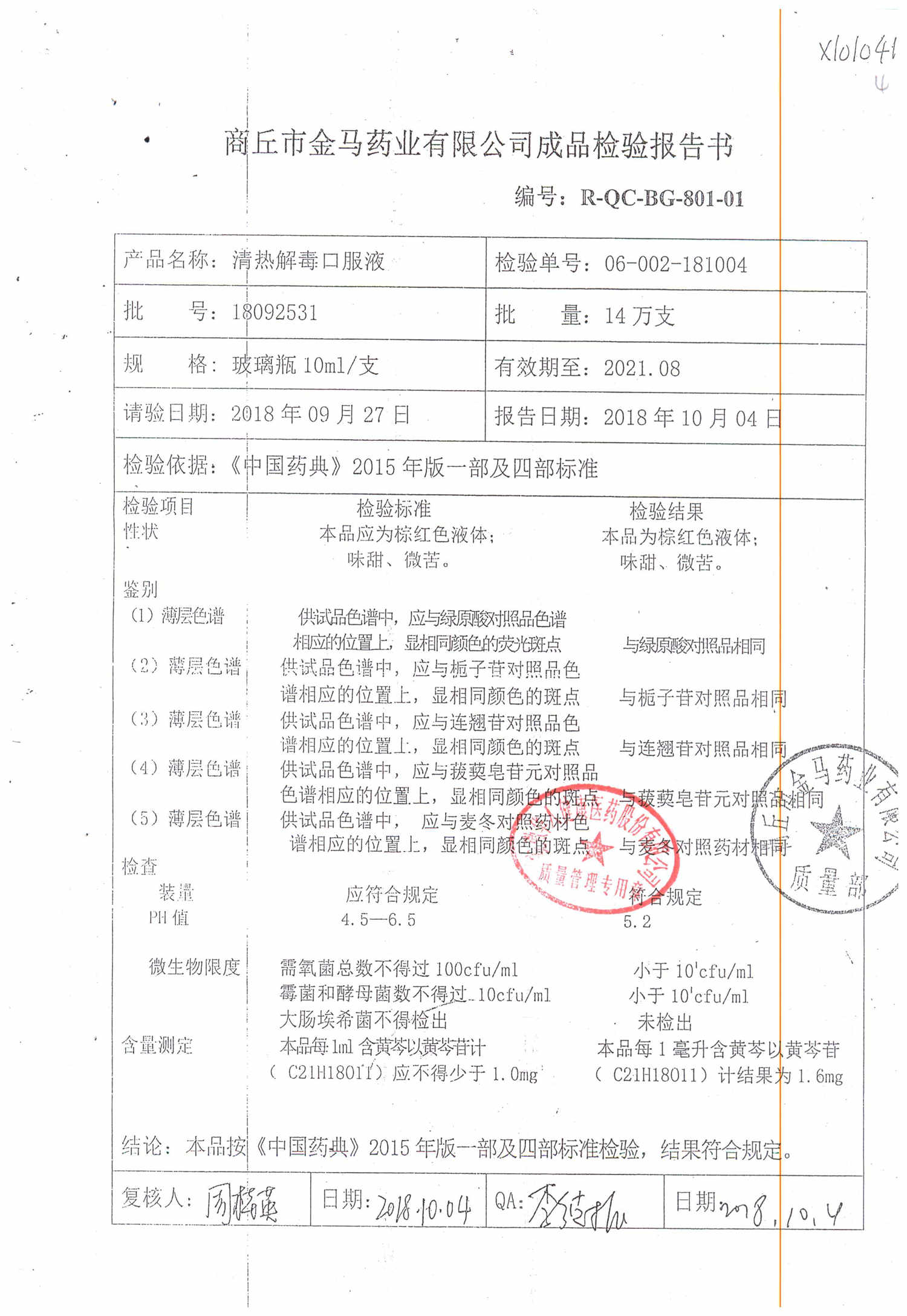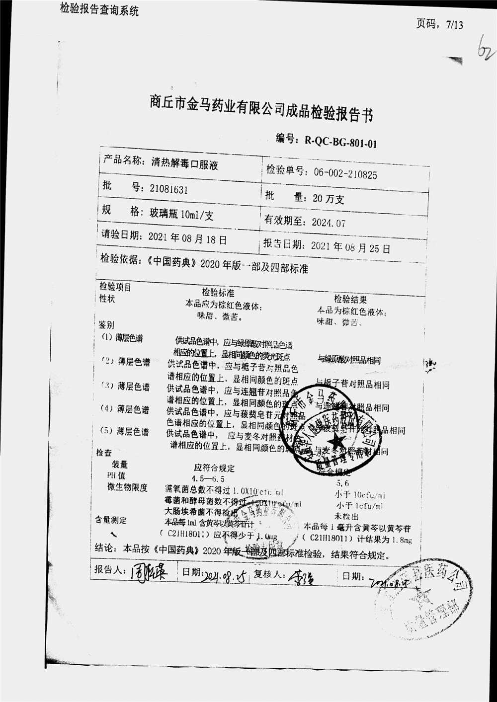 | 清熱解毒口服液 | 10ml | 21051231 | 查看詳情 |
