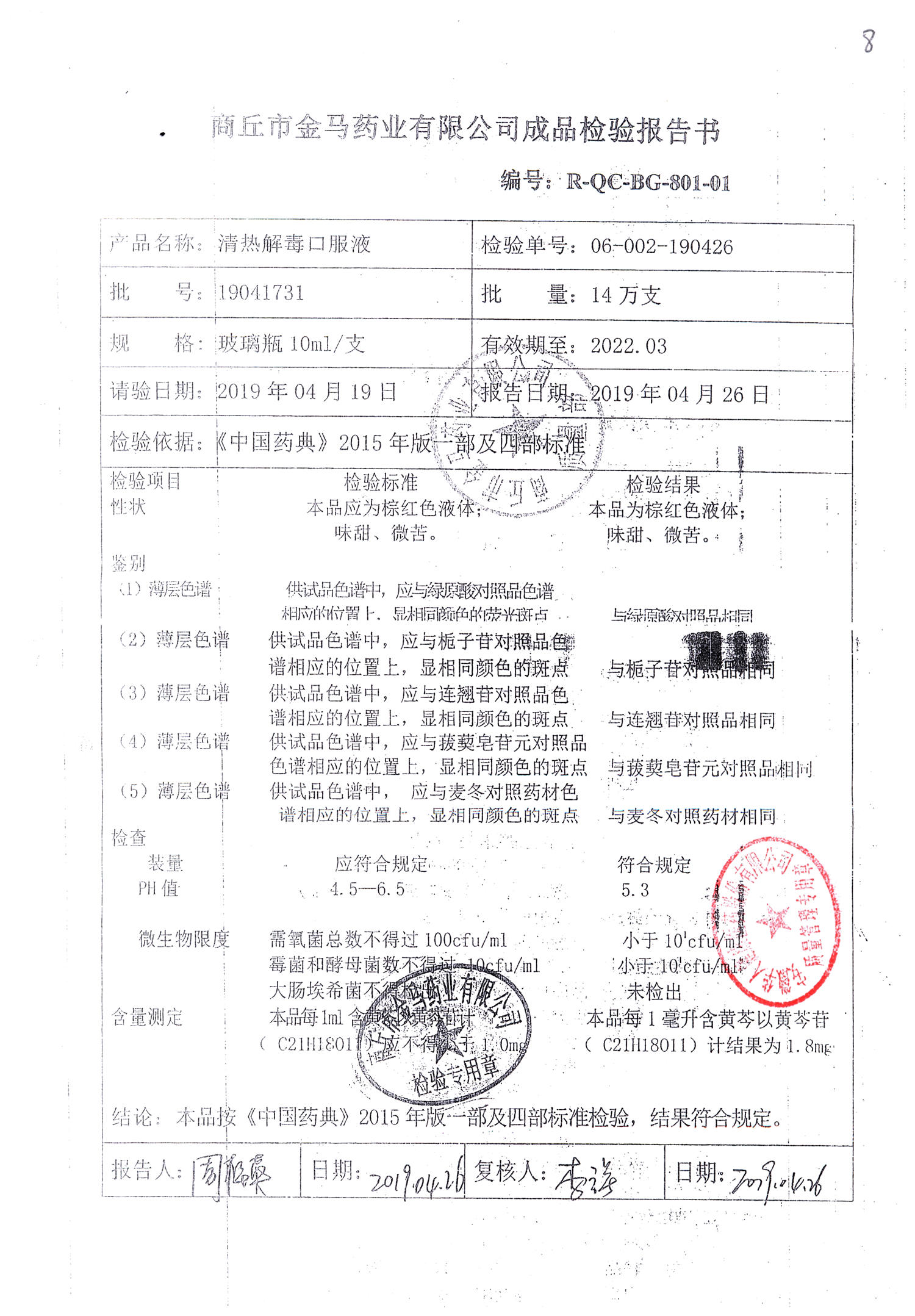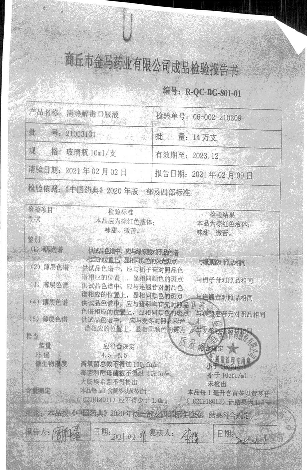 | 名稱 | 規(guī)格 | 批號 | 藥檢報(bào)告 |