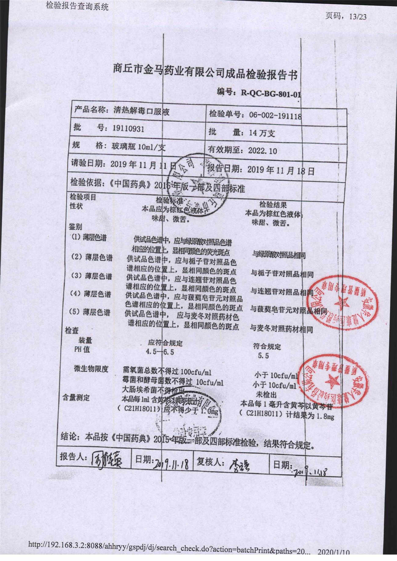 | 清熱解毒口服液 | 10ml | 19021231 | 查看詳情 |