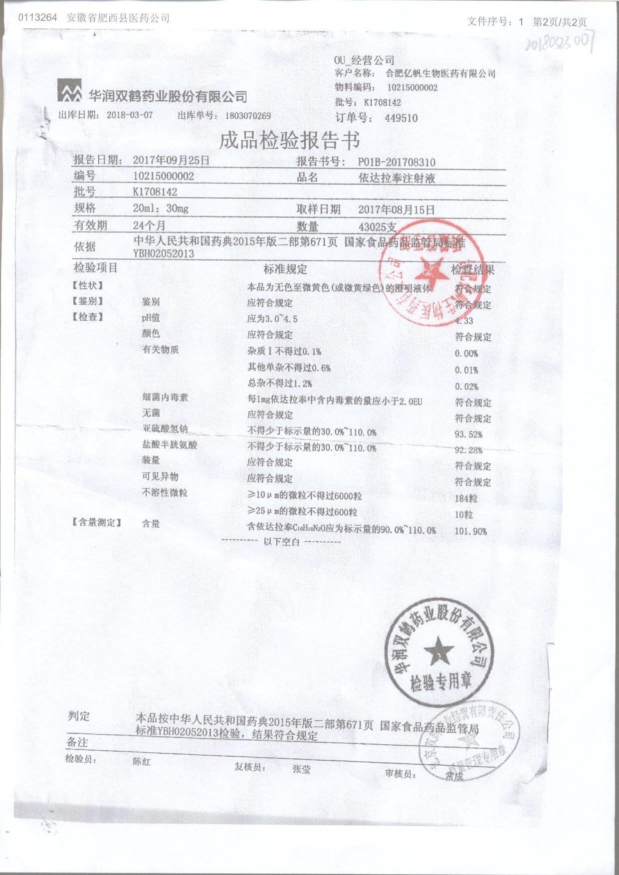 依達拉奉注射液 20ml:30mg K1708142 查看詳情